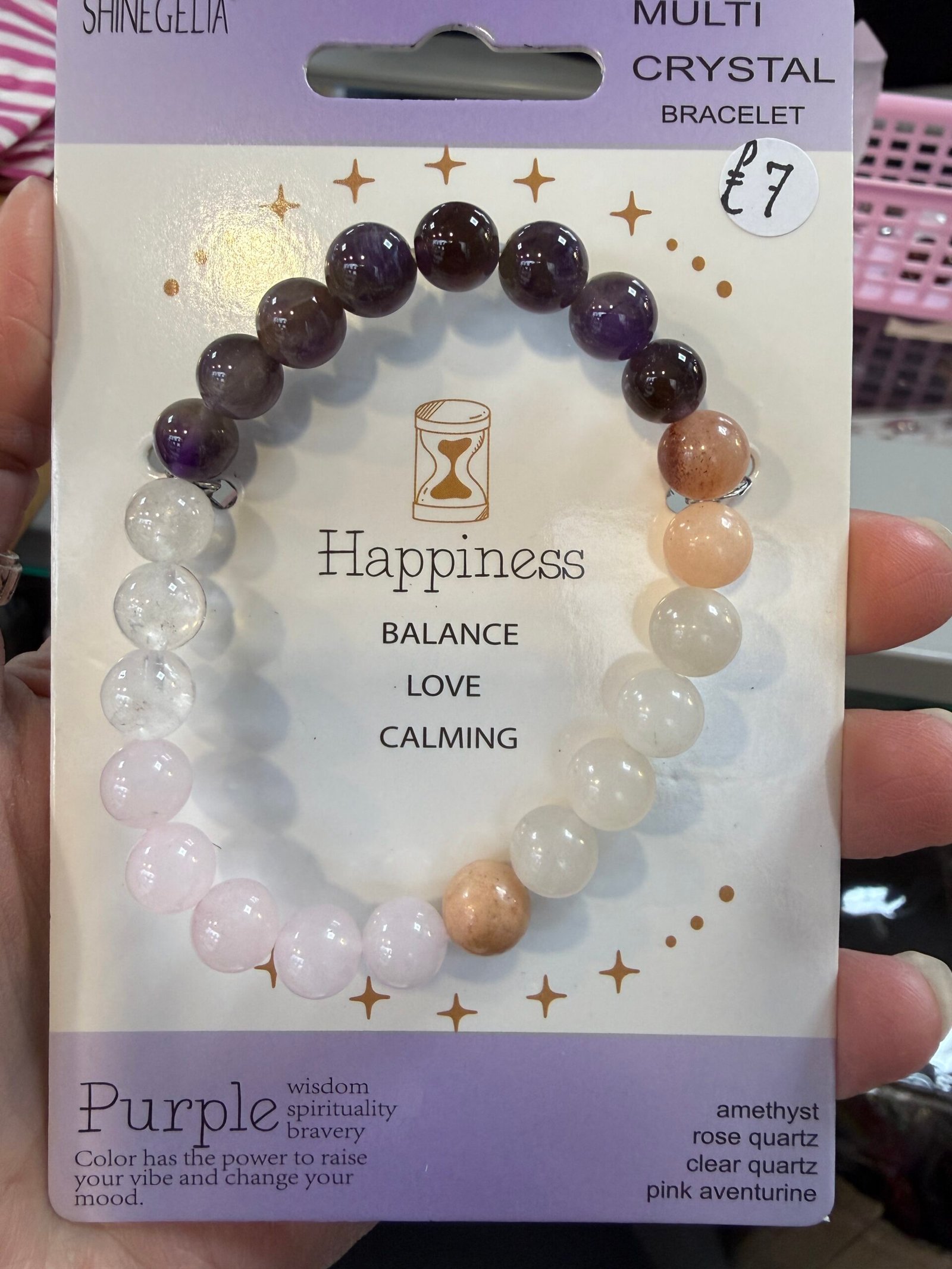 One intuitively chosen bracelet With Amethyst, Rose Quartz, Clear Quartz & Pink Aventurine For balance, love and calming.