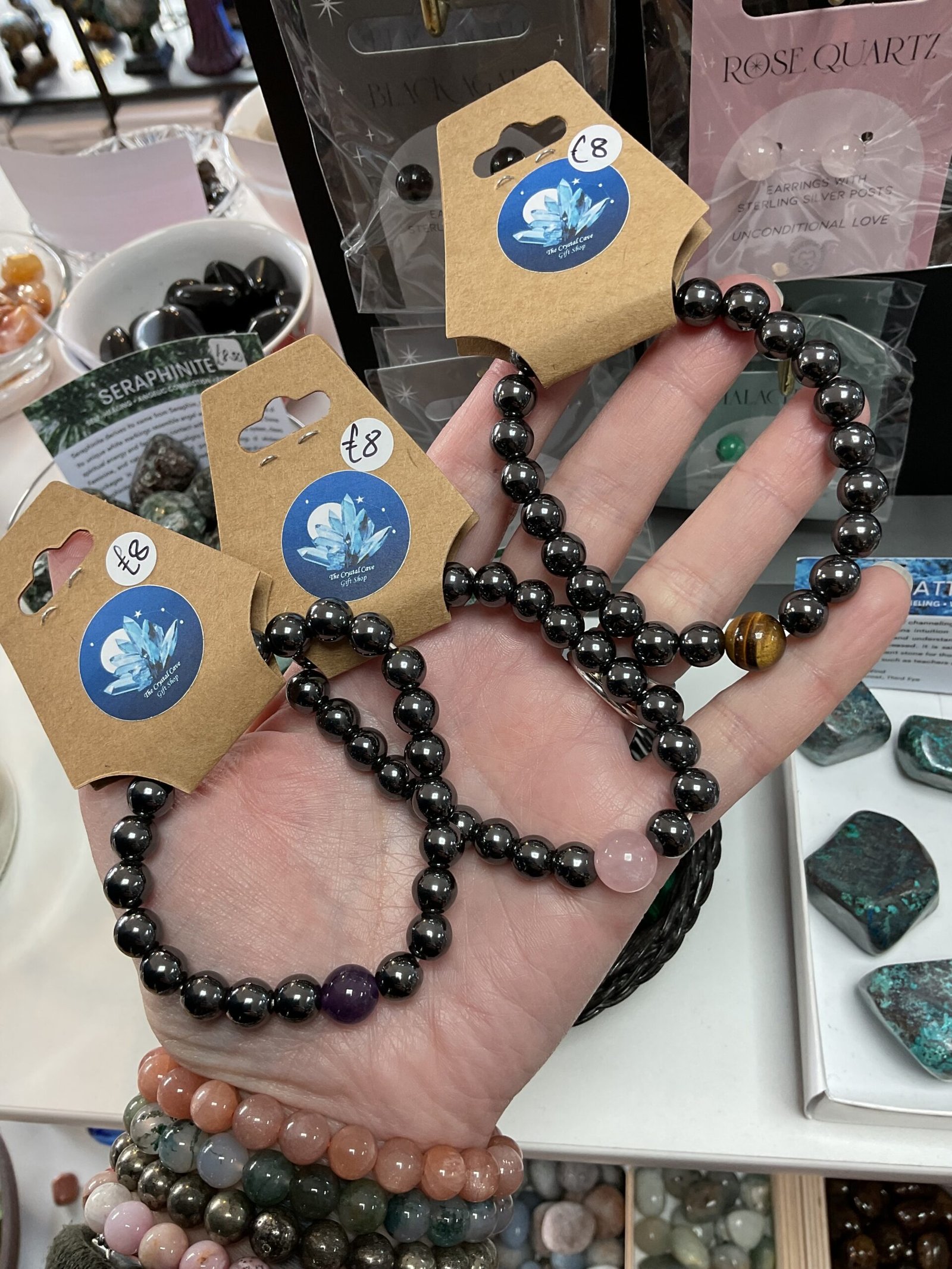 One intuitively chosen bead bracelet with either a Rose Quartz bead- for self love, Amethyst Bead- for peace or Tiger Eye bead- for self confidence.