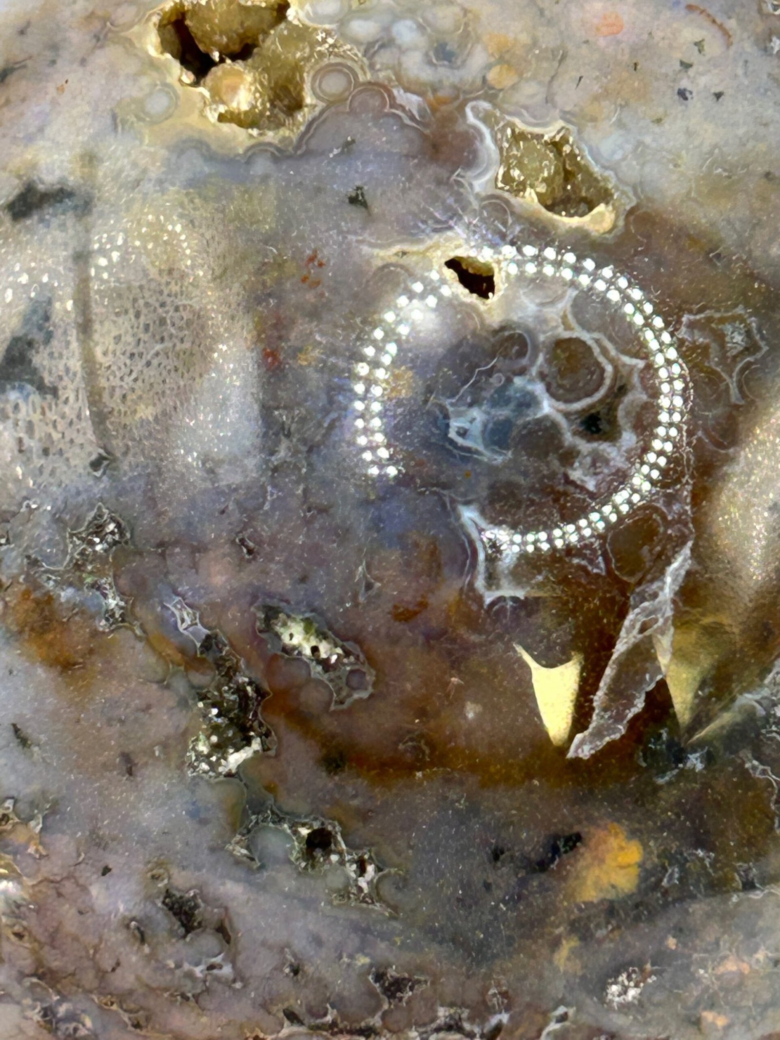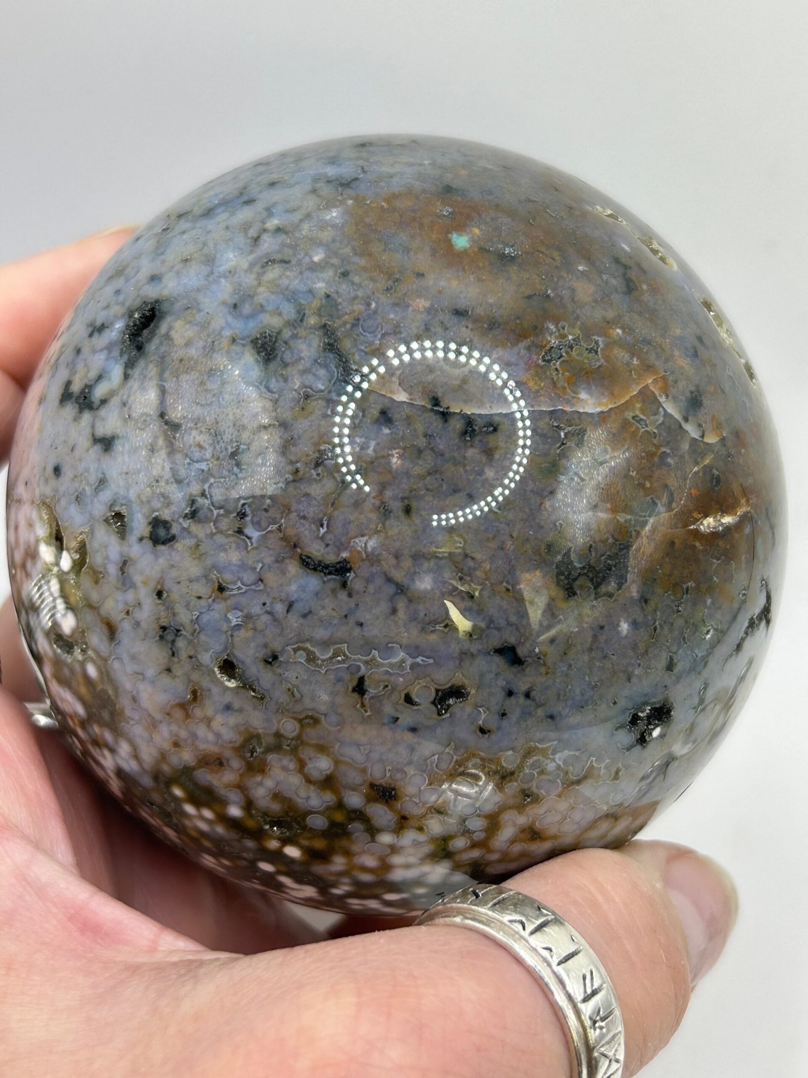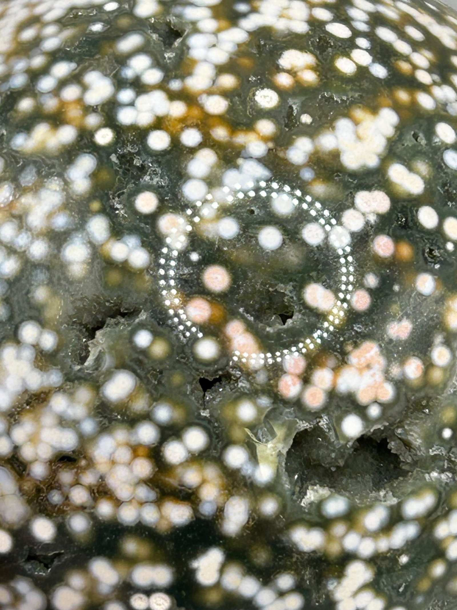 A stunning high quality ocean Jasper with the most amazing orbicular patterning and colours.
