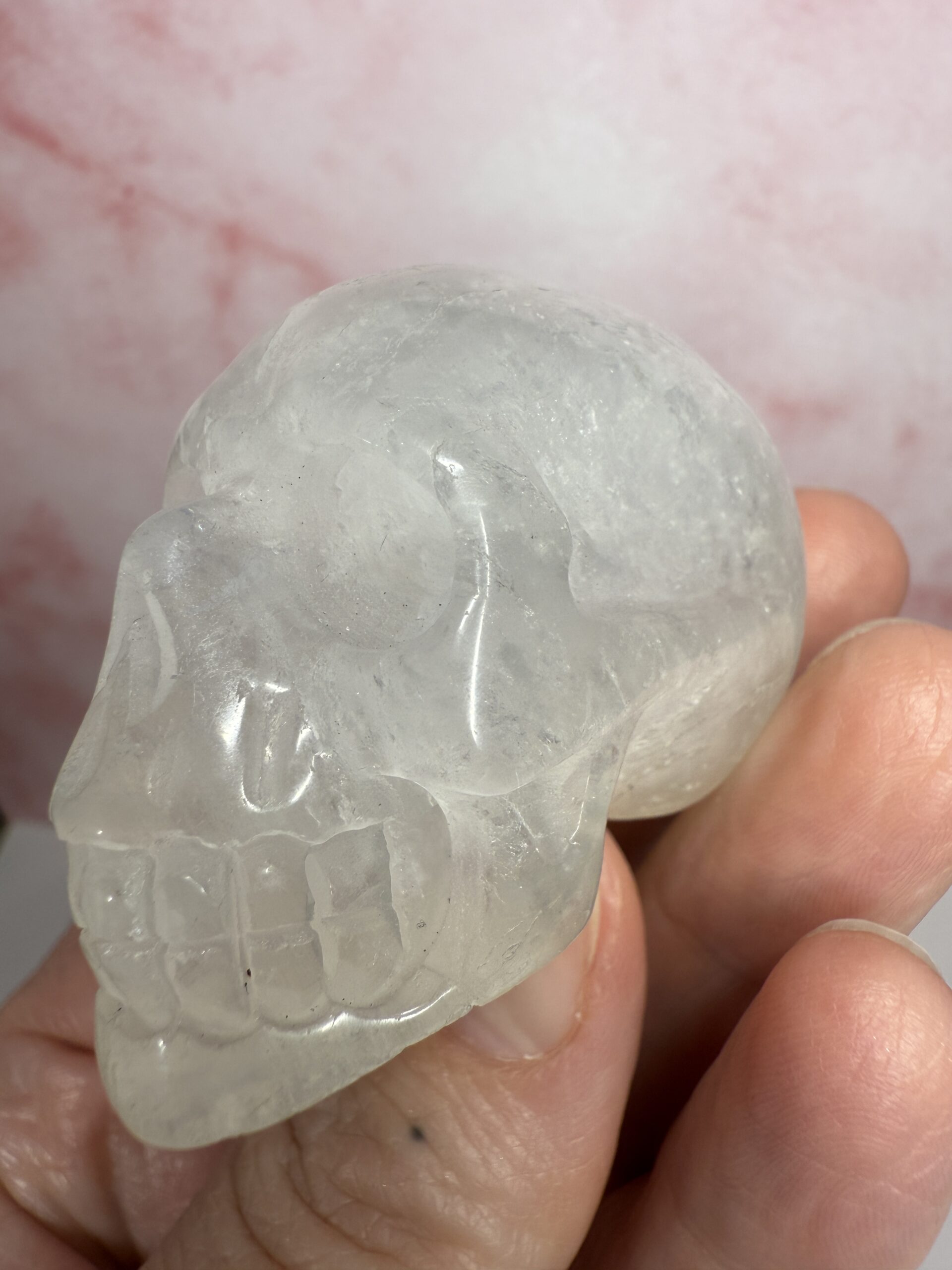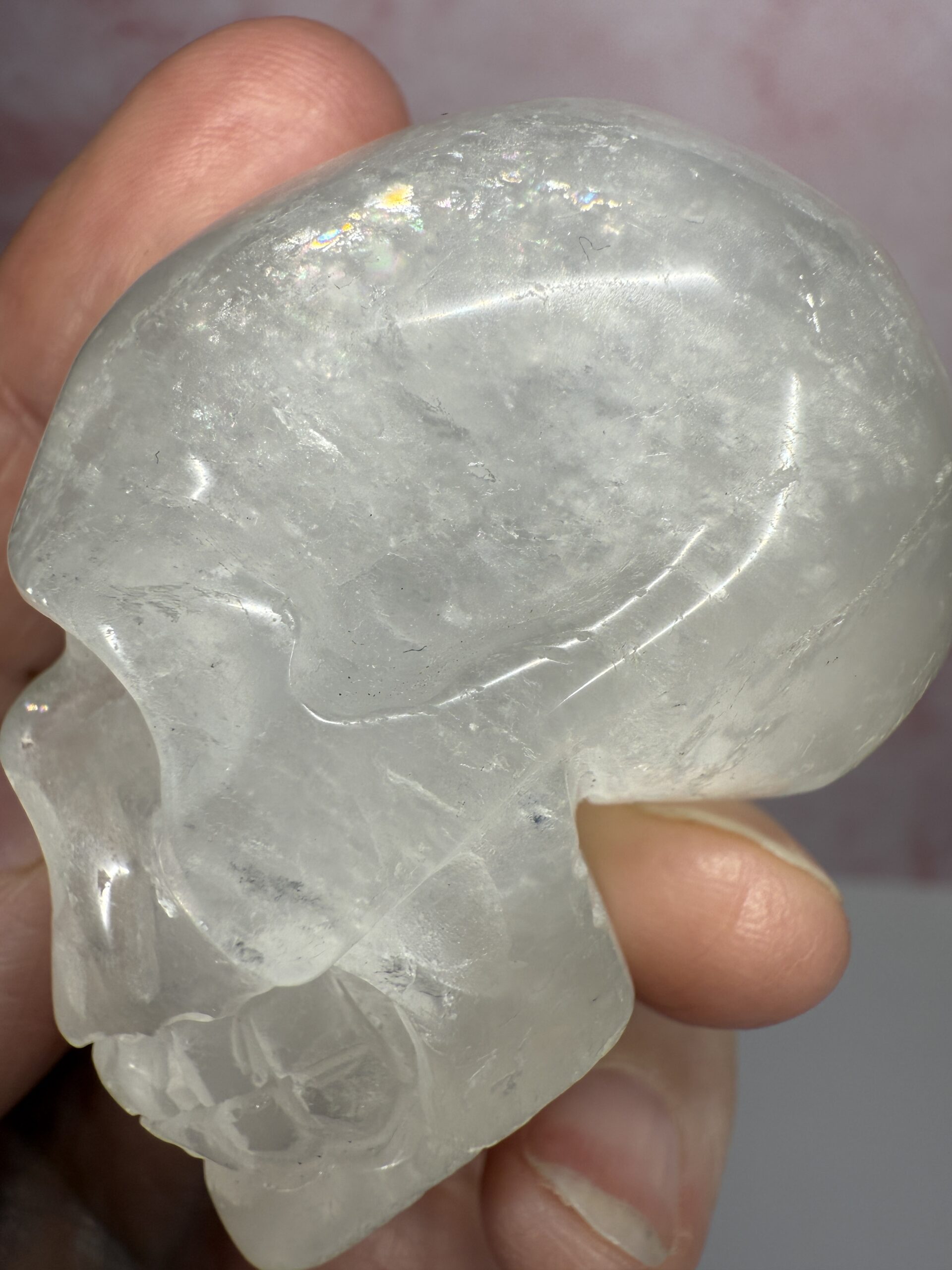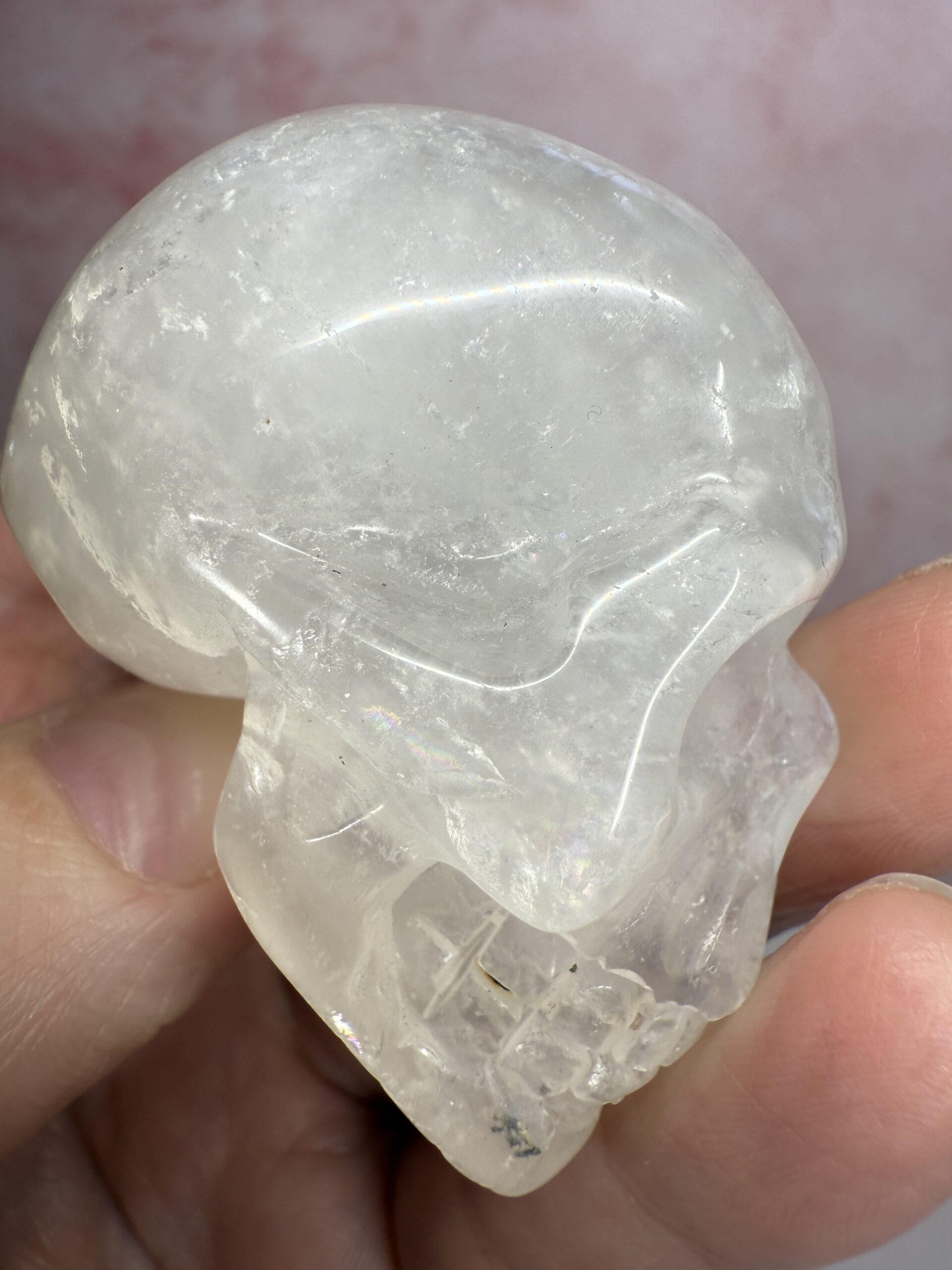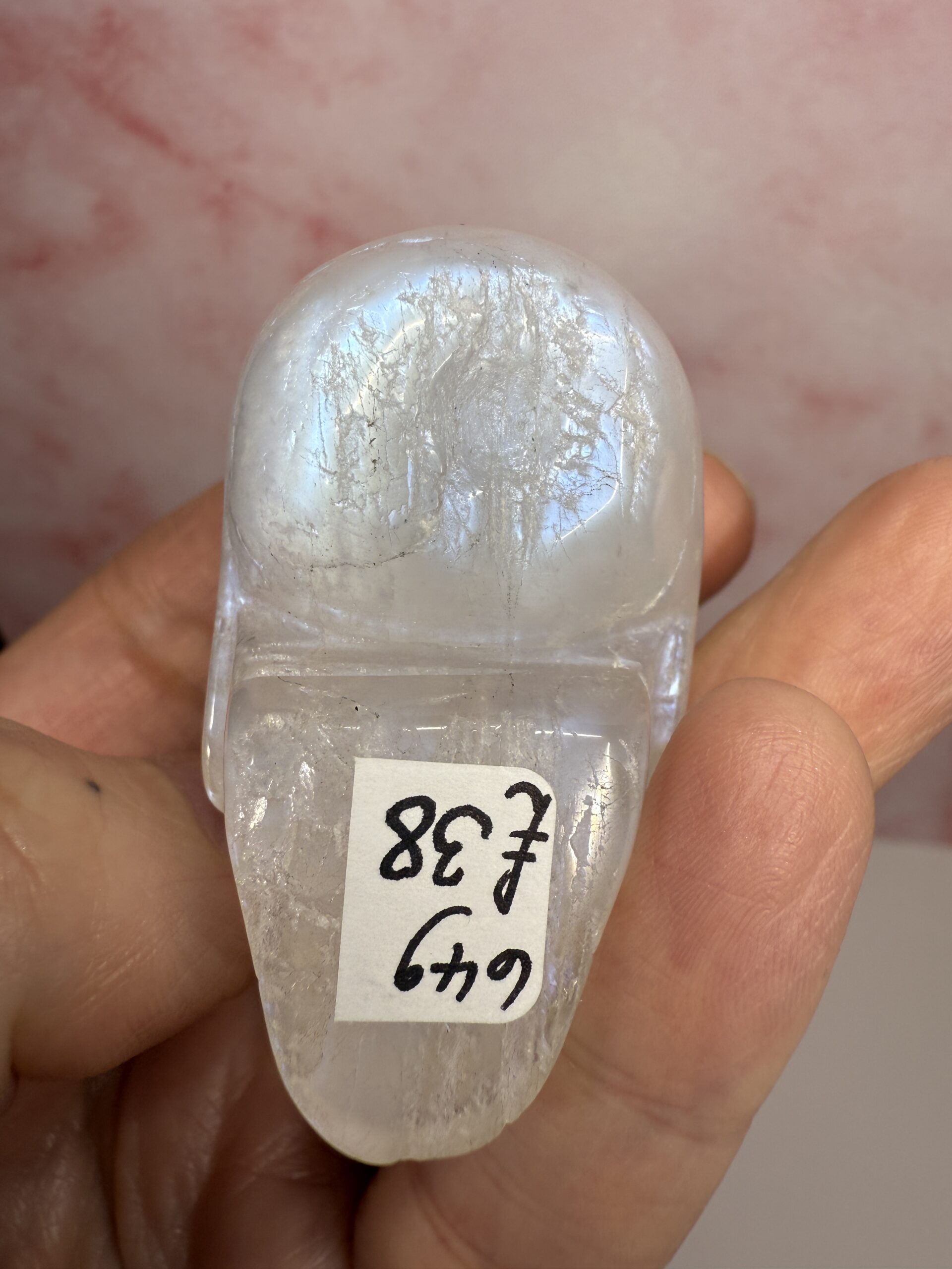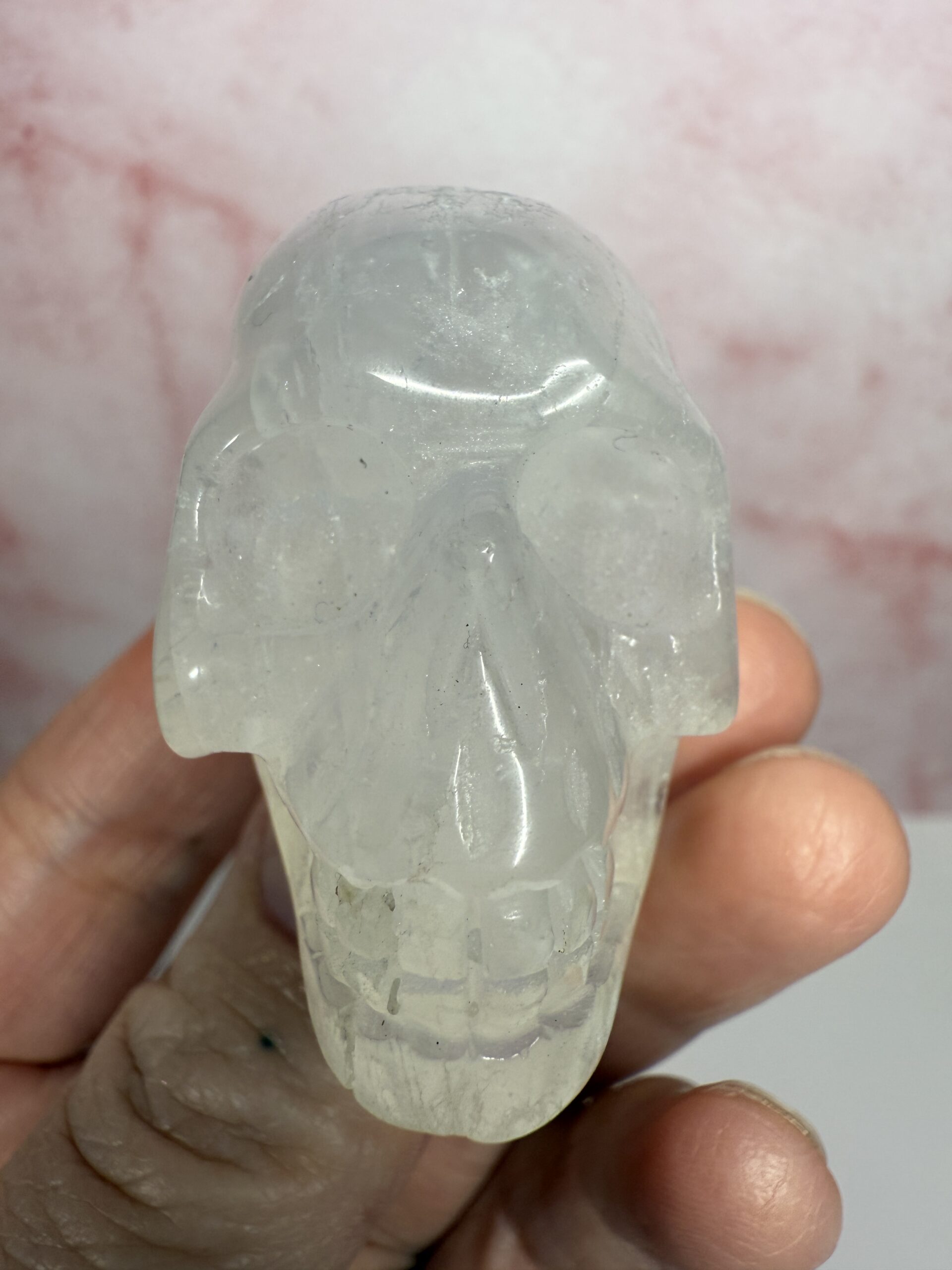This small but mighty high quality white moonstone skull has a vibrant blue flash. Beautifully carved, with stunning blue flash and shimmering white, a fabulous addition to a skull collection.