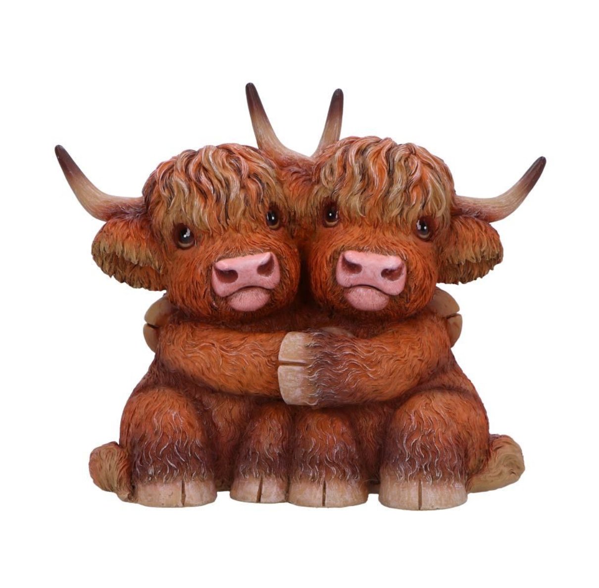 Figurine featuring two Highland Cows sharing a hug