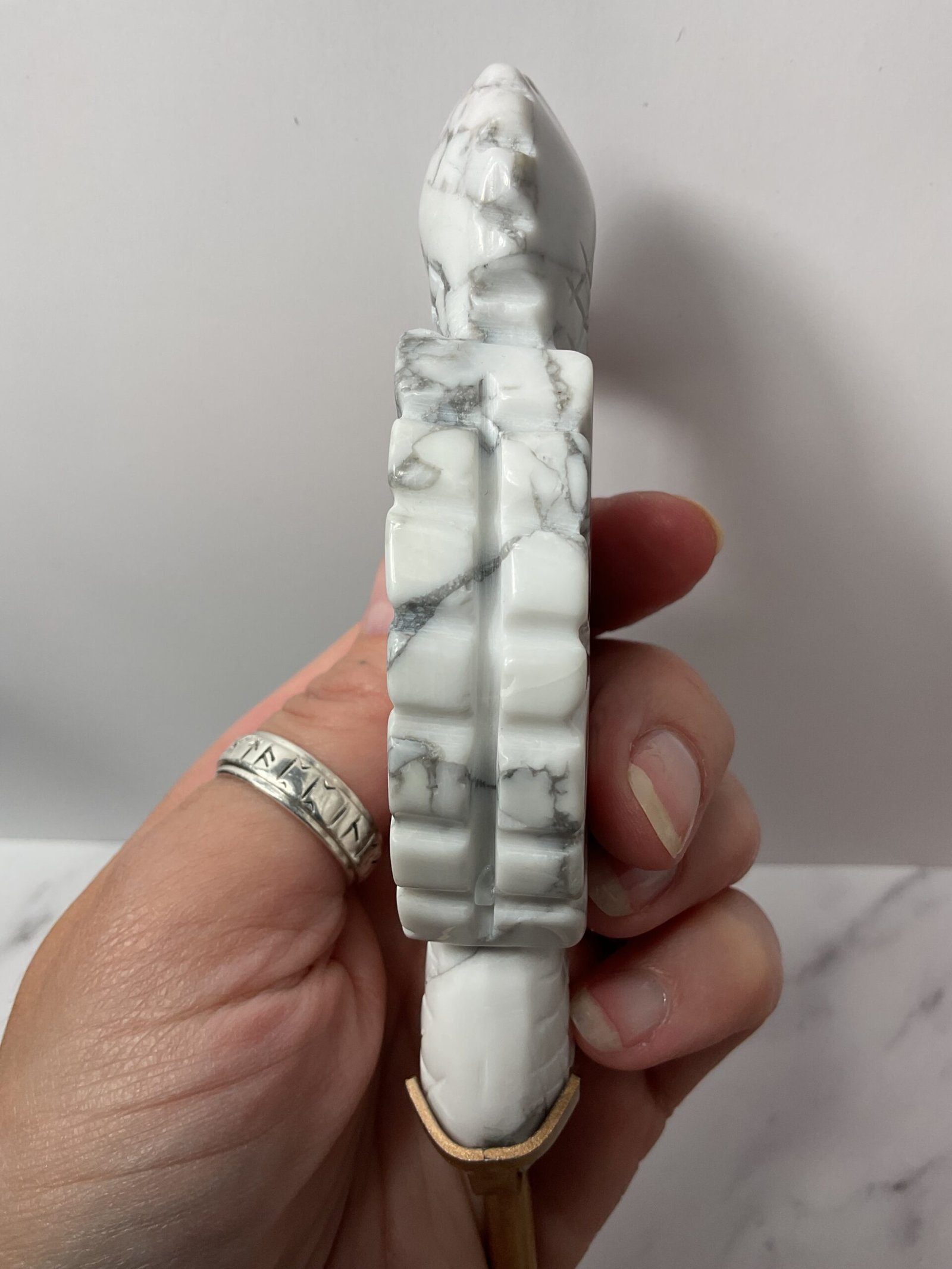 Howlite is an extremely calming and soothing stone. It is beneficial for those who suffer with insomnia as it quiets the mind, helping one experience a deep, peaceful sleep. It brings greater gentleness, empathy, and compassion when dealing with others, and eliminates feelings of frustration, impatience, and anger. It enables one to enter a deep meditative state as it relaxes the body and releases muscle tension.