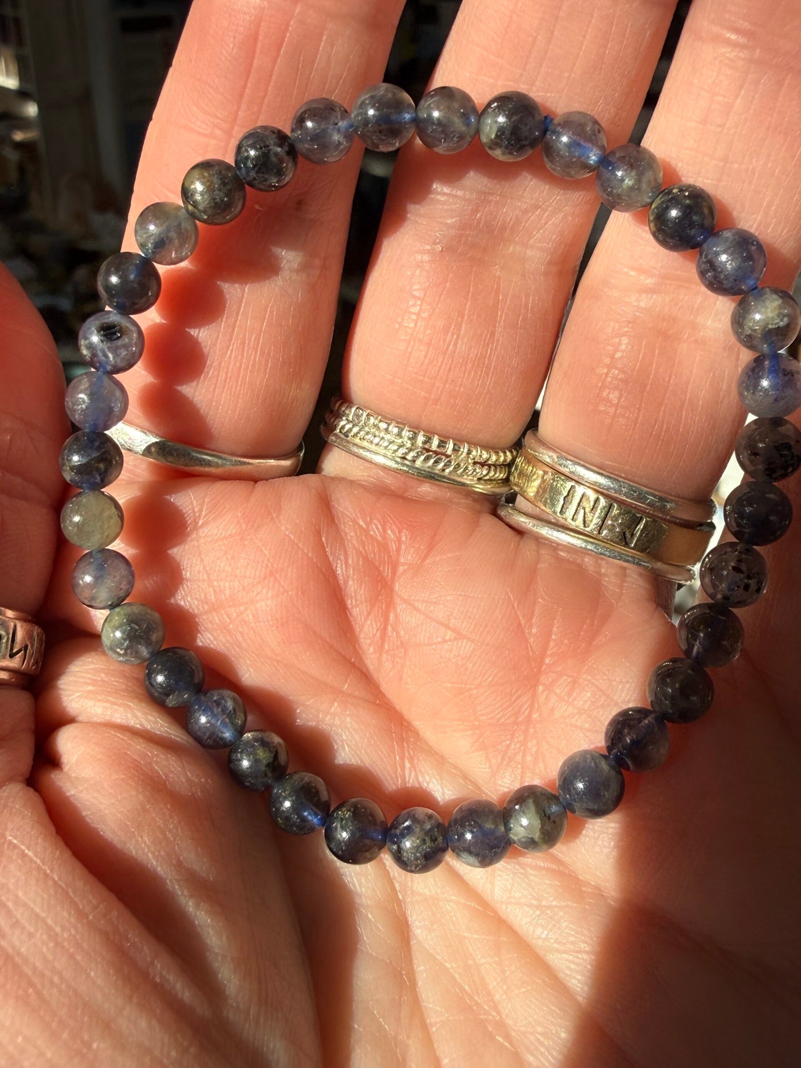 One intuitively chosen 5mm bead high quality Iolite bead bracelet.