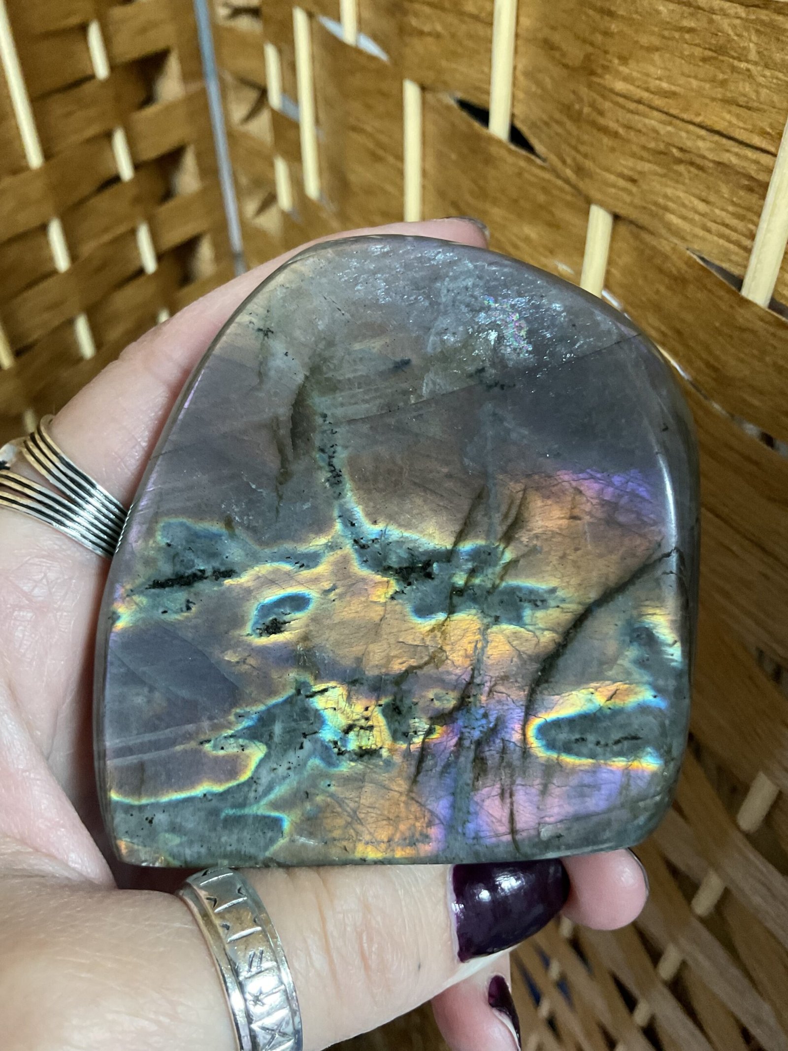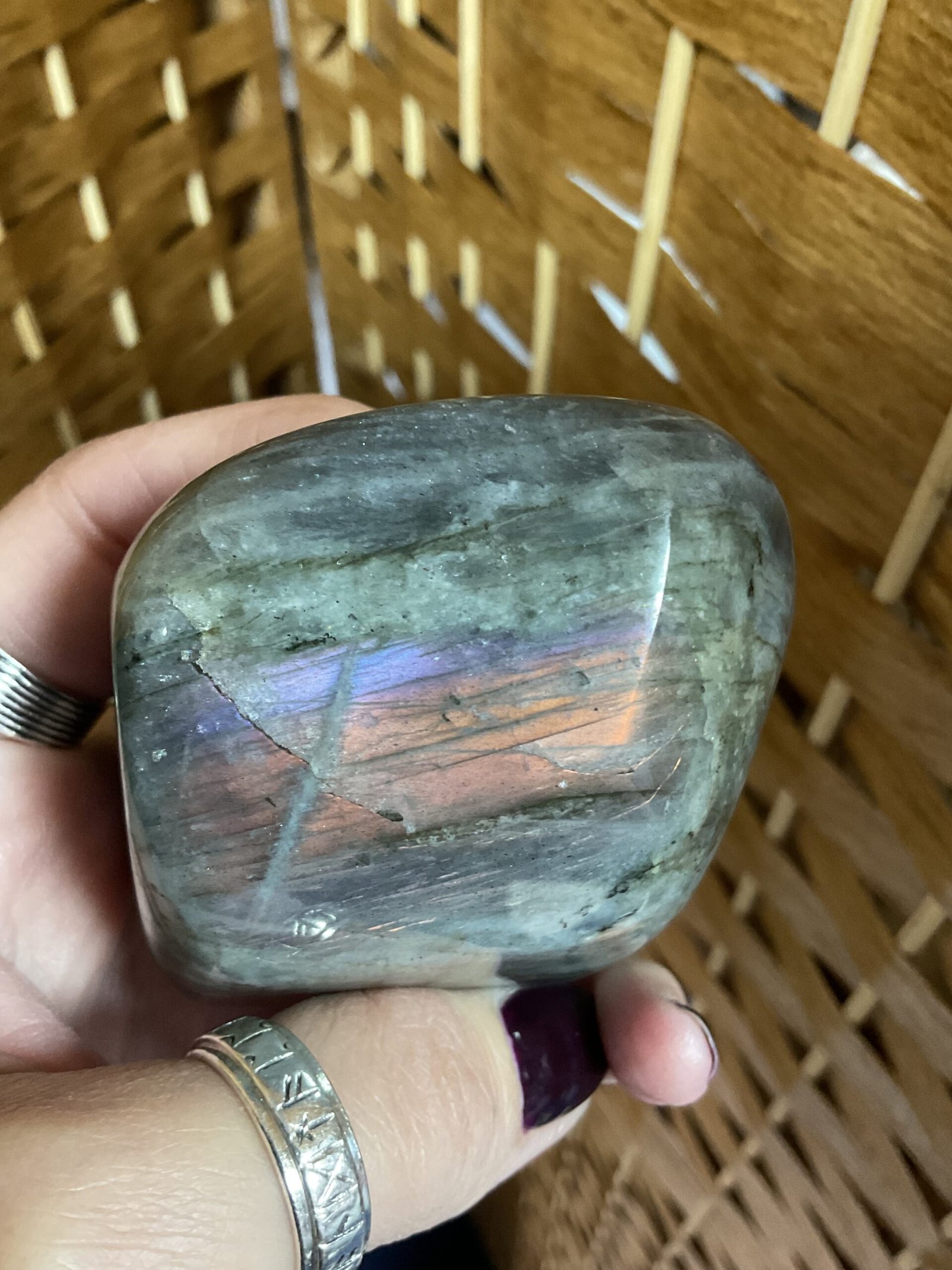 Labradorite is a highly mystical and protective stone. It is a powerful companion when performing magical or ritual work as it brings deep awareness of our spiritual knowledge. It is a stone of self-transformation and is beneficial to work with during periods of change as it imparts strength, courage, and perseverance. It deflects negative energies from one’s aura and environment, and aids one on their spiritual journey.