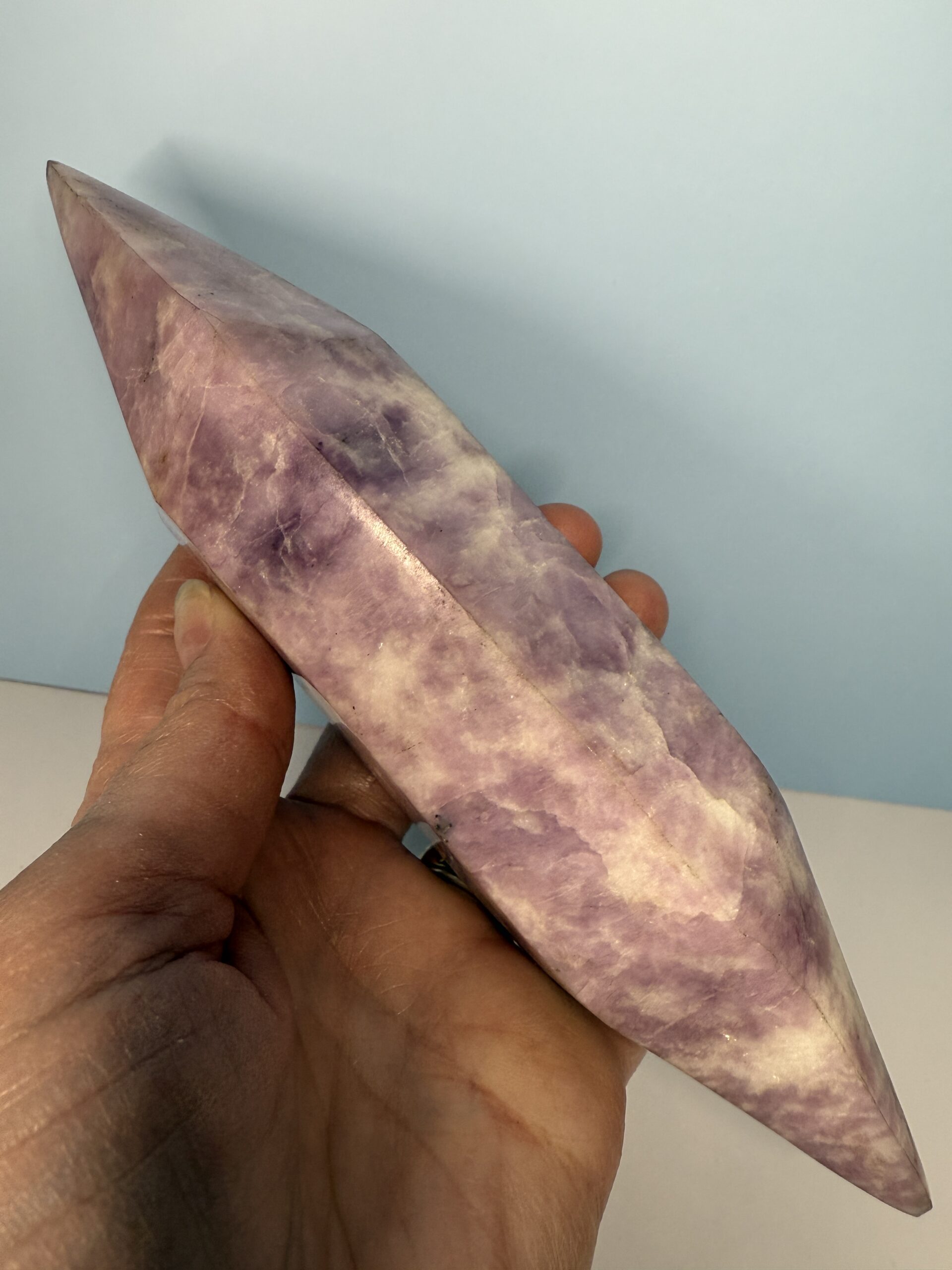 A lovely lilac Lepidolite double terminated point.