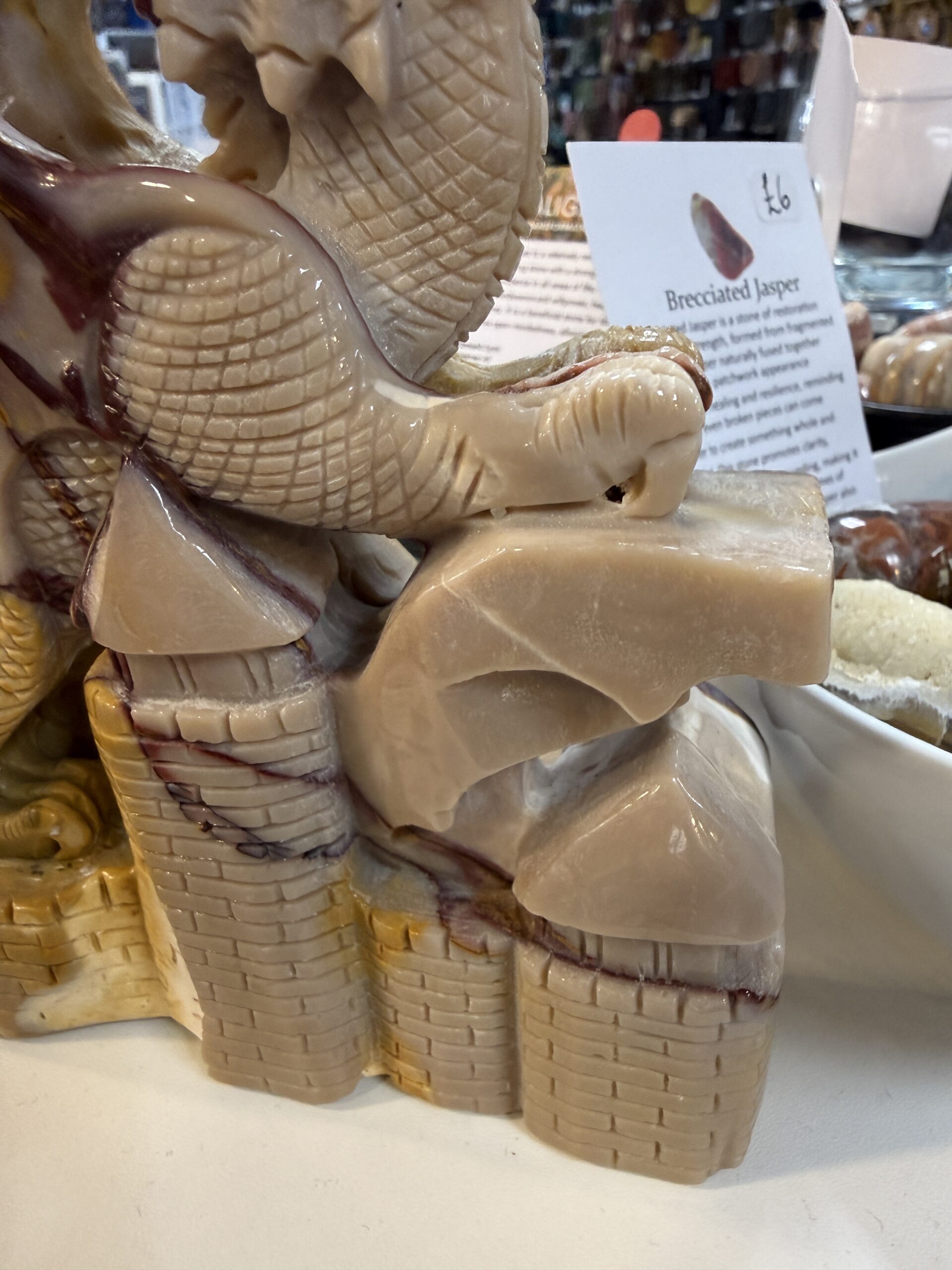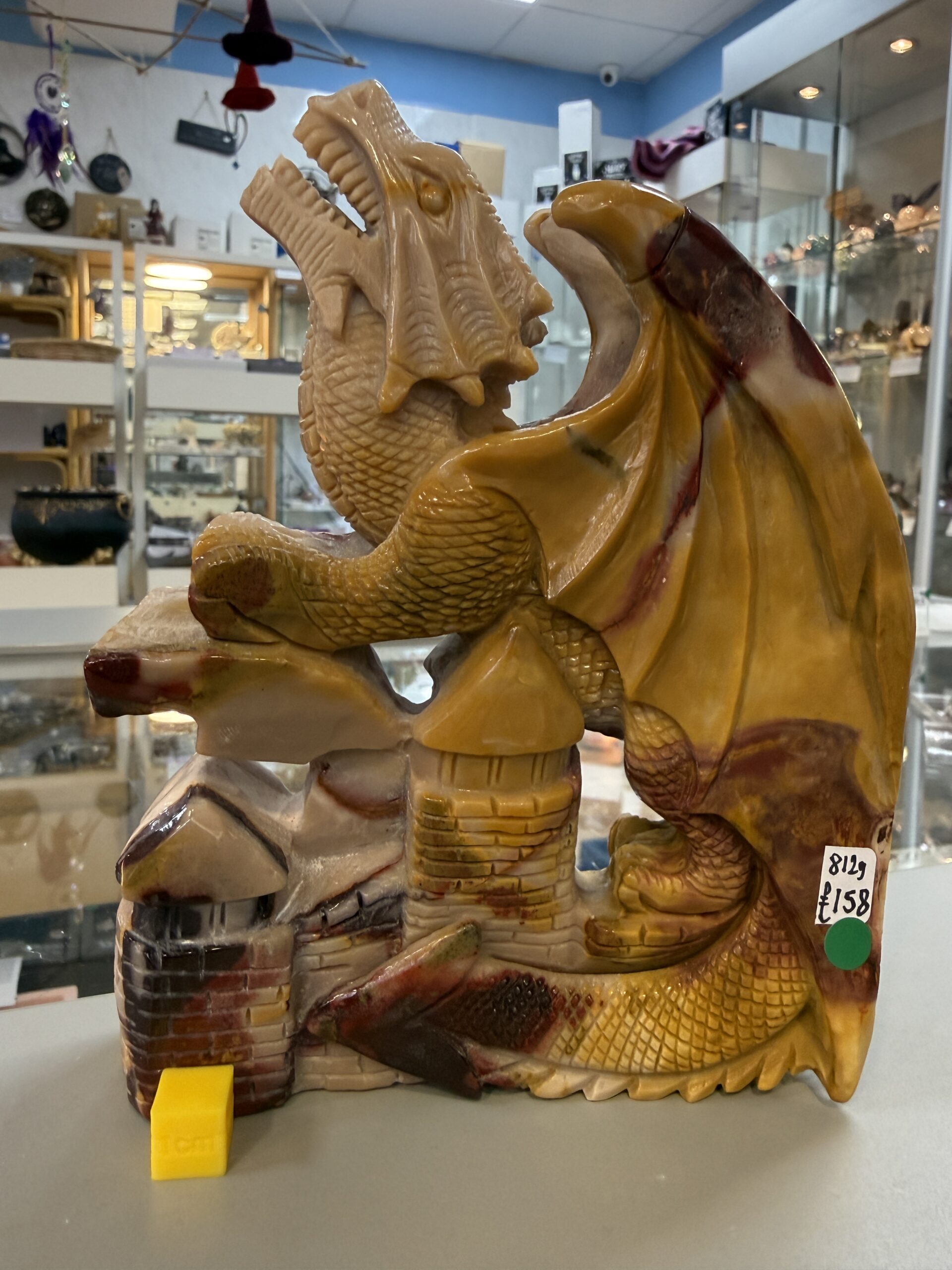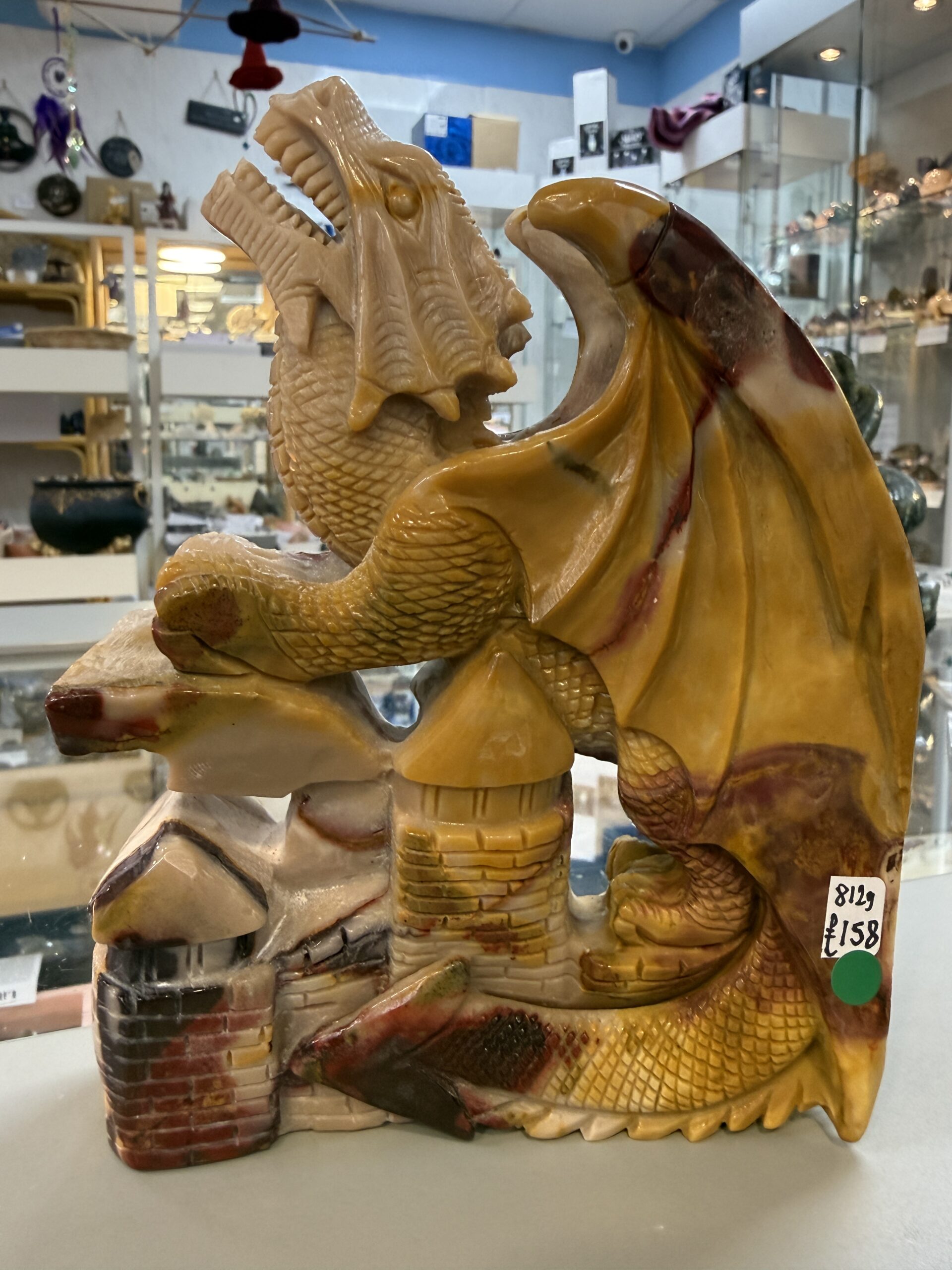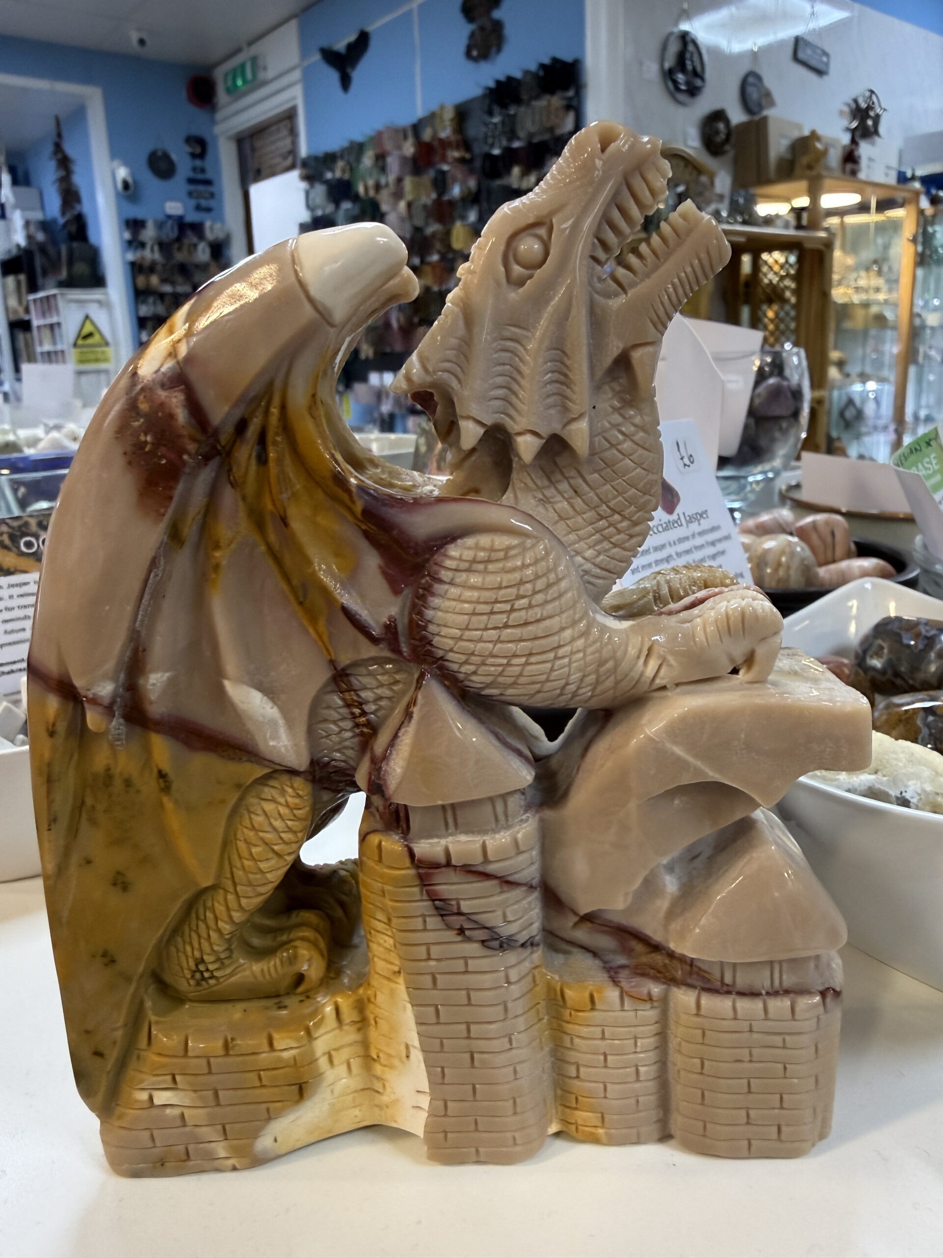 This gorgeous dragon sits perched upon the turrets of a castle and has been expertly carved with fabulous detail.