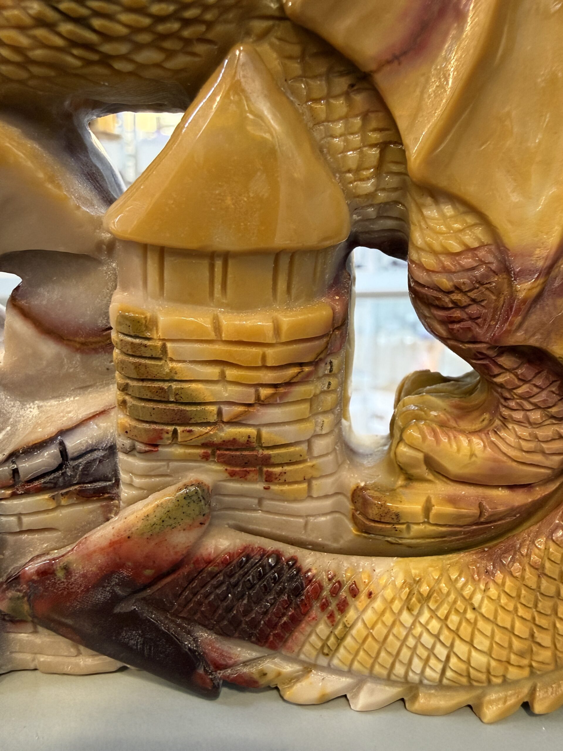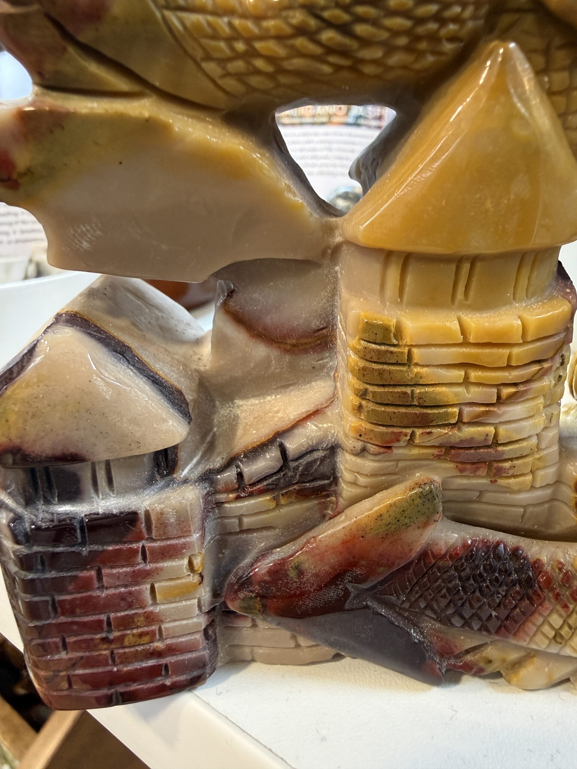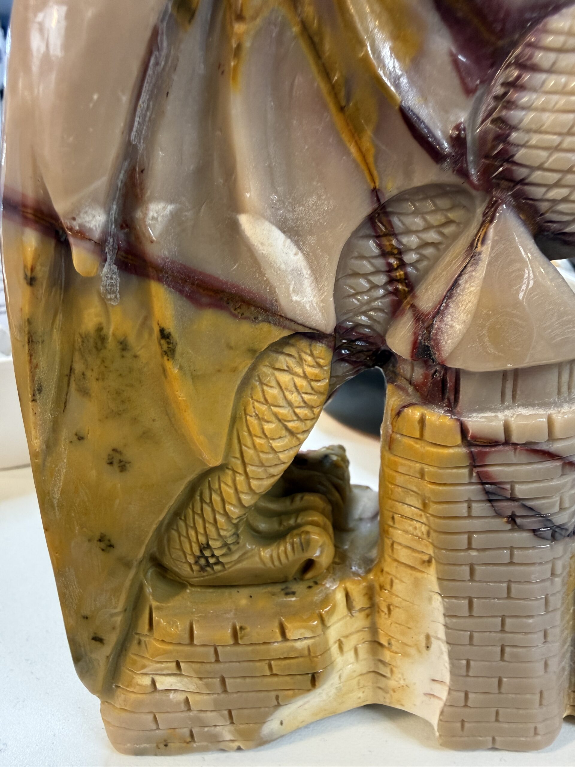This gorgeous dragon sits perched upon the turrets of a castle and has been expertly carved with fabulous detail.
