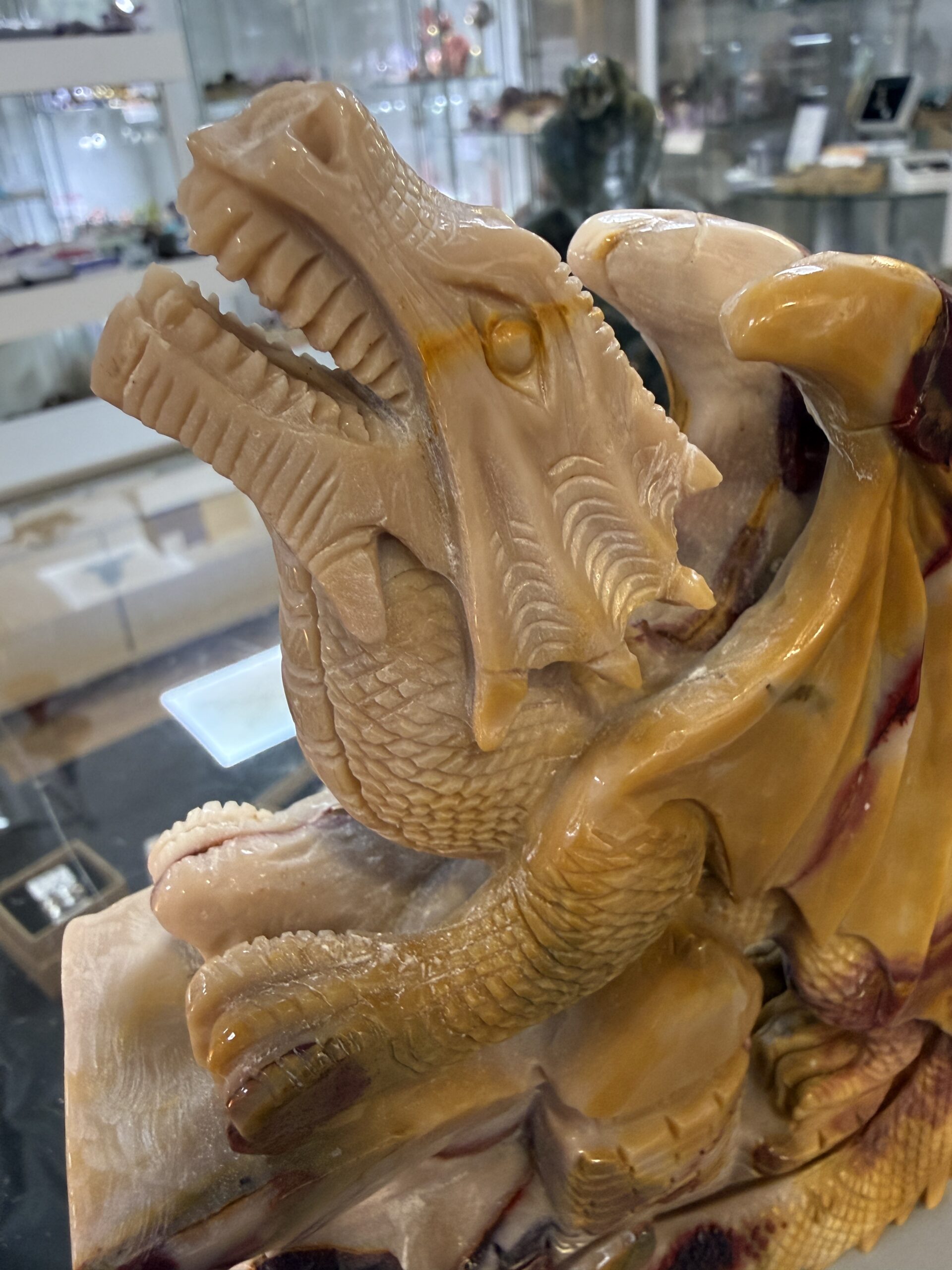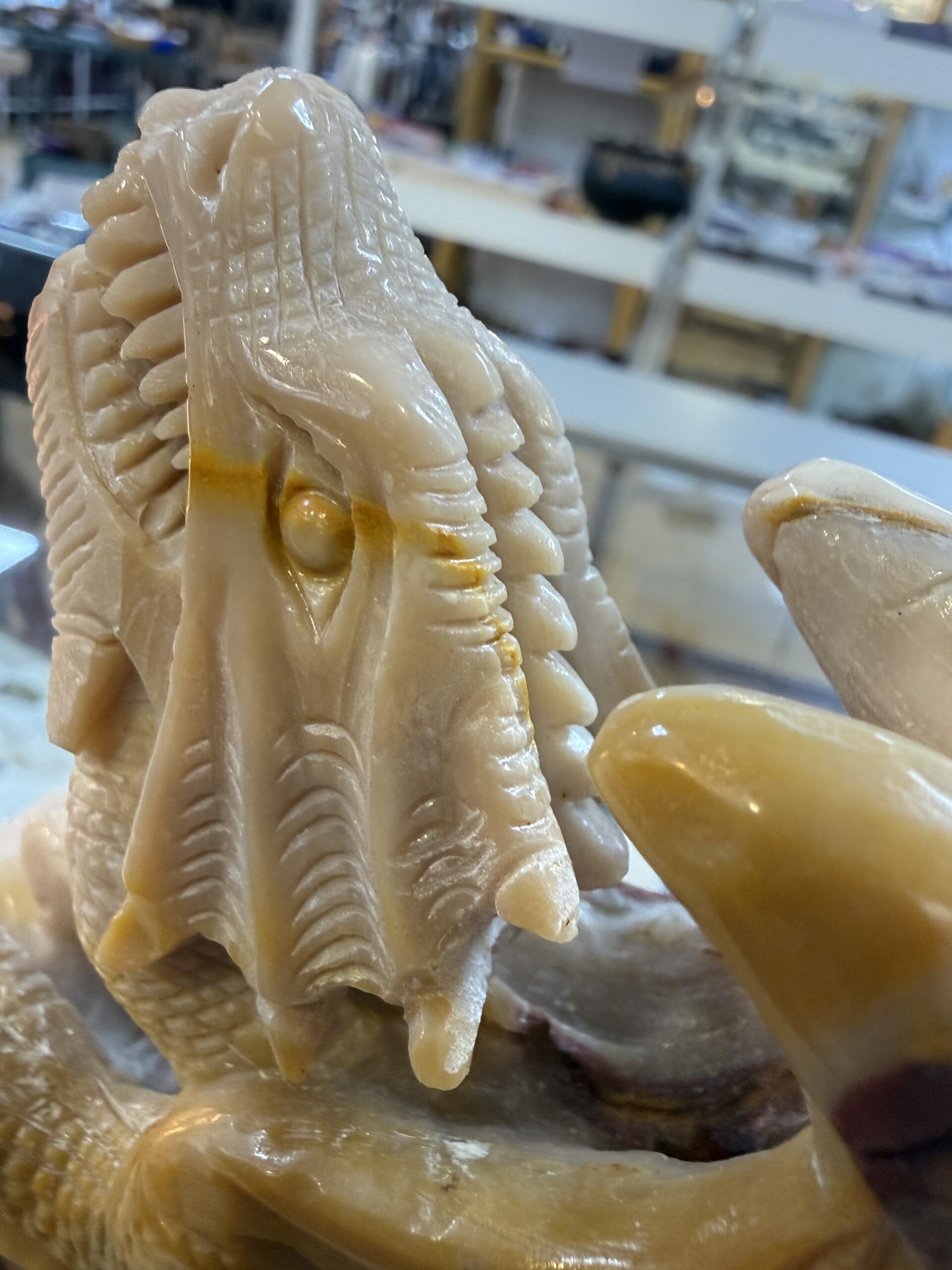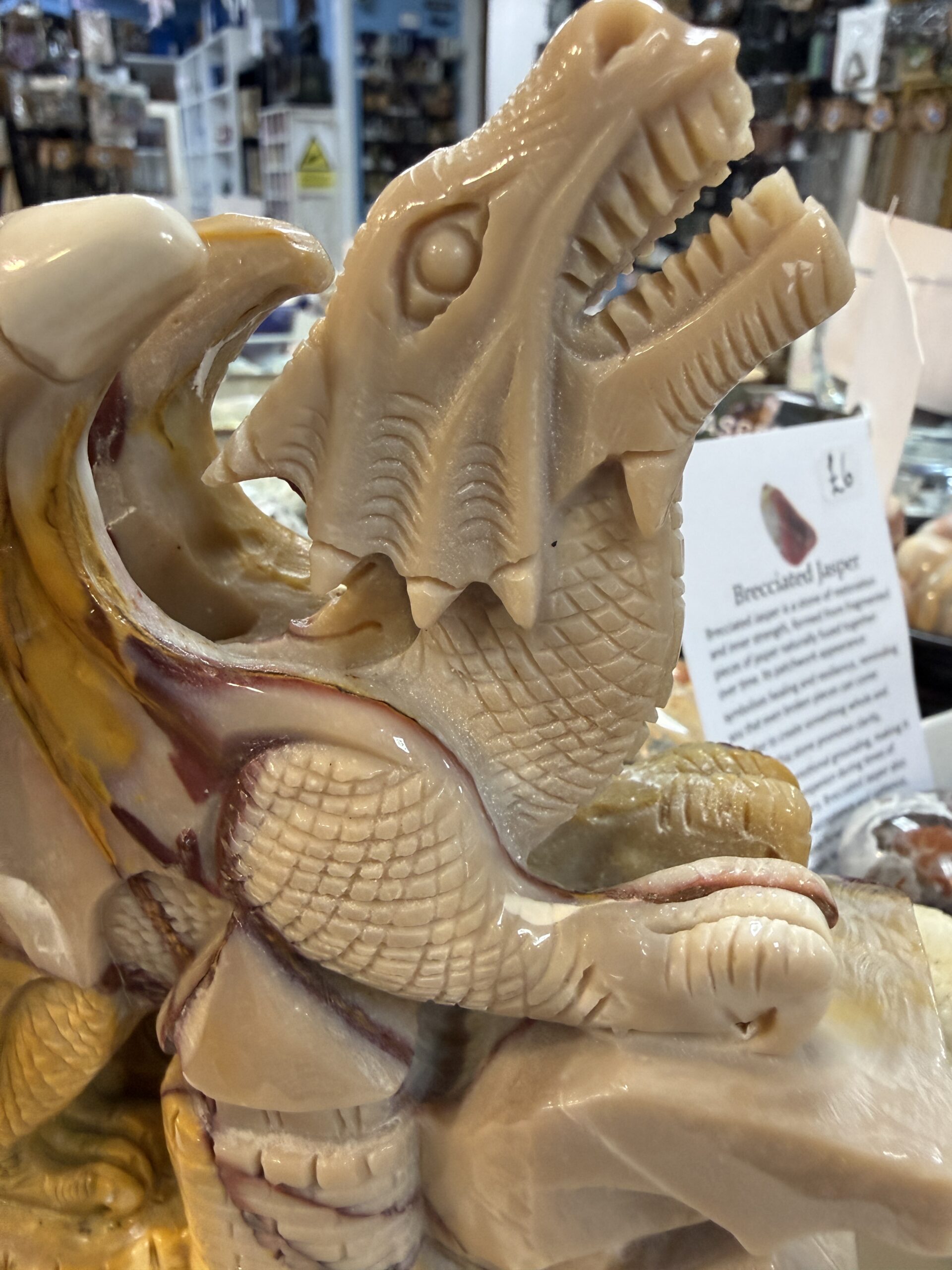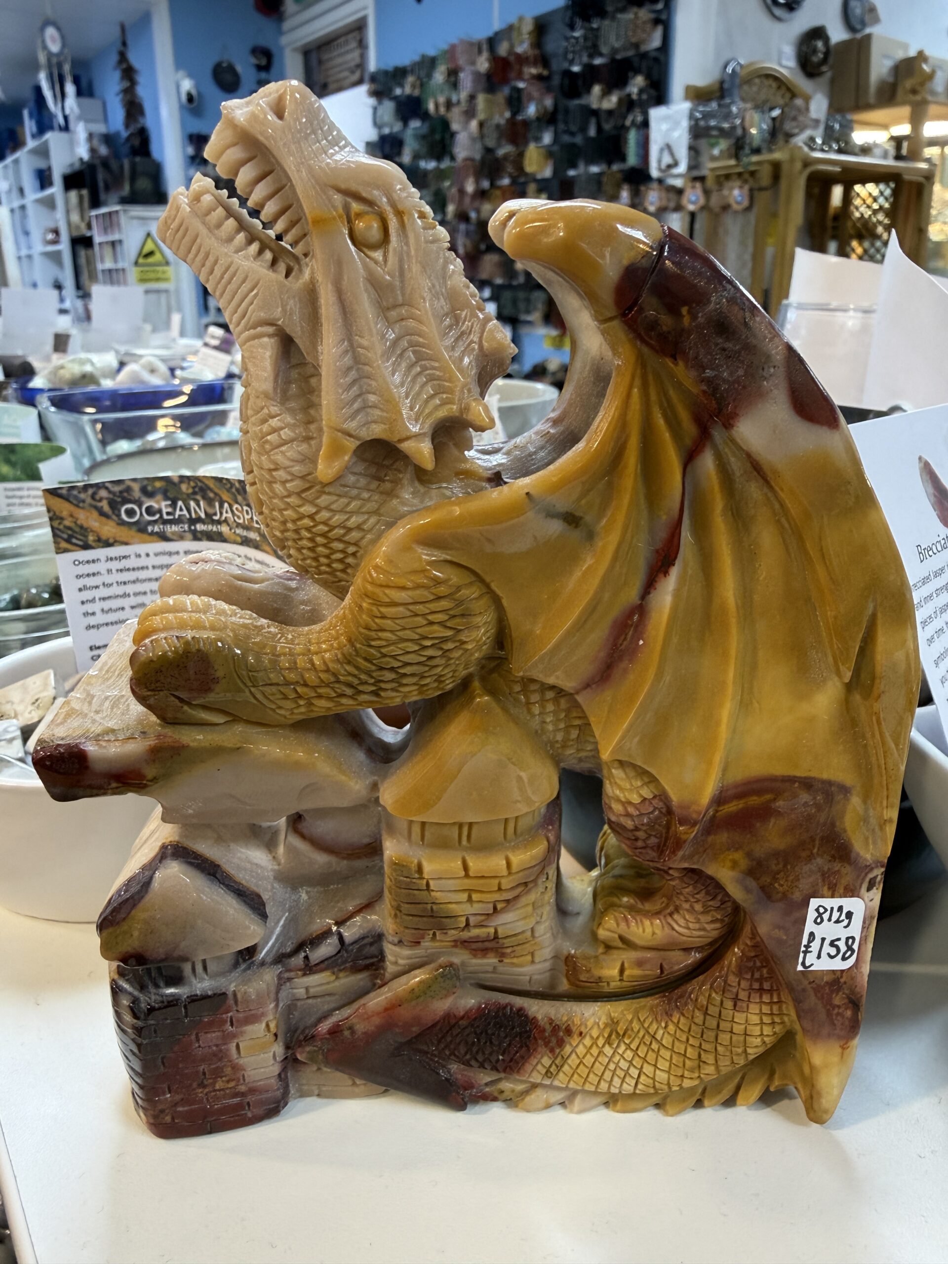 This gorgeous dragon sits perched upon the turrets of a castle and has been expertly carved with fabulous detail.
