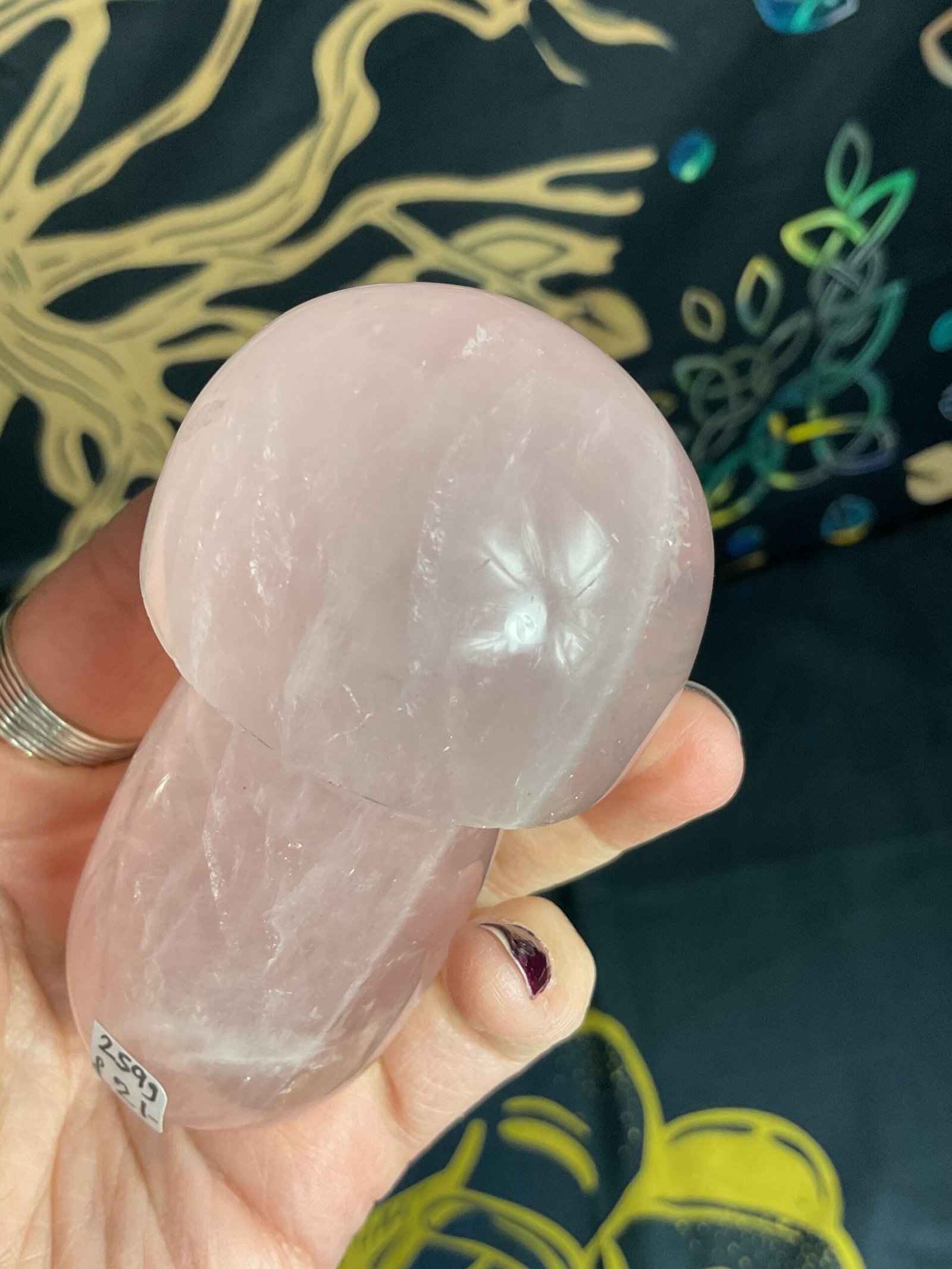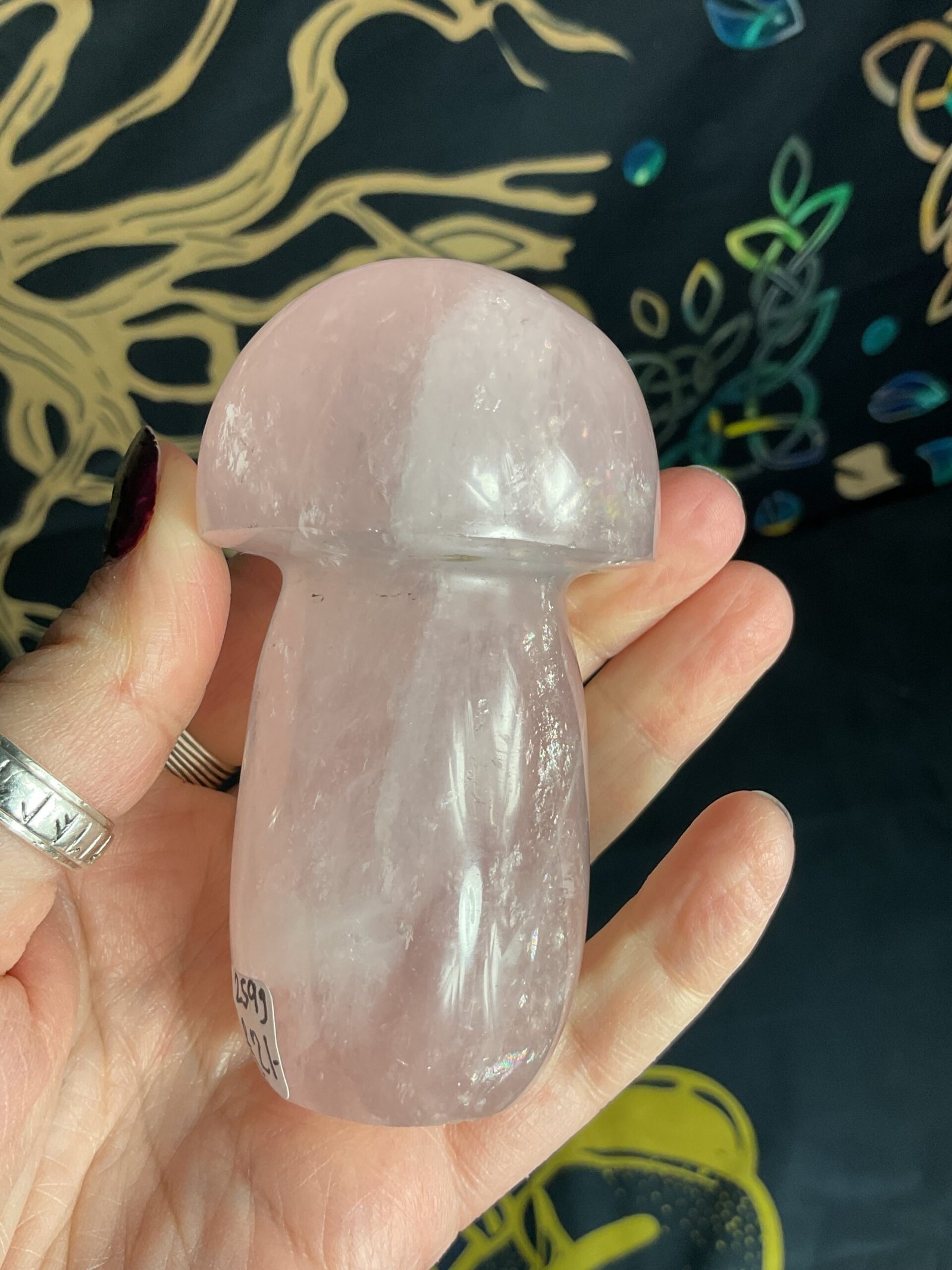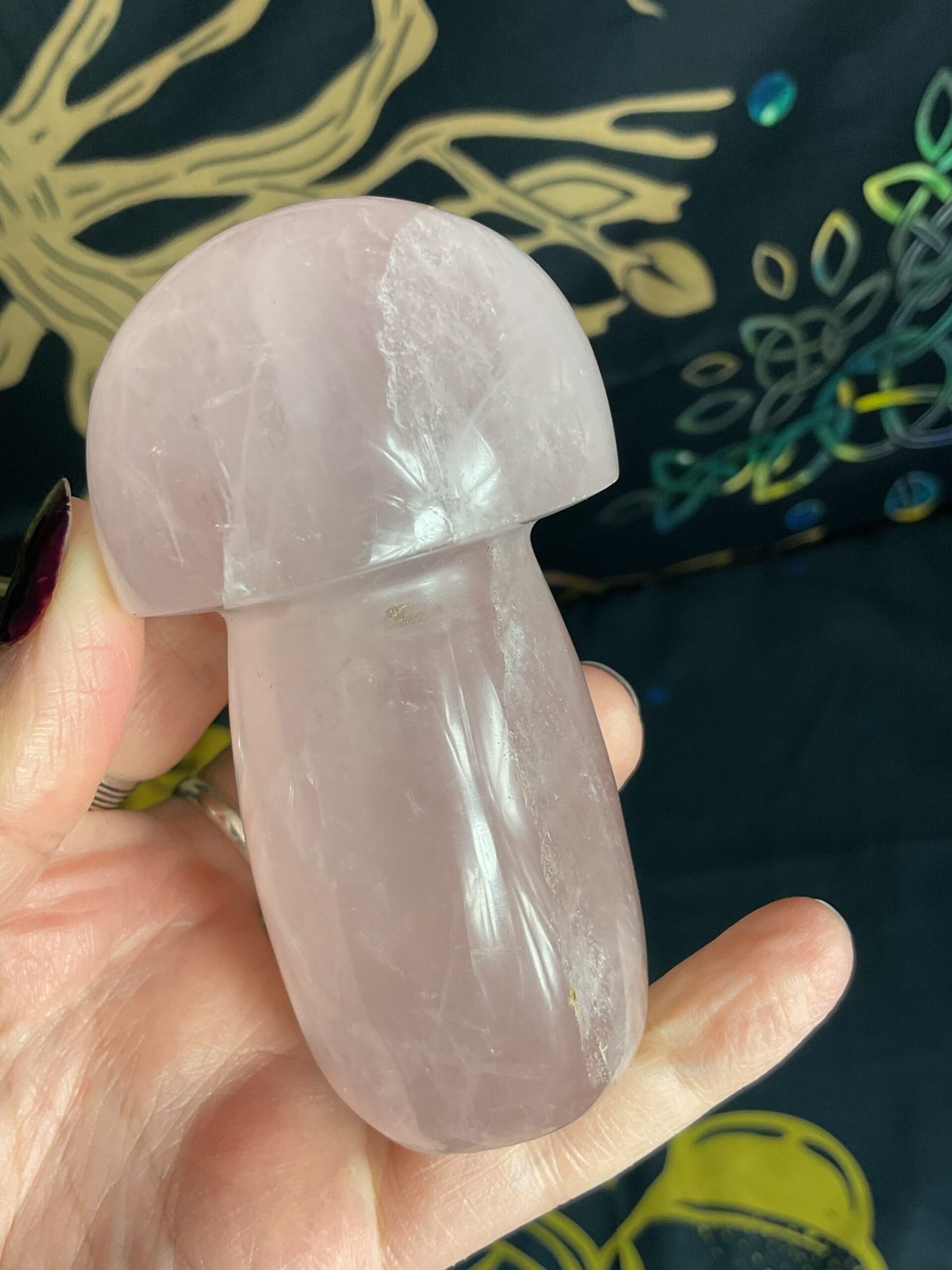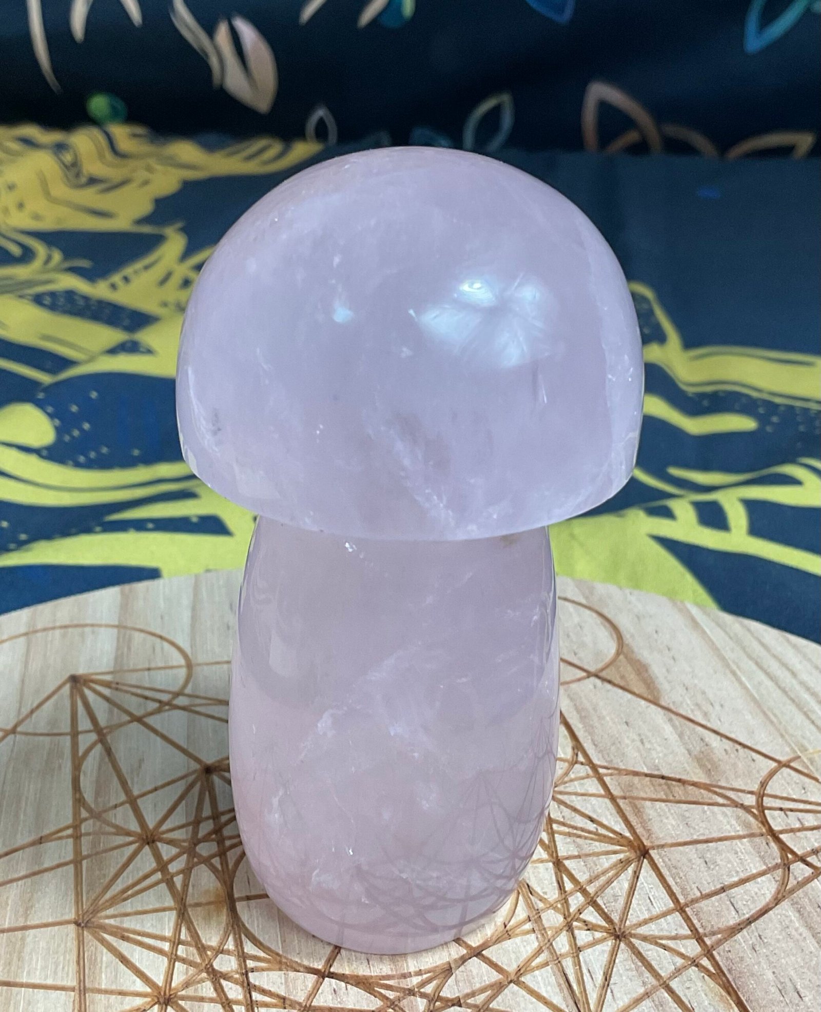 Hand carved rose Quartz mushroom carving.
