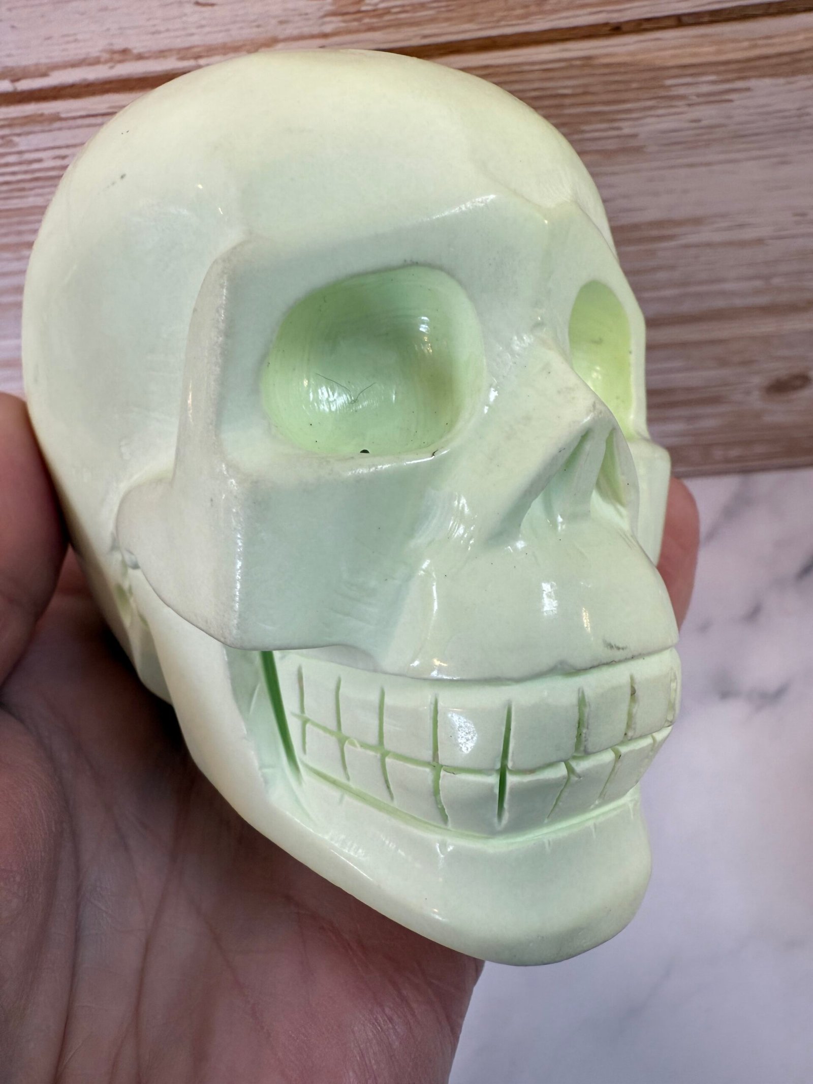 Lemon Chrysoprase (or citron chrysoprase) is actually a green type of magnesite only found in Western Australia. The reason it’s often called a type of chrysoprase is because it’s typically discovered in chrysoprase mines. What makes this stone even more intriguing is that it’s not common and sometimes grows intertwined with actual chrysoprase.