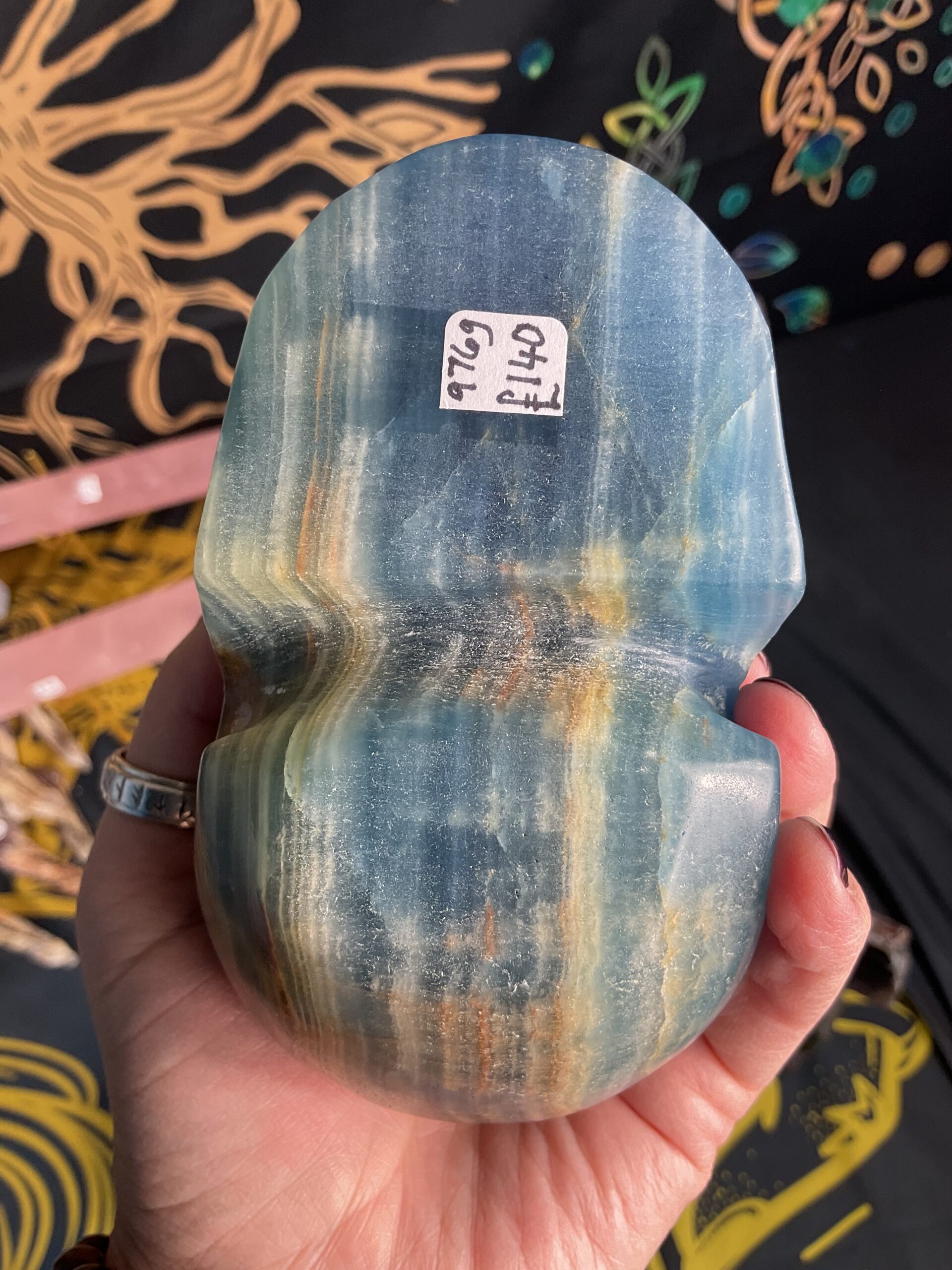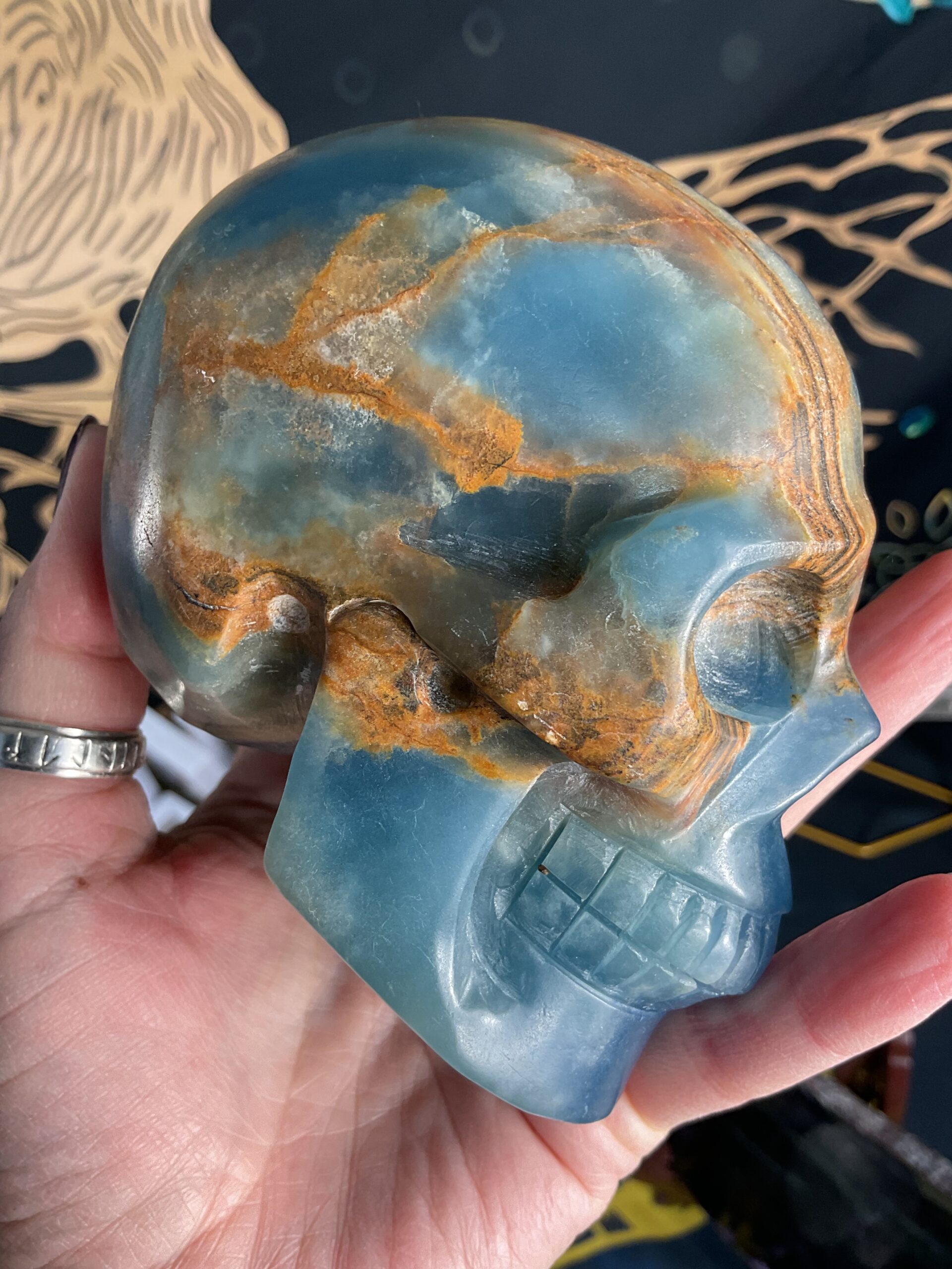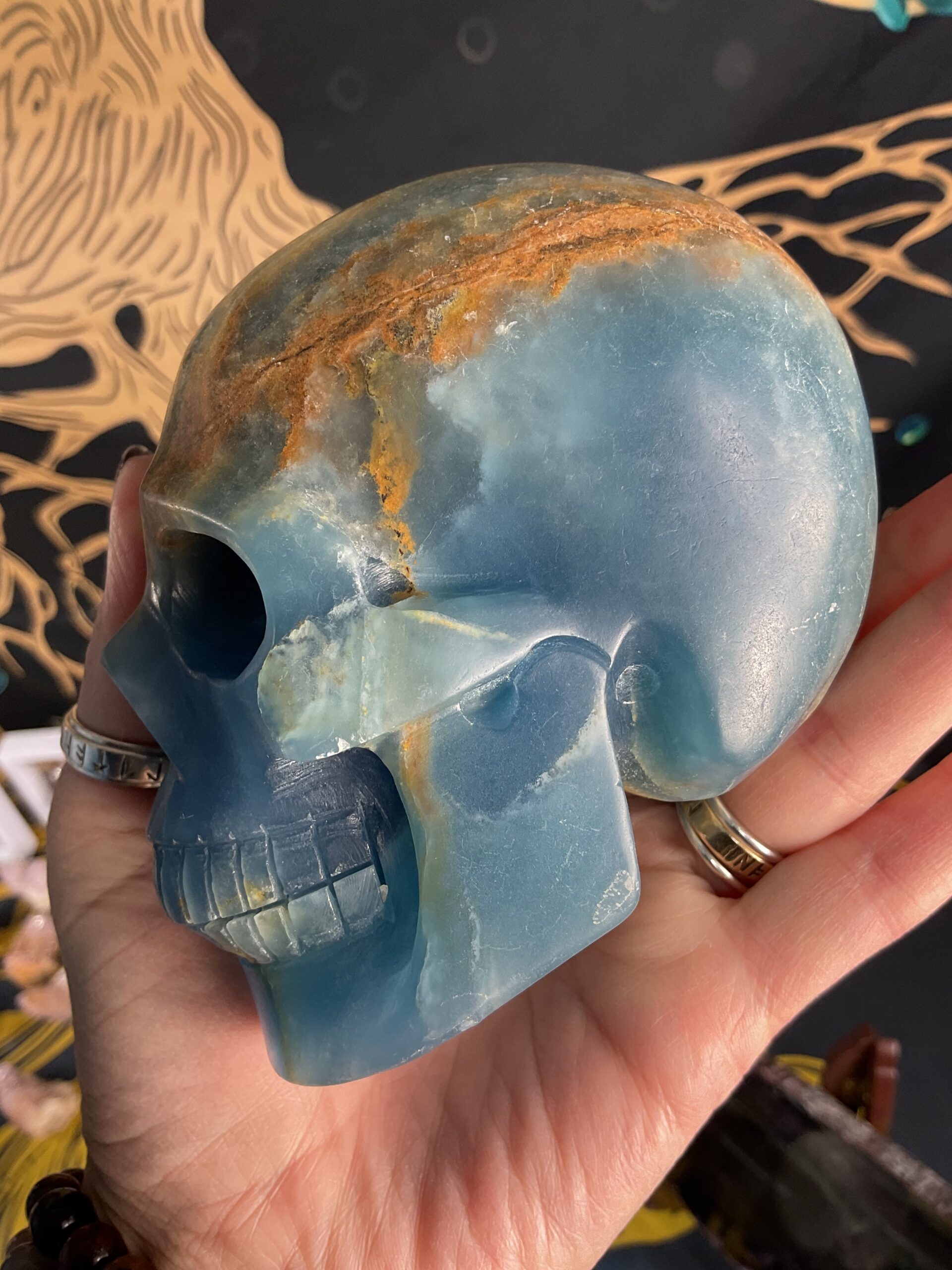 Lemurian Aquatine Calcite Skull Carving