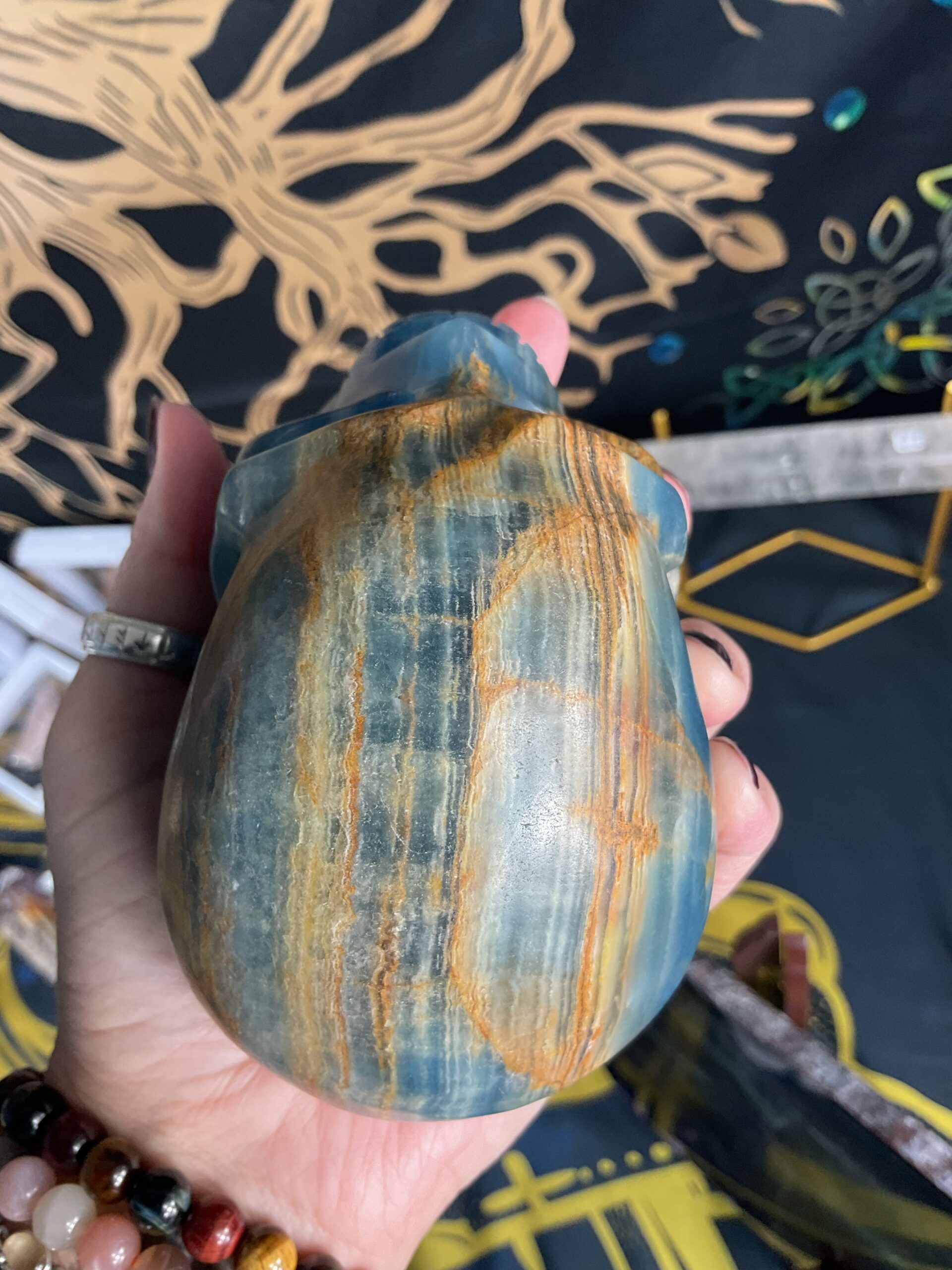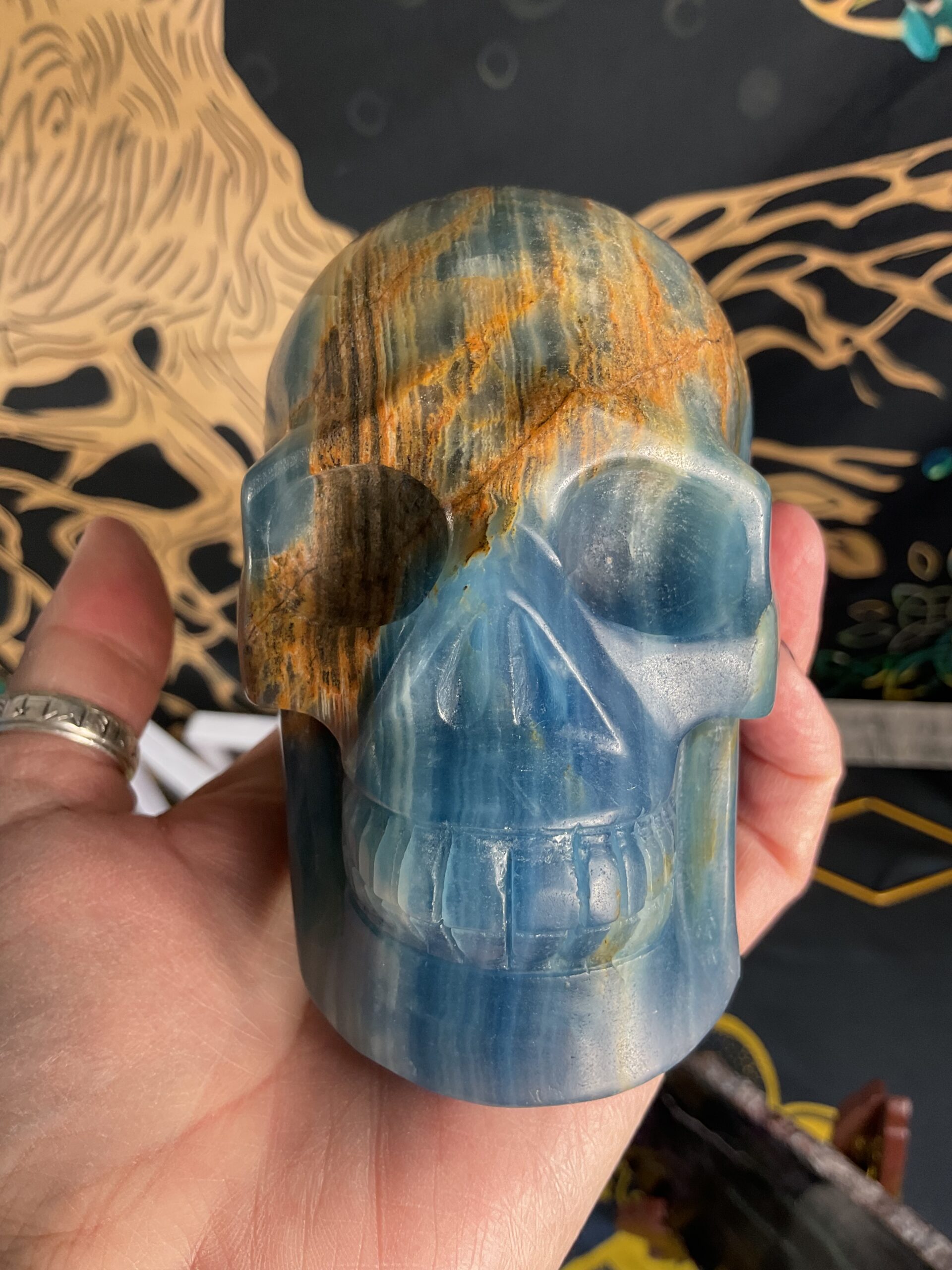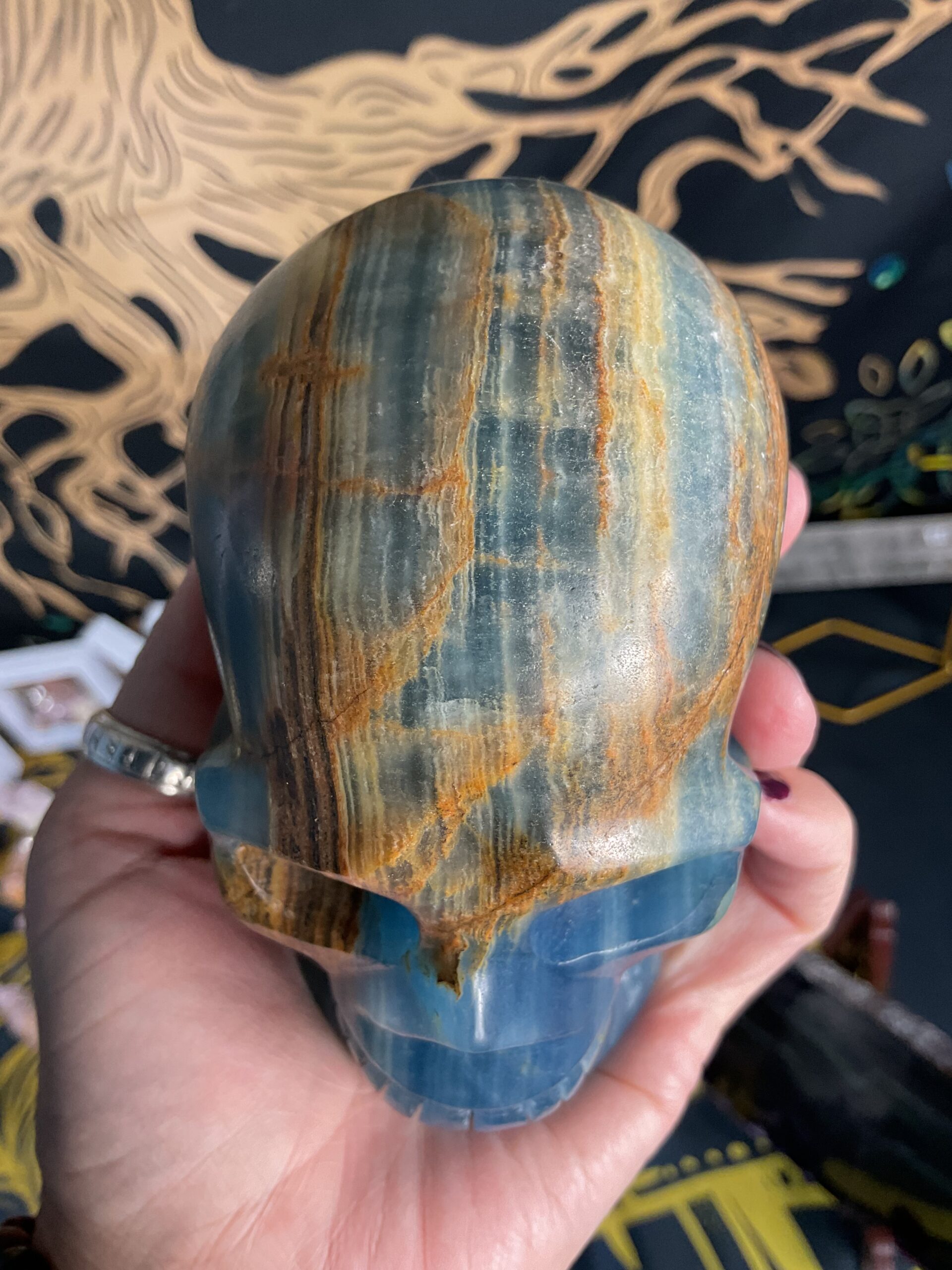 Lemurian Aquatine Calcite Skull Carving