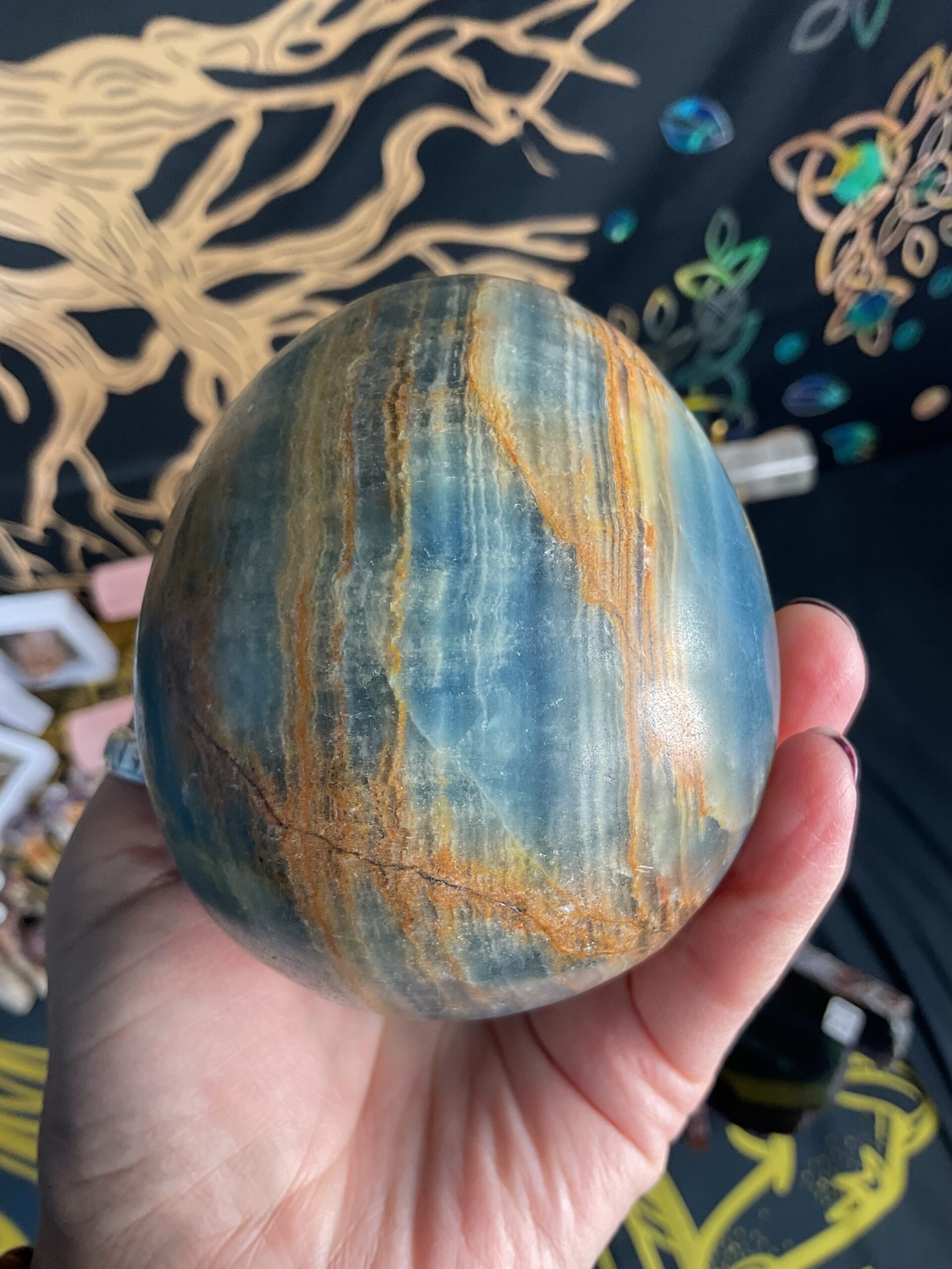 also know as blue onyx (although not an onyx) and Aquatine calcite.