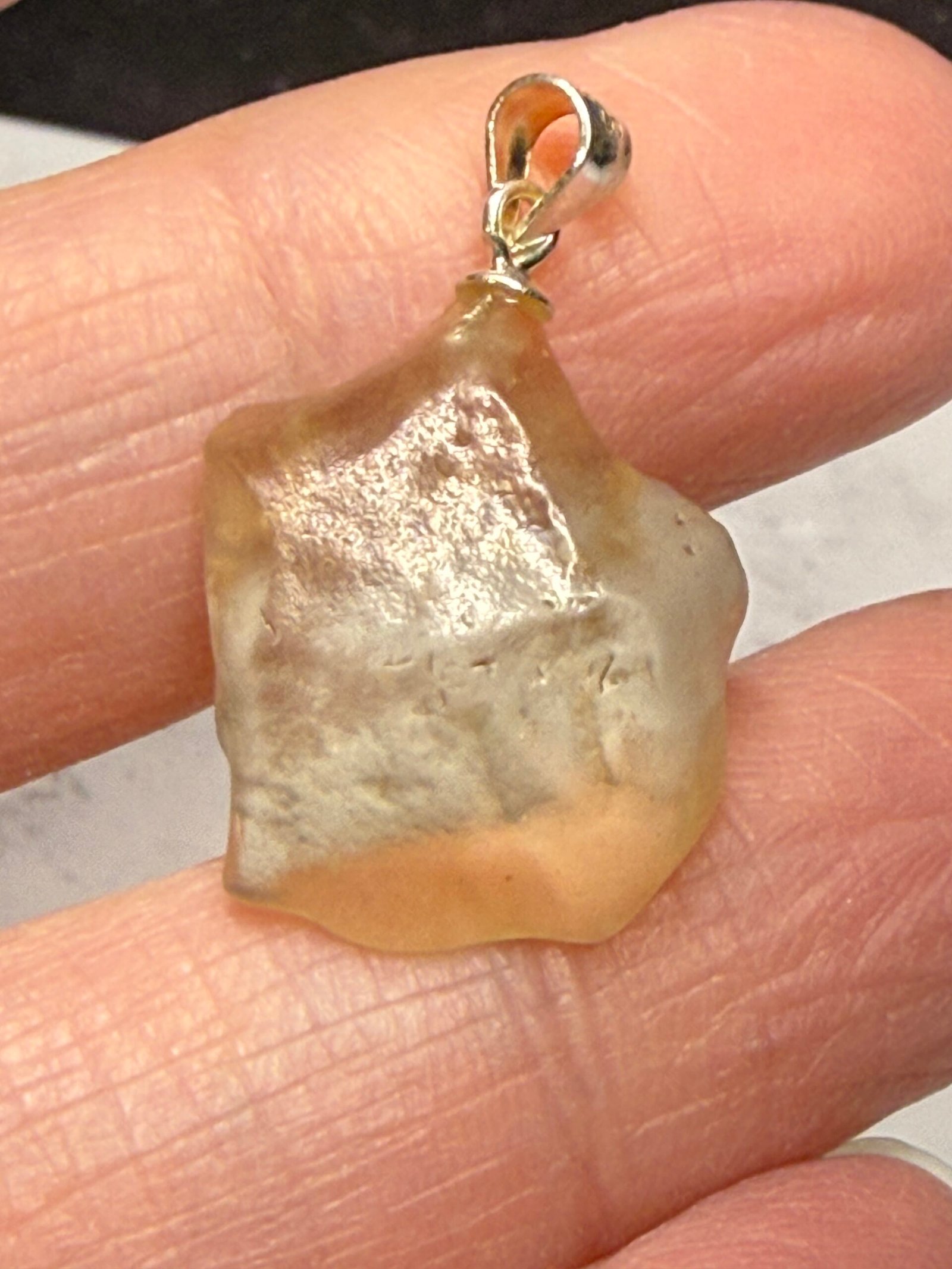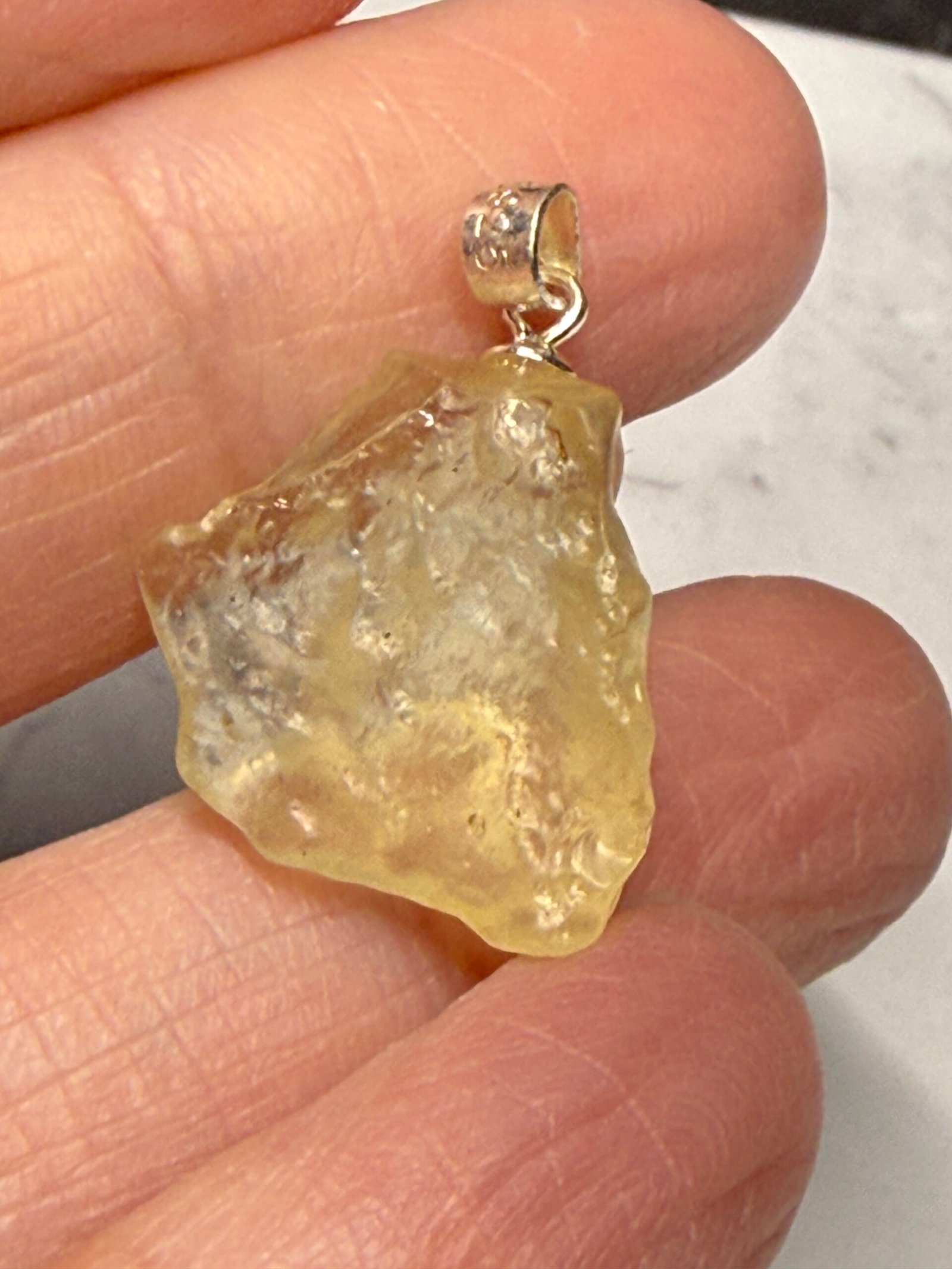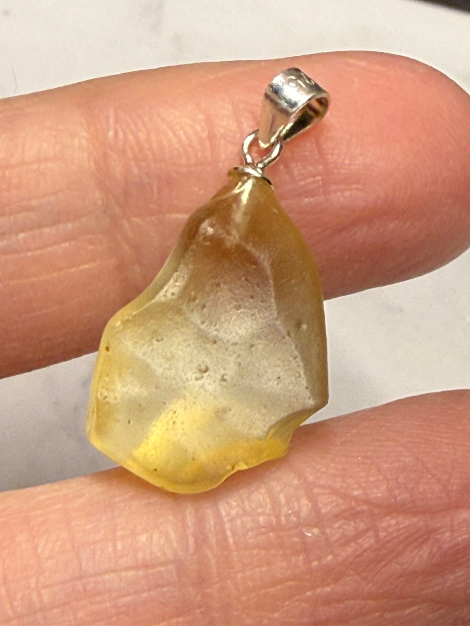 Genuine Libyan Desert Glass pendant with 925 Sterling Silver findings.