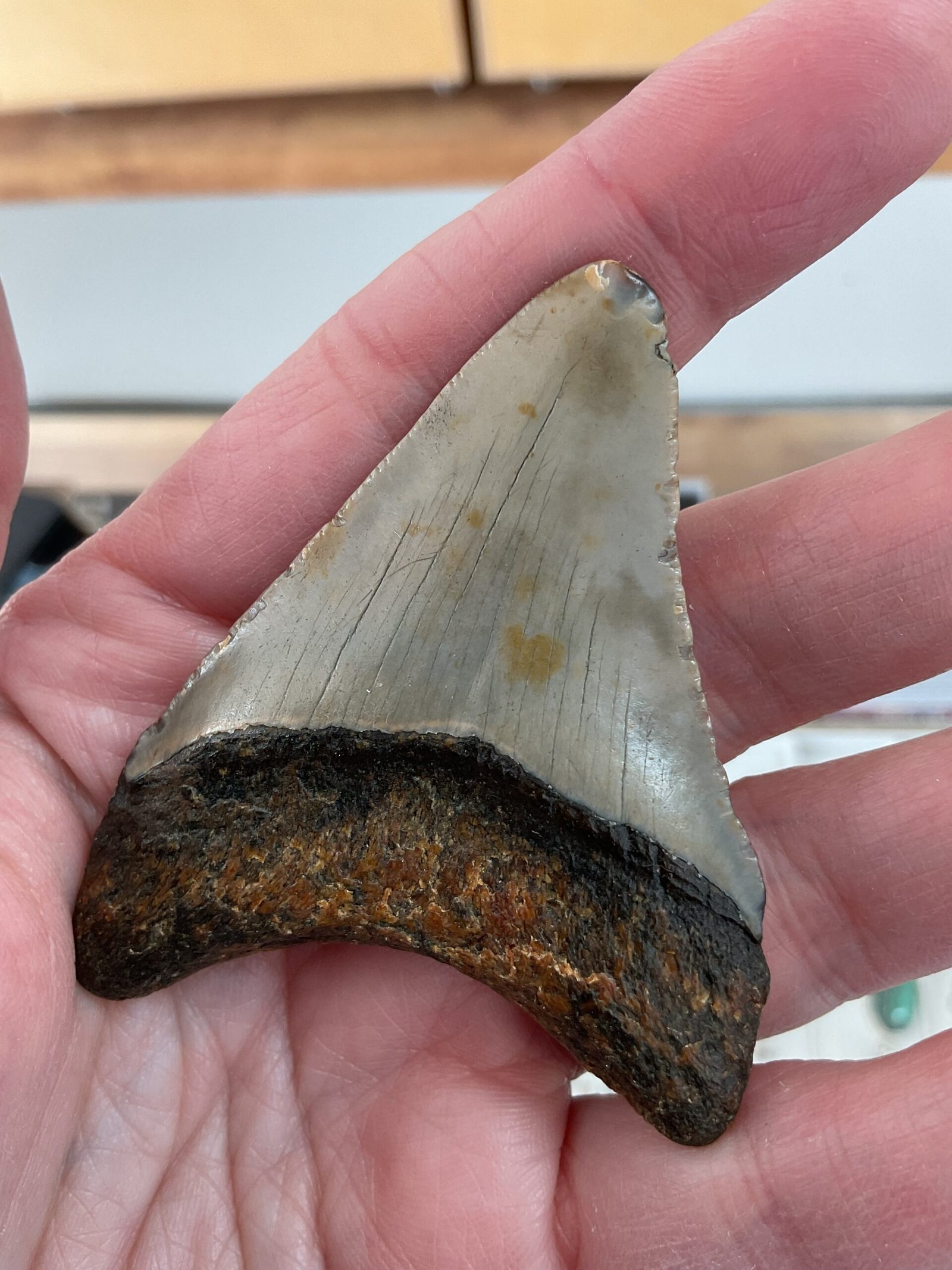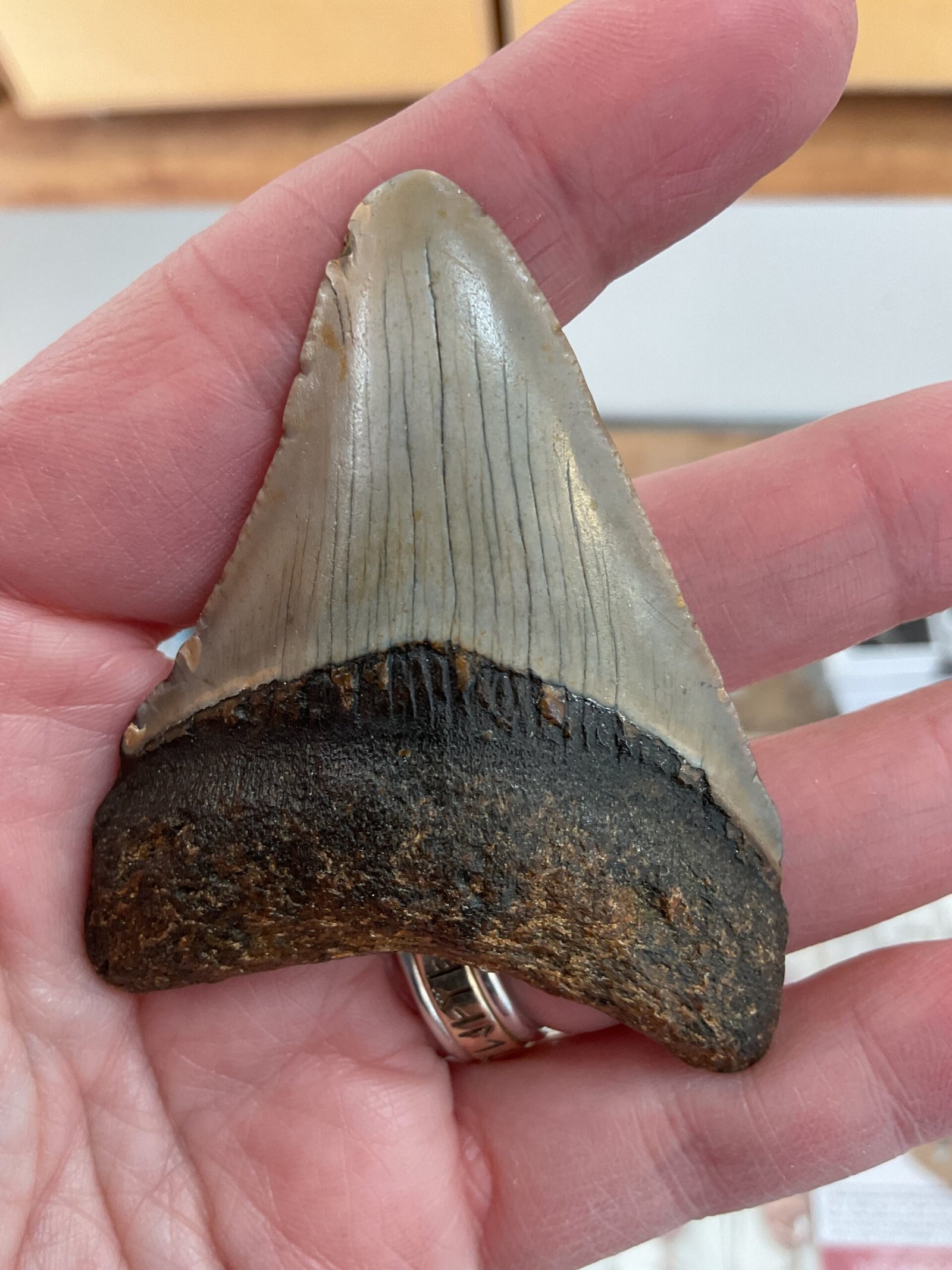 Excellent condition, full tooth with enamel and serration. A great example, perfect for any collector.