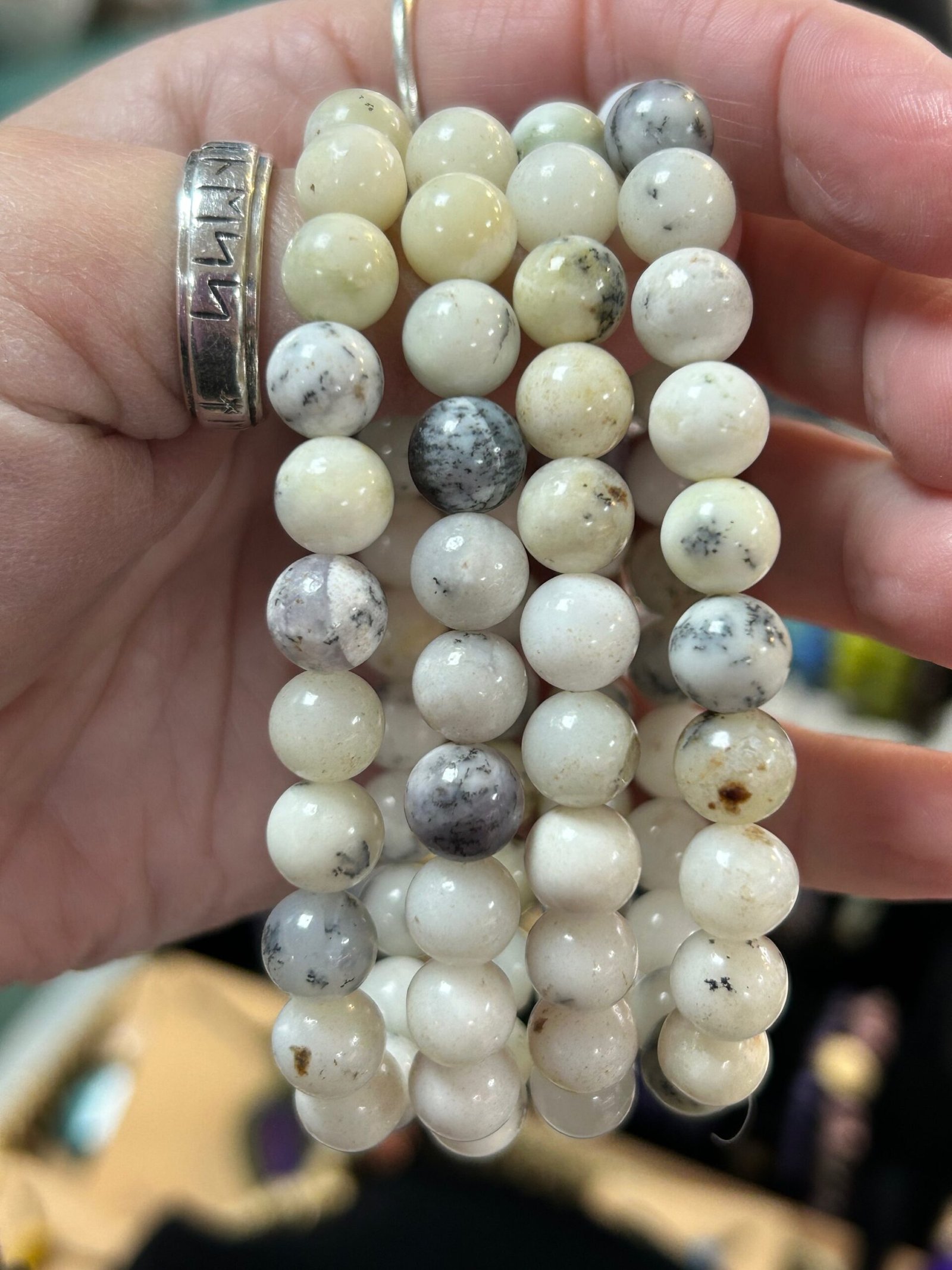 Also know as Dendritic Agate and Dendritic Opal. Merlinite is a combination of opalized agate with small inclusions of dendrites. It gets its name from Merlin, the famous wizard in Arthurian legend.