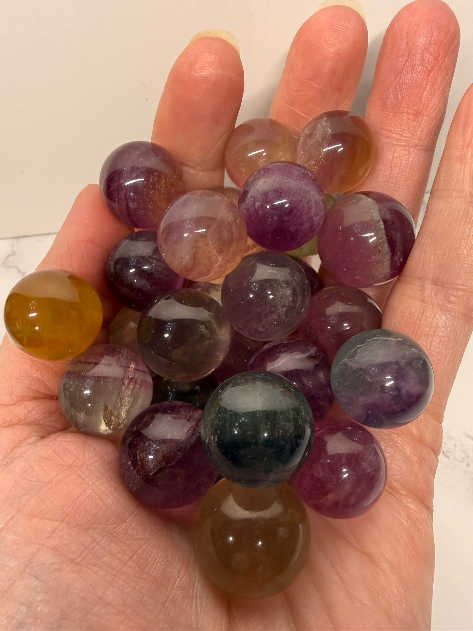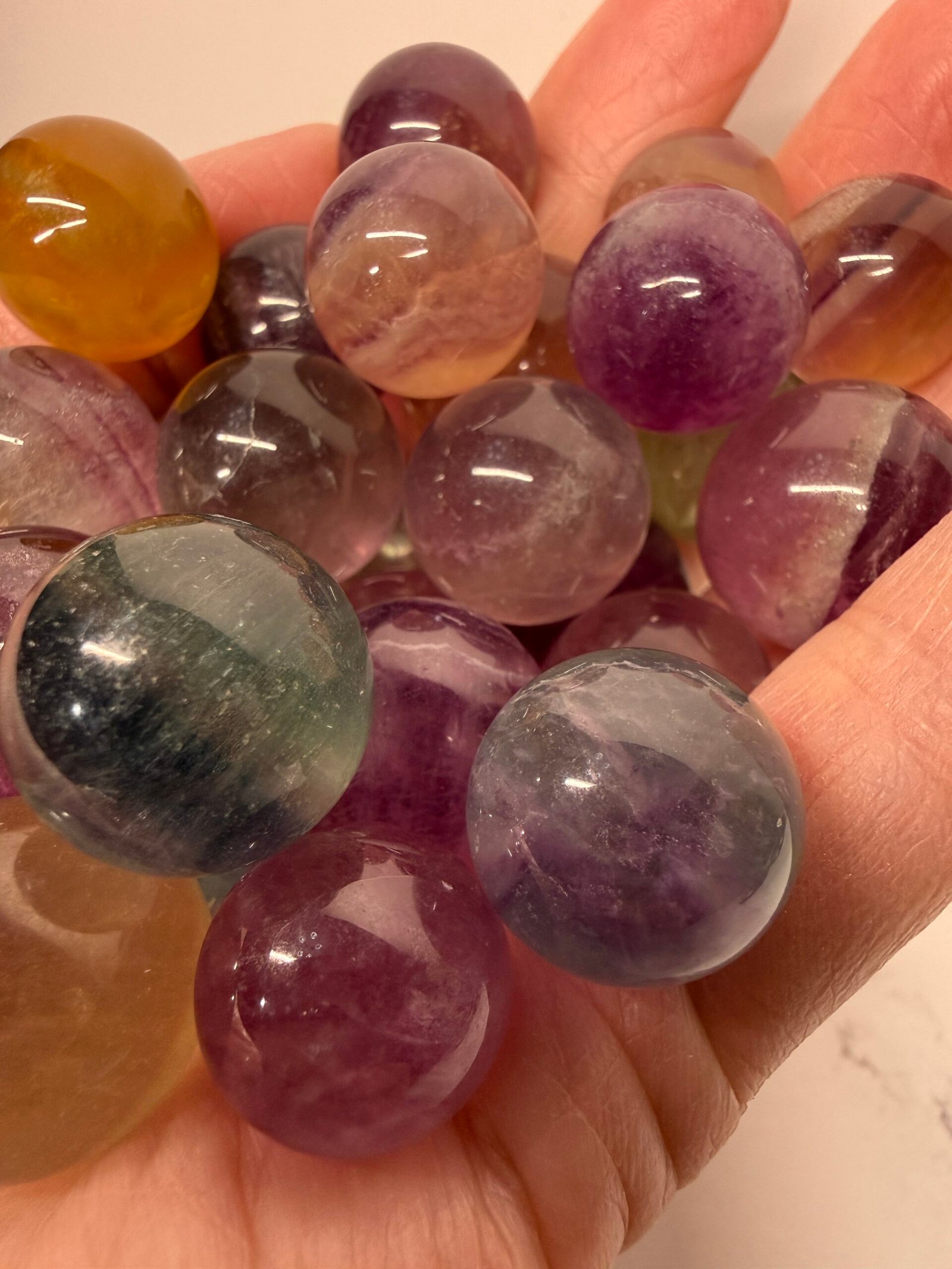 One intuitively chosen mini fluorite sphere. If a particular colour is preferred, you can leave a note on your order or send a message via our contact form.