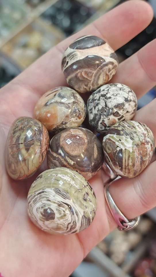 One intuitively chosen tumble stone plus info card..