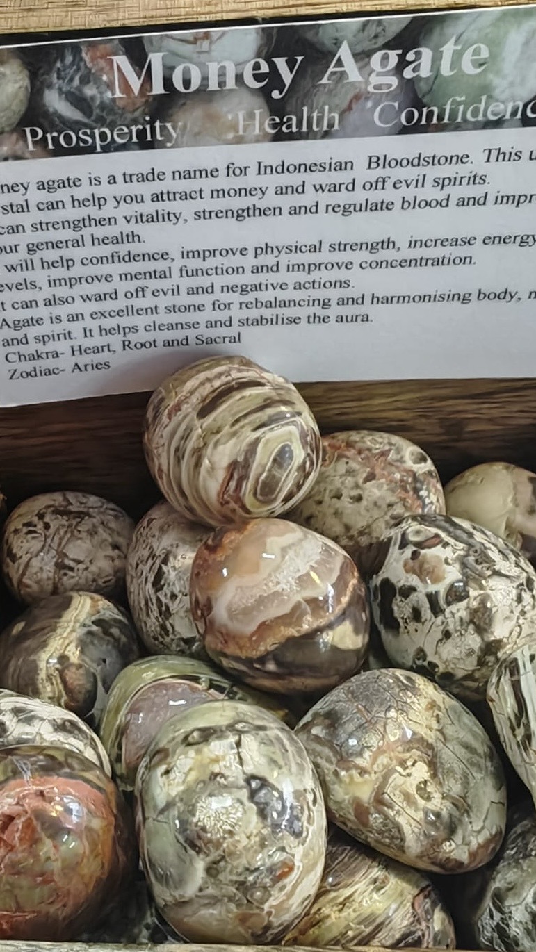 Money agate is a trade name for Indonesian Bloodstone. This unique crystal can help you attract money and ward off evil spirits.