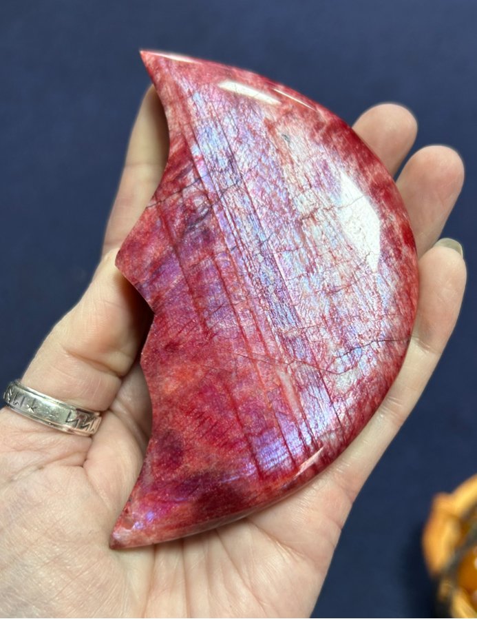 Moonstone is a stone of new beginnings and helps one connect to the energy of the Divine Feminine. It carries a gentle, nurturing vibration and is recommended to be used during pregnancy. It enhances patience for others and improves emotional regulation. It promotes sensitivity and empathy, and is a powerful stone for developing psychic and intuitive awareness. It is also believed to be beneficial in treating PMS symptoms.