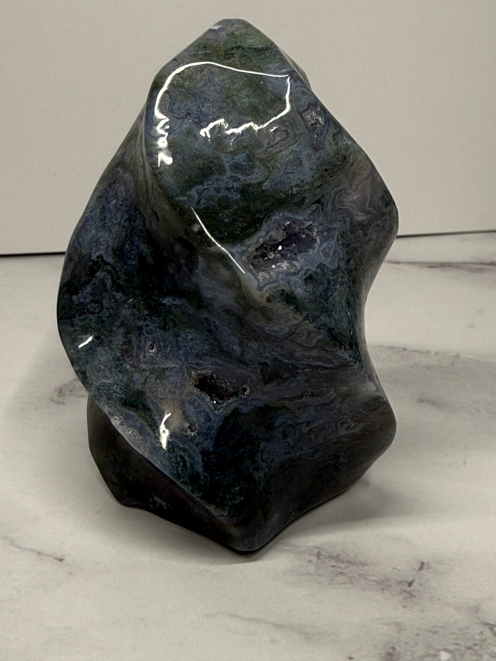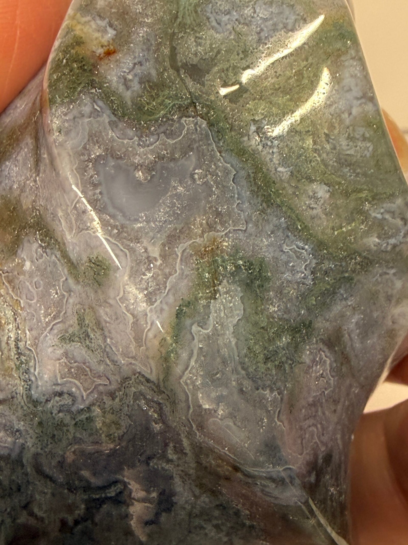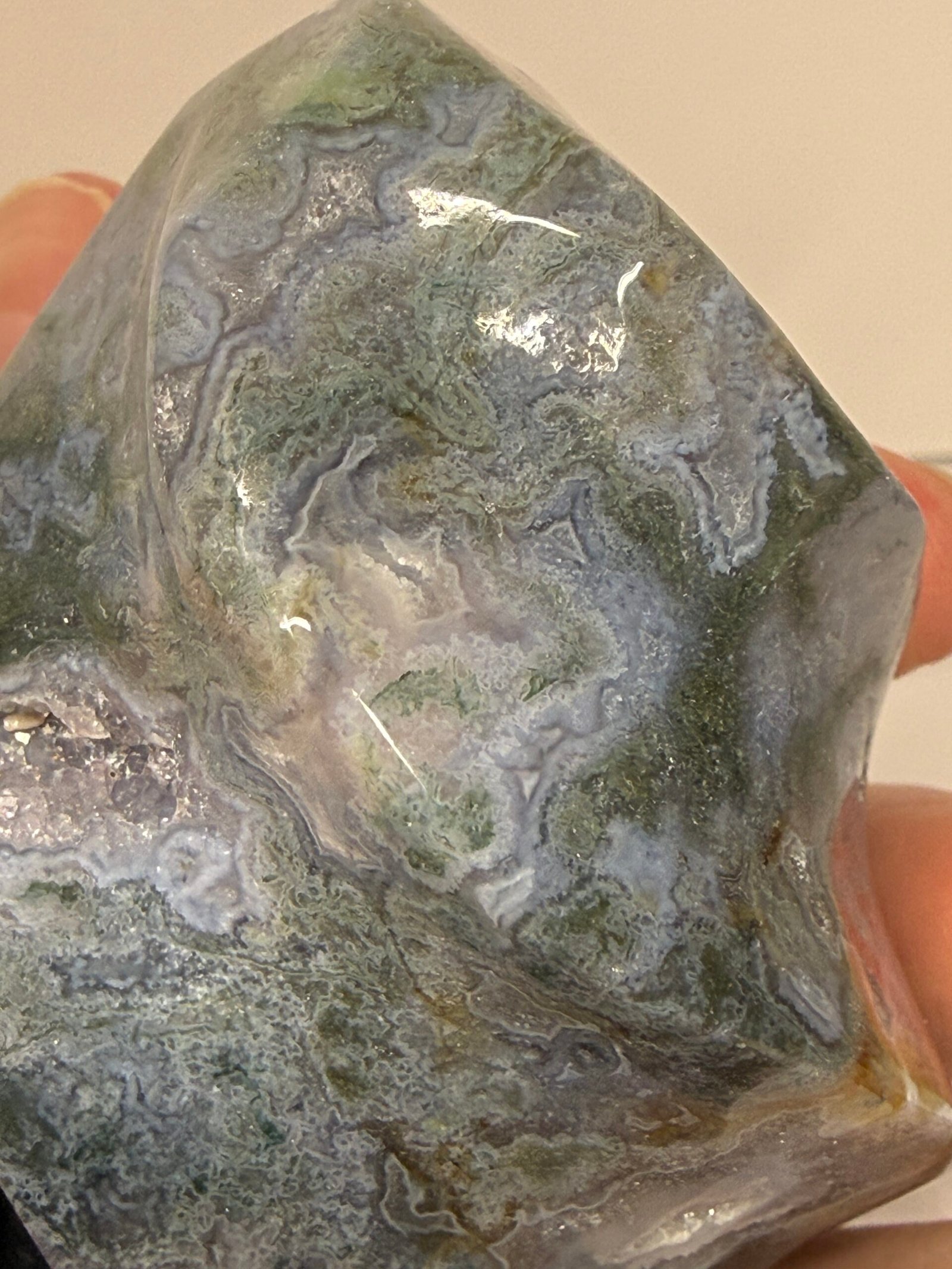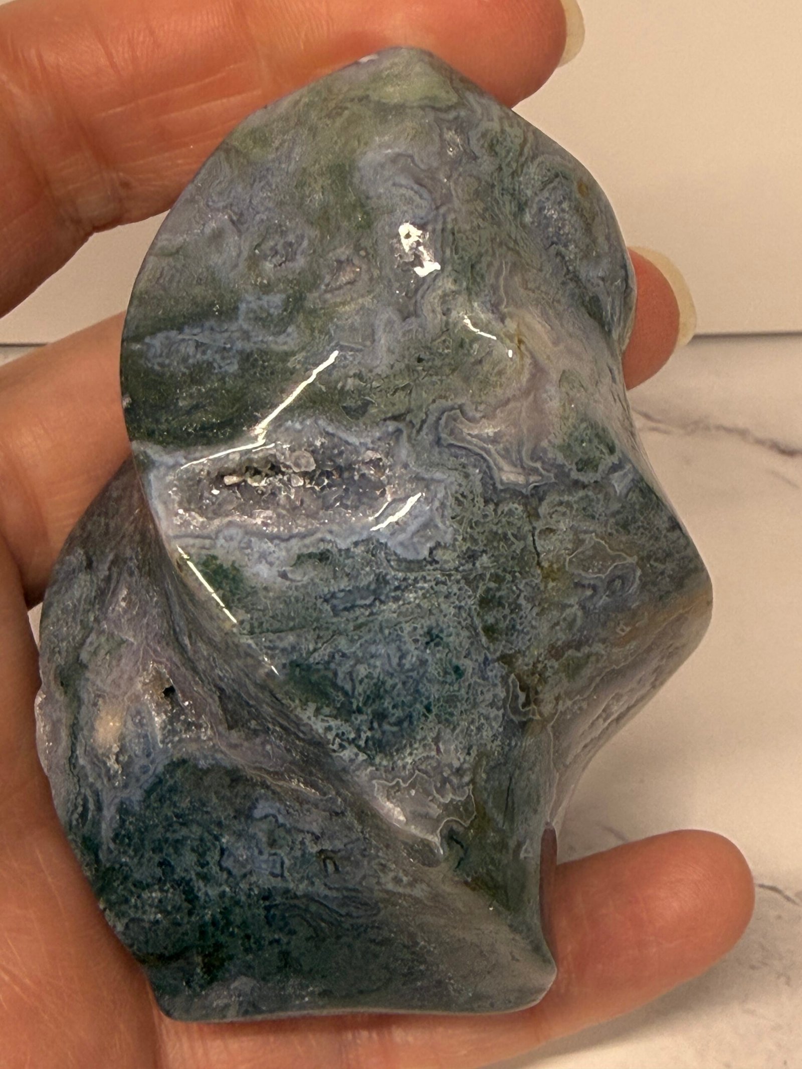 Moss Agate helps correct imbalances between the left and right side of the brain. It boosts mental function and is beneficial for those who lack creativity. It is a powerful aid for those who experience frequent mood swings due to its stabilising properties. It speeds up recovery from illness by strengthening the immune system. It helps one feel secure, safe, and grounded due to its strong connection with Mother Earth.
