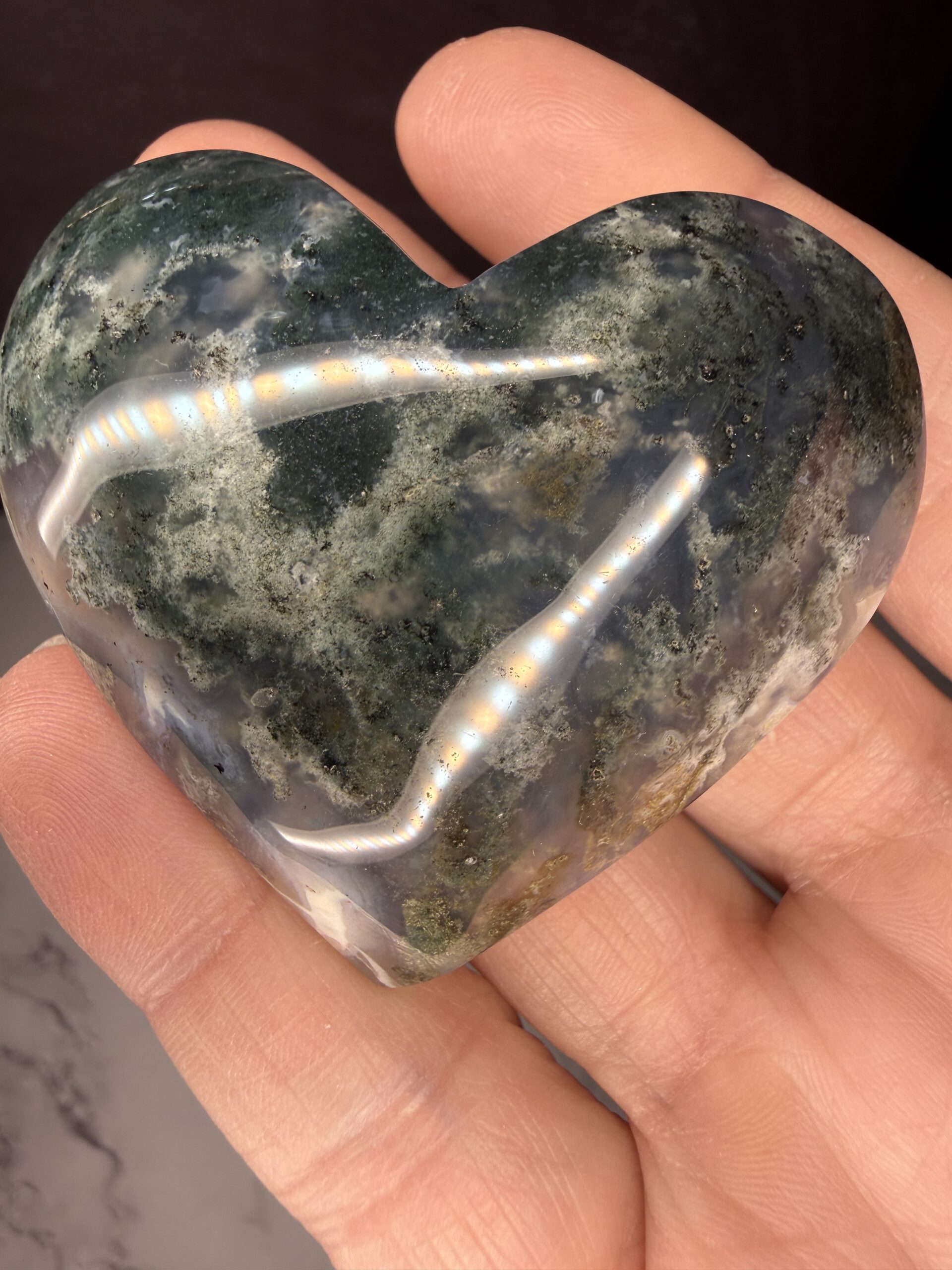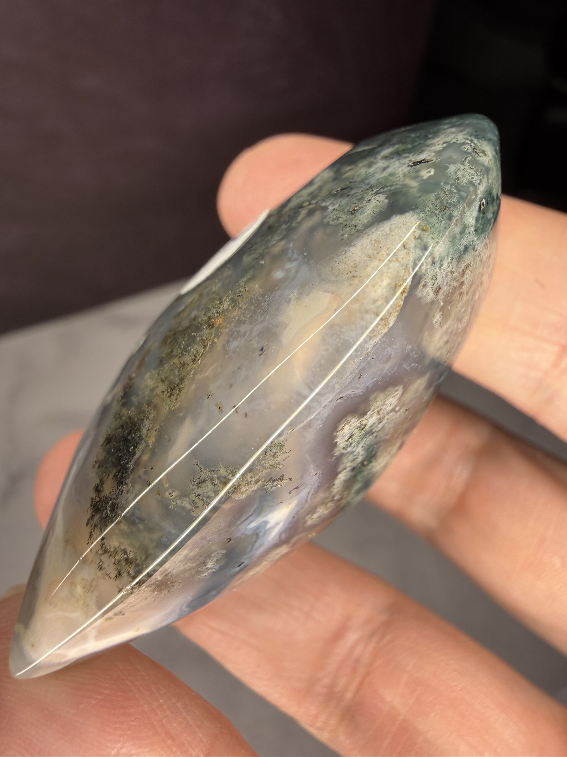 Moss Agate helps correct imbalances between the left and right side of the brain. It boosts mental function and is beneficial for those who lack creativity. It is a powerful aid for those who experience frequent mood swings due to its stabilising properties. It speeds up recovery from illness by strengthening the immune system. It helps one feel secure, safe, and grounded due to its strong connection with Mother Earth.