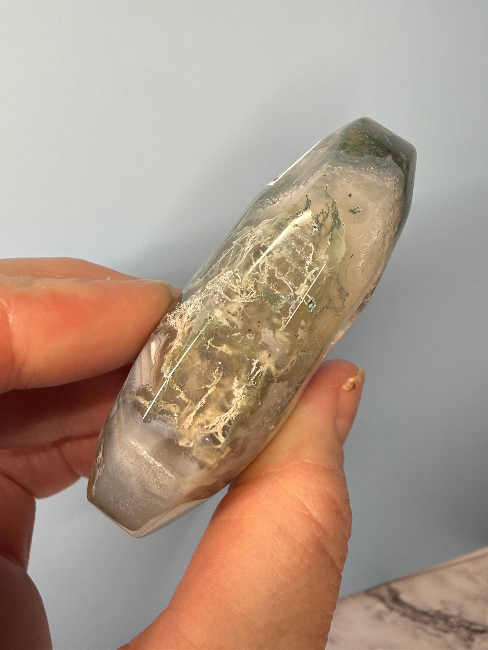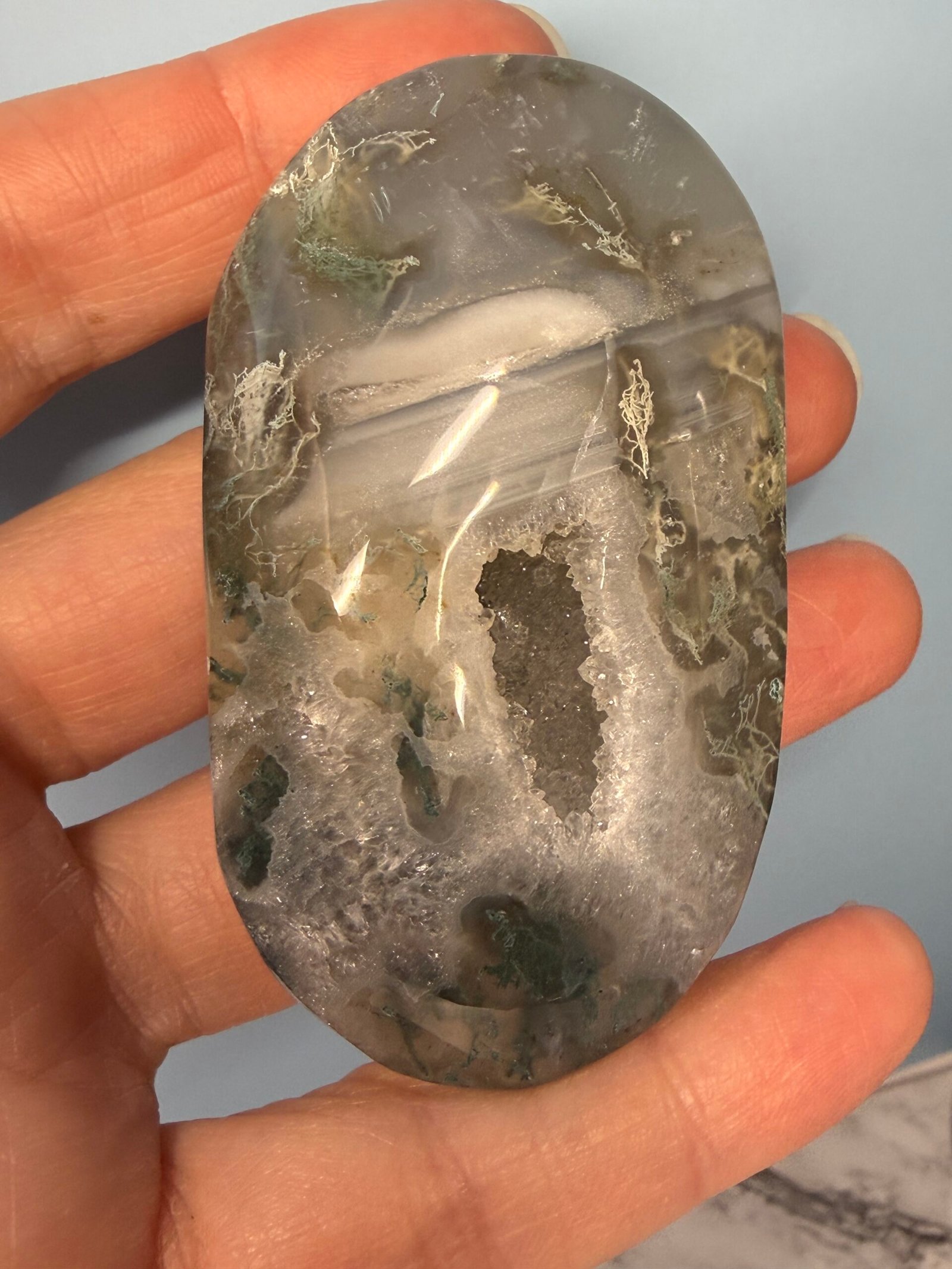 Moss Agate helps correct imbalances between the left and right side of the brain. It boosts mental function and is beneficial for those who lack creativity. It is a powerful aid for those who experience frequent mood swings due to its stabilising properties. It speeds up recovery from illness by strengthening the immune system. It helps one feel secure, safe, and grounded due to its strong connection with Mother Earth.