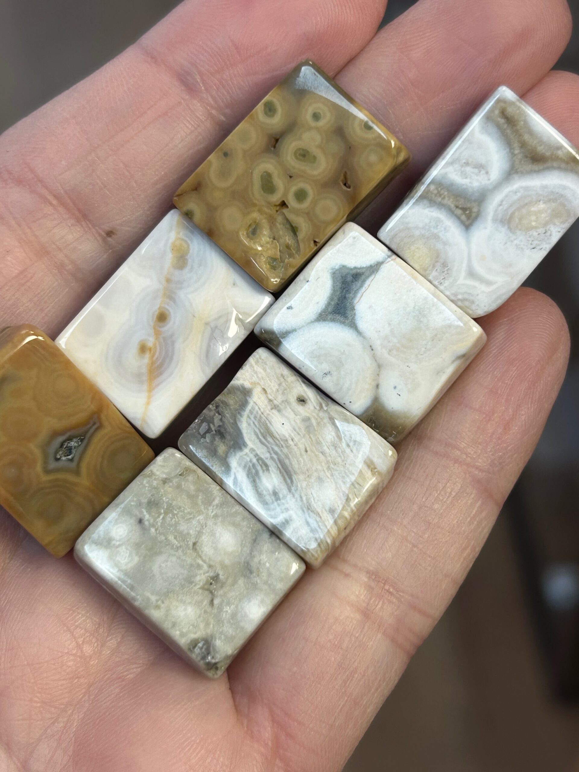 These are wonderfully patterned orbicular ocean Jasper tiles.