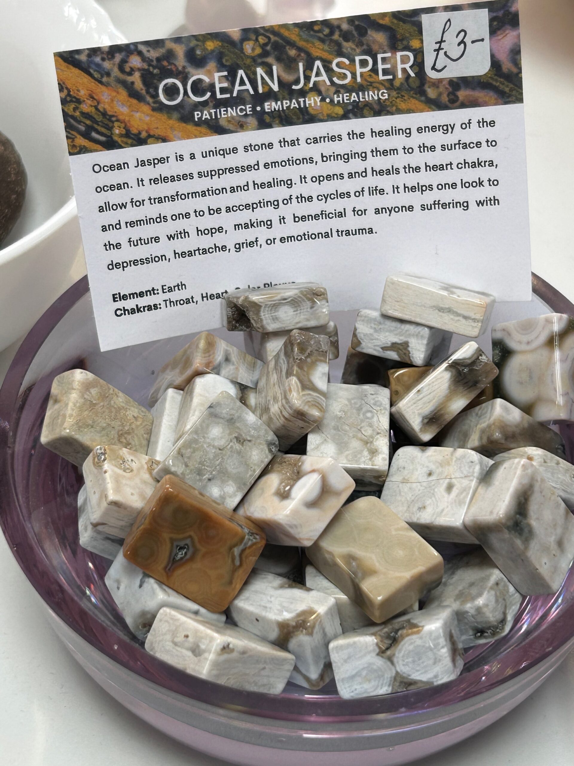 Ocean Jasper is a unique stone that carries the healing energy of the ocean. It releases suppressed emotions, bringing them to the surface to allow for transformation and healing. It opens and heals the heart chakra, and reminds one to be accepting of the cycles of life. It helps one look to the future with hope, making it beneficial for anyone suffering with depression, heartache, grief, or emotional trauma.