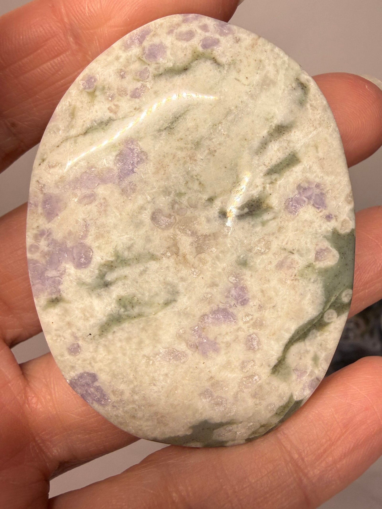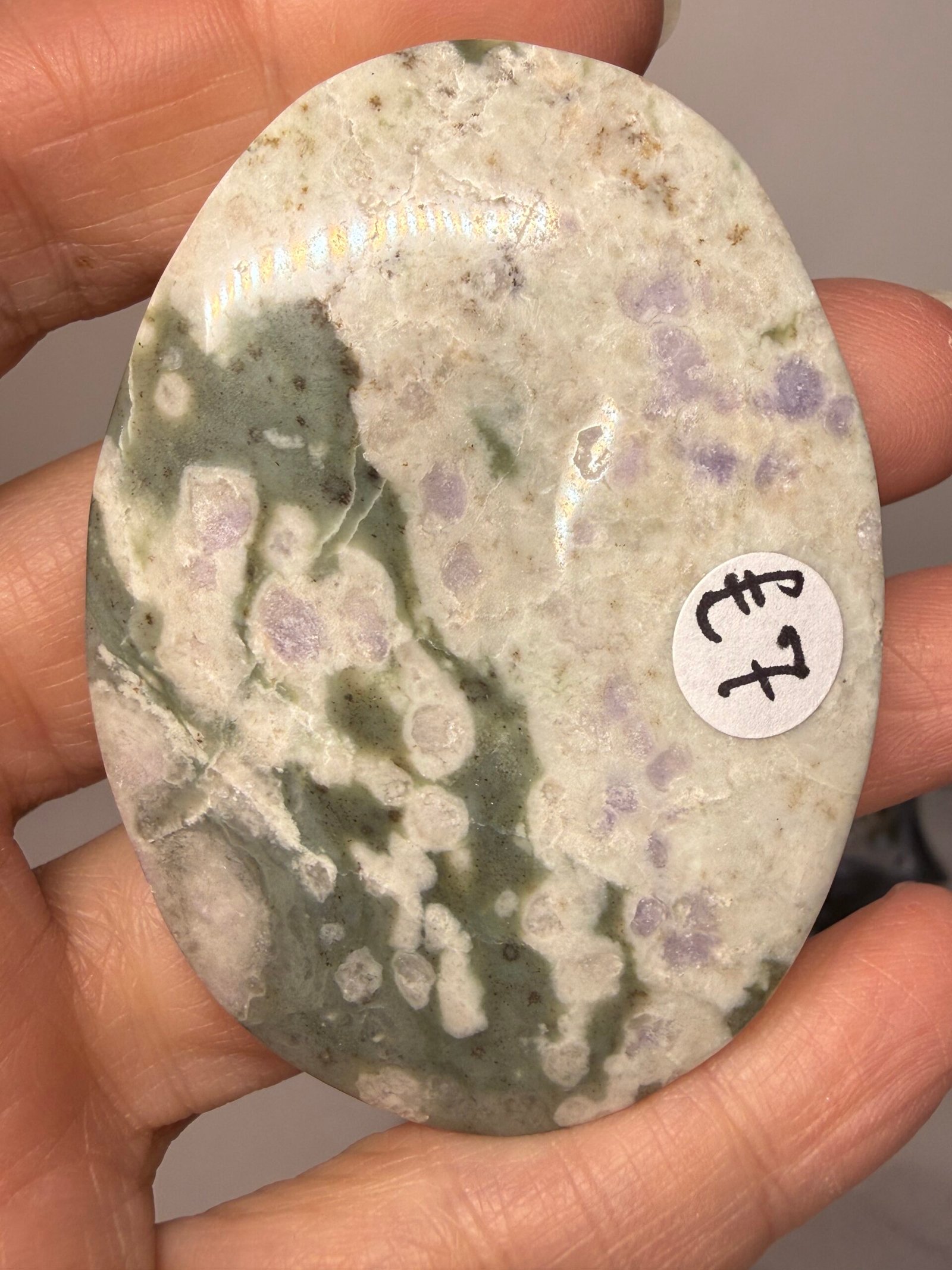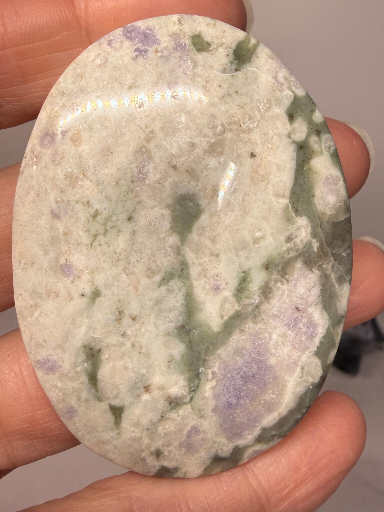 ‘Peace Jade’ is a name given to a combination of white Quartz, green serpentine and lavender stichtite and not a true Jade.