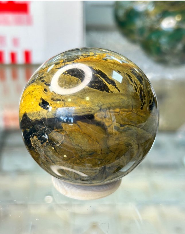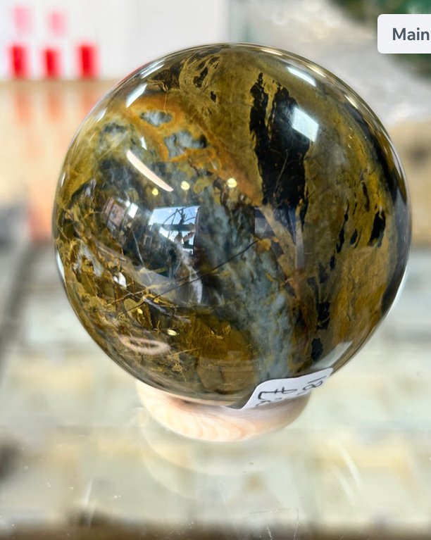 This high quality Pietersite sphere has a stunning blue chatoyancy.
