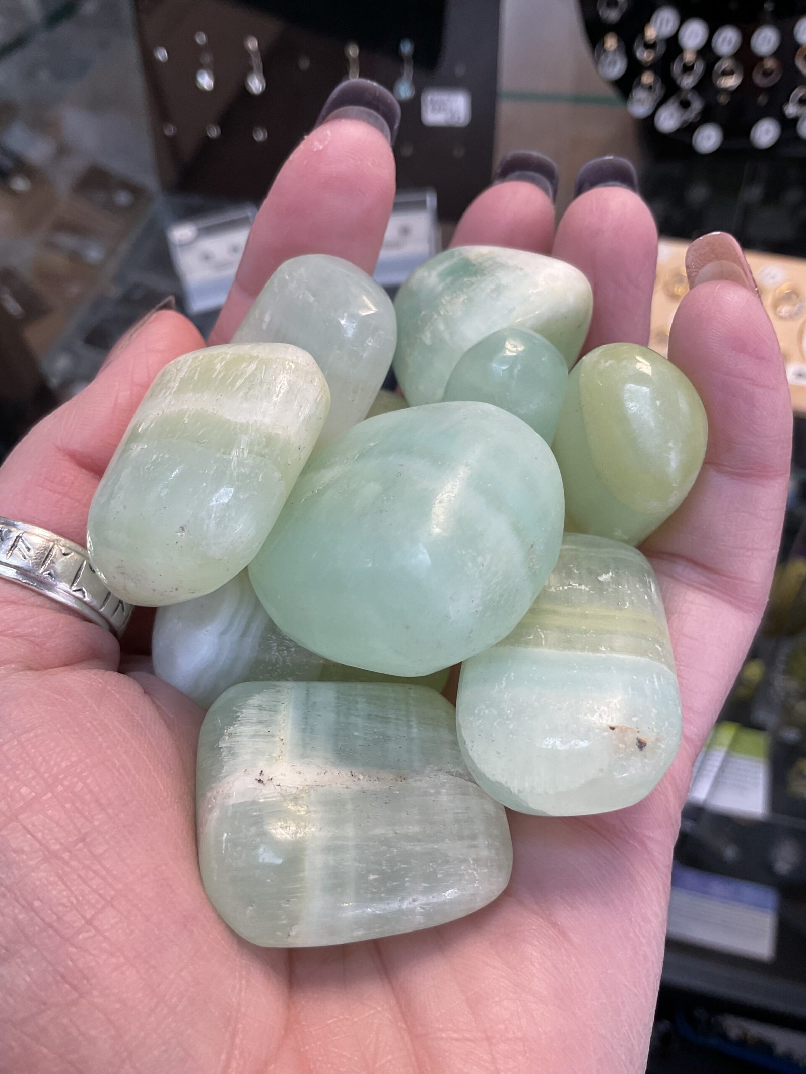 Pistachio calcite, a variety of green calcite which radiates peace, brings relaxation, and promotes compassion and altruism. Pistachio calcite is a master healer and stimulates the healing ability of the physical body. Provides healing energy, removing negativity and detoxes your heart space to allow for inner peace. Calming and centering it relieves worry and fear, and assists in overcoming emotional trauma. Pistachio calcite welcomes positive, harmonious changes and helps balance emotions. A crystal for transformation.