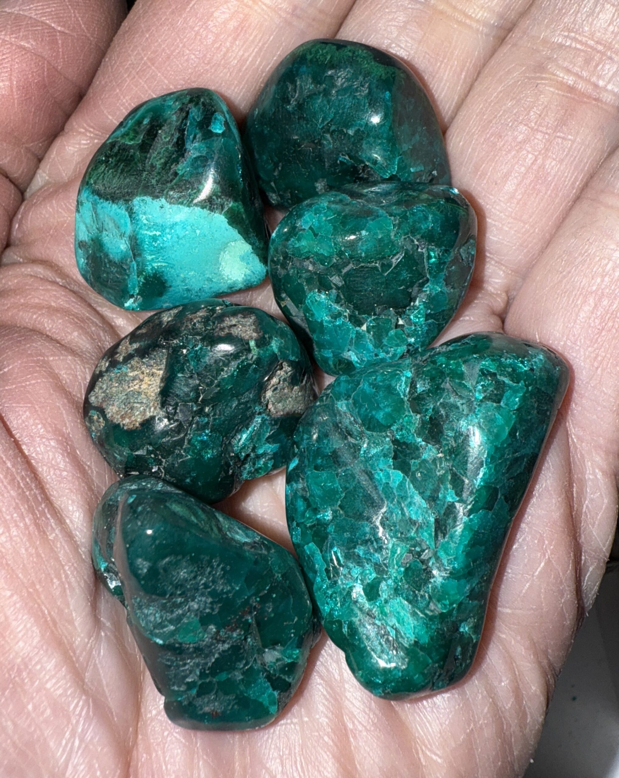 Rare Dioptase polished small freeforms (tumble stone size) from Likasi, Congo