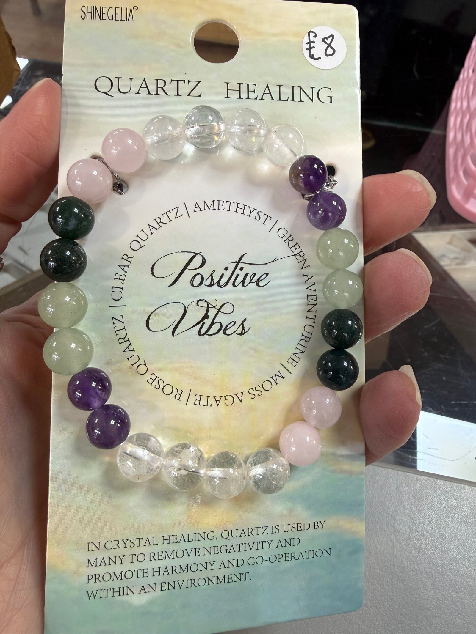 One intuitively chosen bracelet With Clear Quart, Amethyst, Green Aventurine, Moss Agate & Rose Quartz