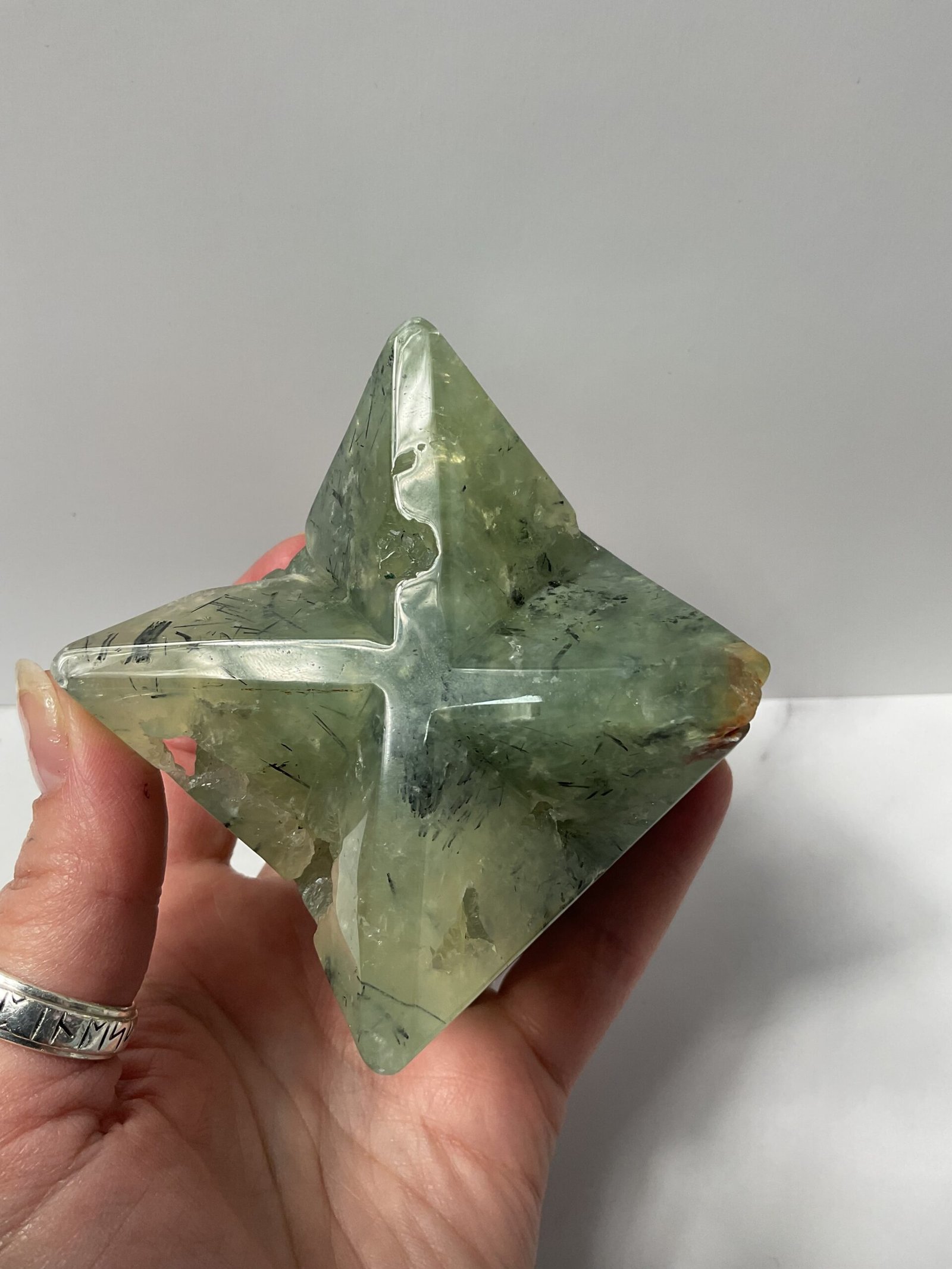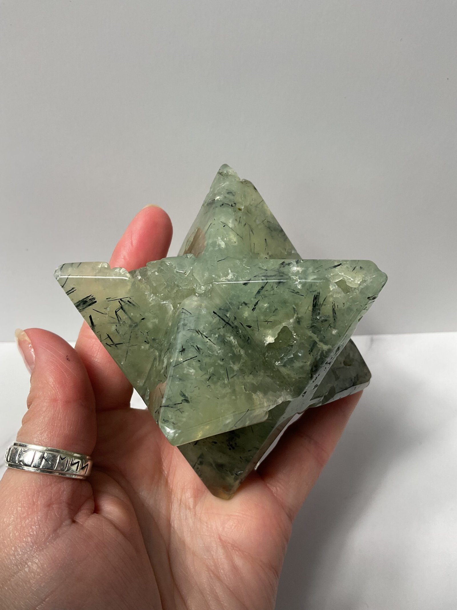 Prehnite promotes lucid dreaming and aids in dream interpretation. It induces a deep meditative state and facilitates communication with angels, spirit guides, and our higher self. It encourages one to have faith in the Universe and trust in the Divine timing of their life. It eases restlessness and grounds nervous energy. It is believed to be an effective stone in treating symptoms of OCD and Seasonal Affective Disorder.