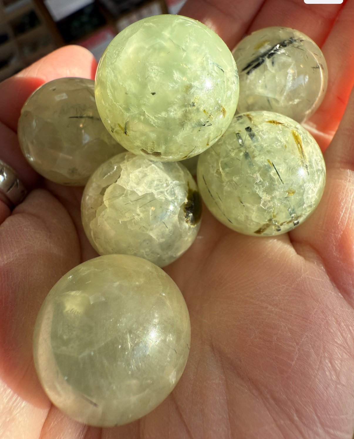 Dimensions – approx 20-23mm One intuitively chosen mini Prehnite sphere plus info card.