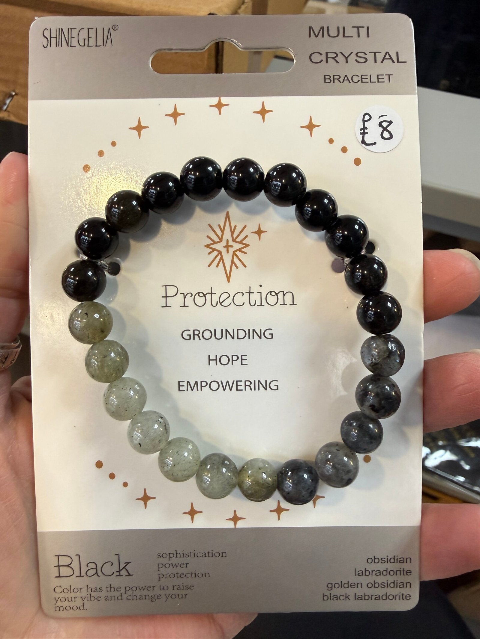 With obsidian, labradorite, golden obsidian & larvikite (bracelet packaging has this labelled as black labradorite).