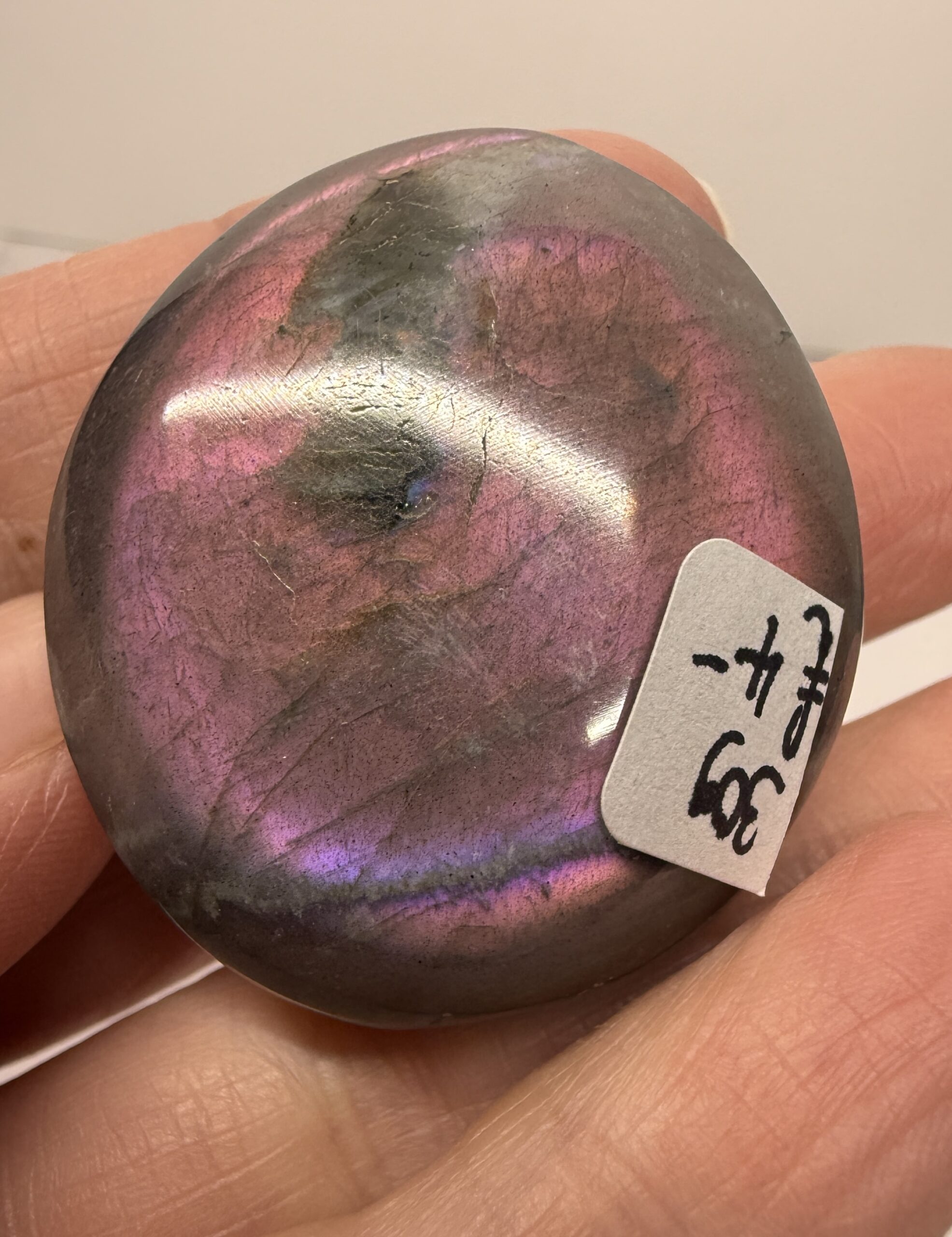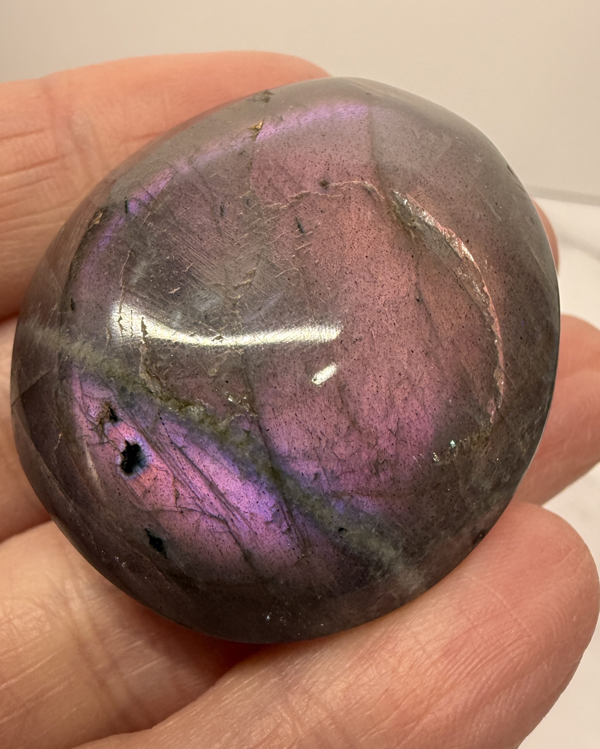 Beautiful pinky purple flash labradorite small palm stone.