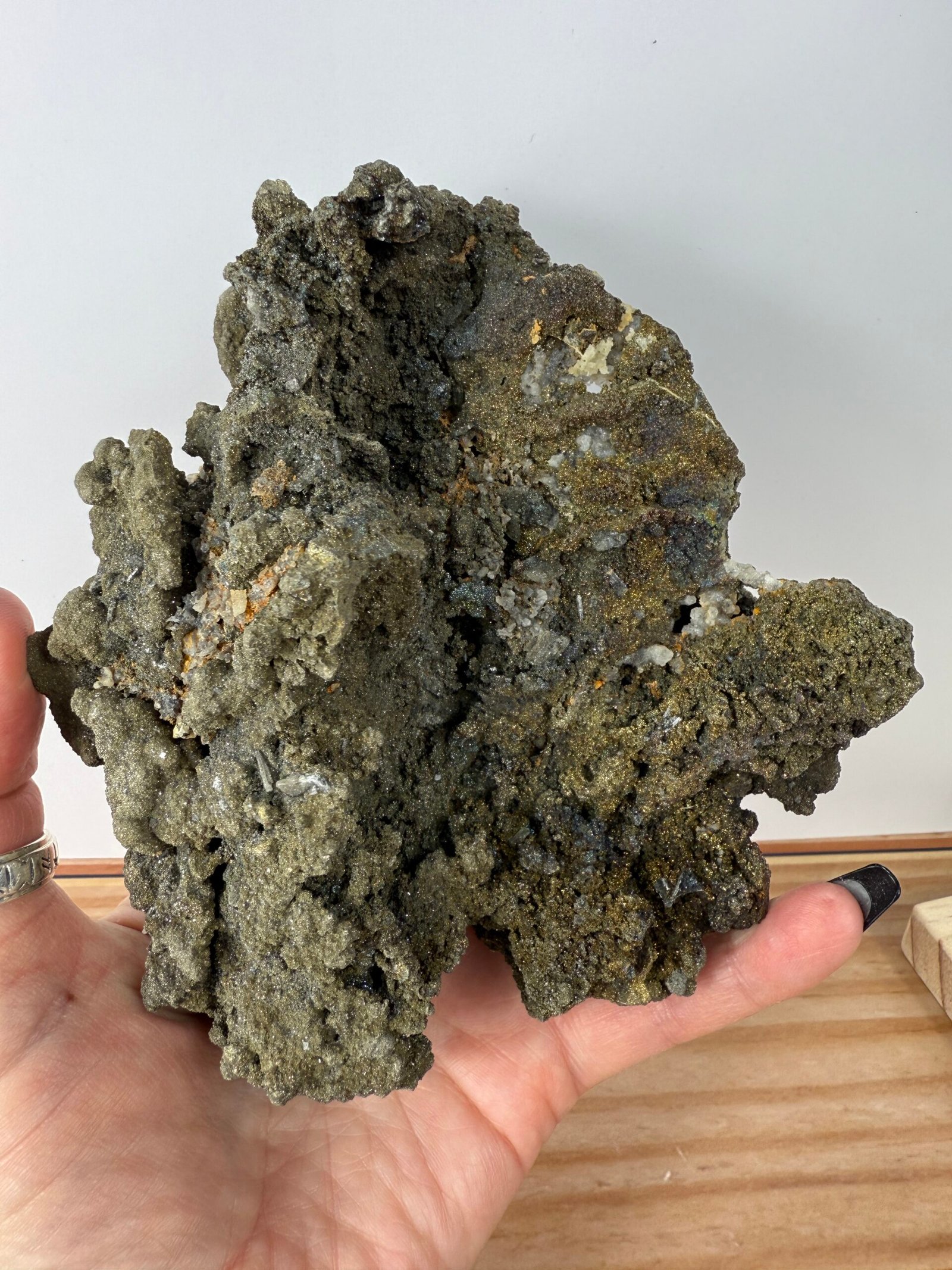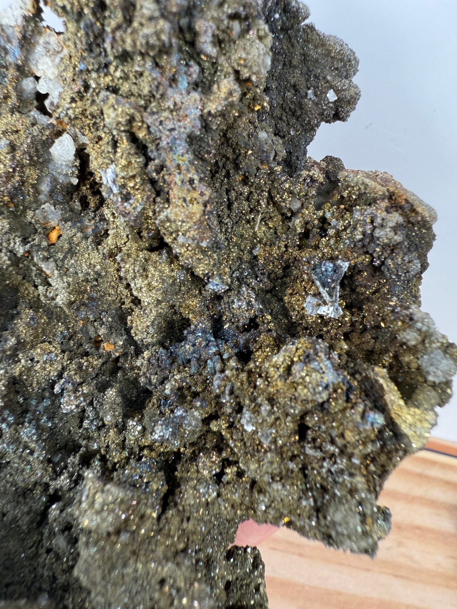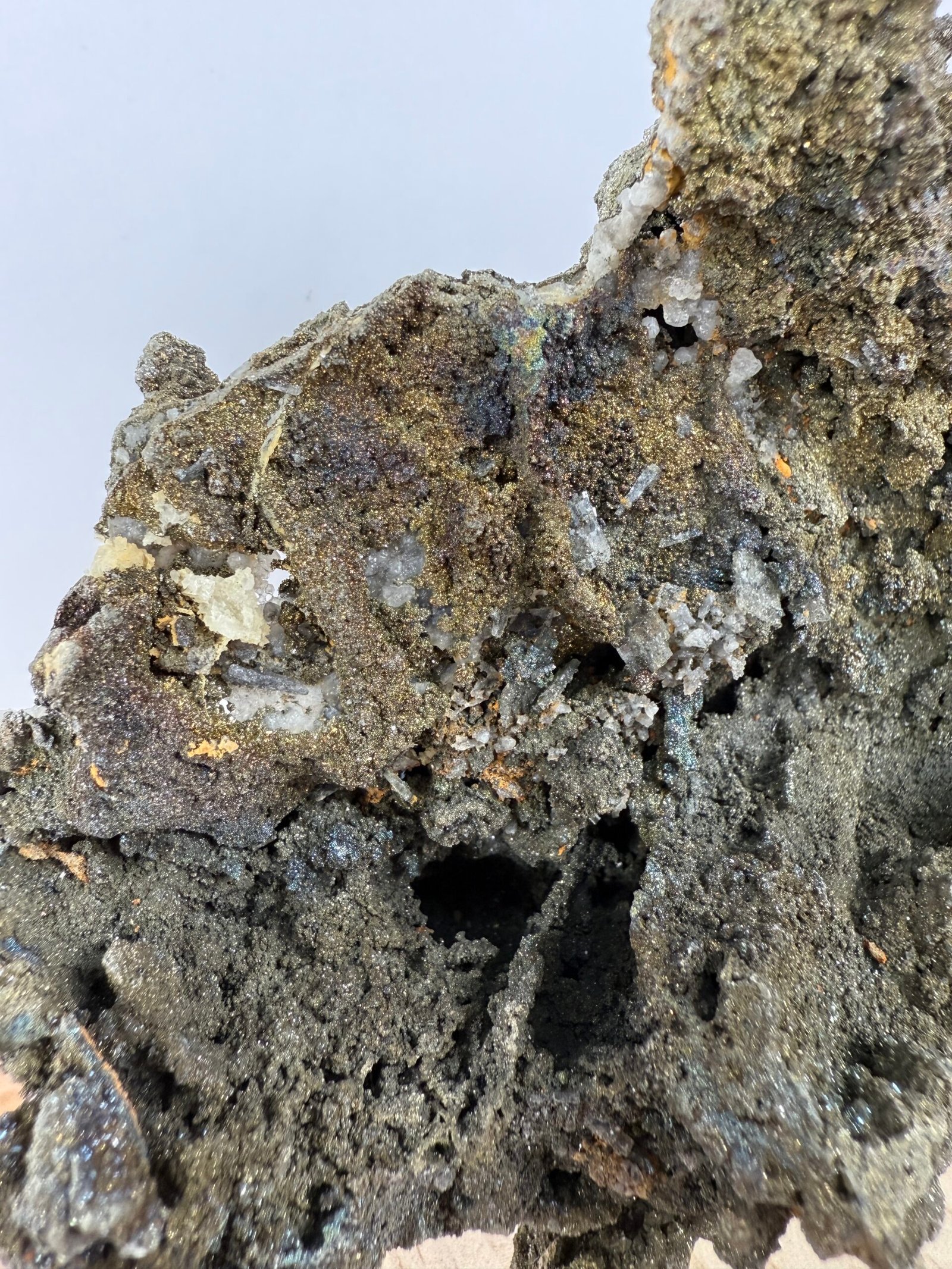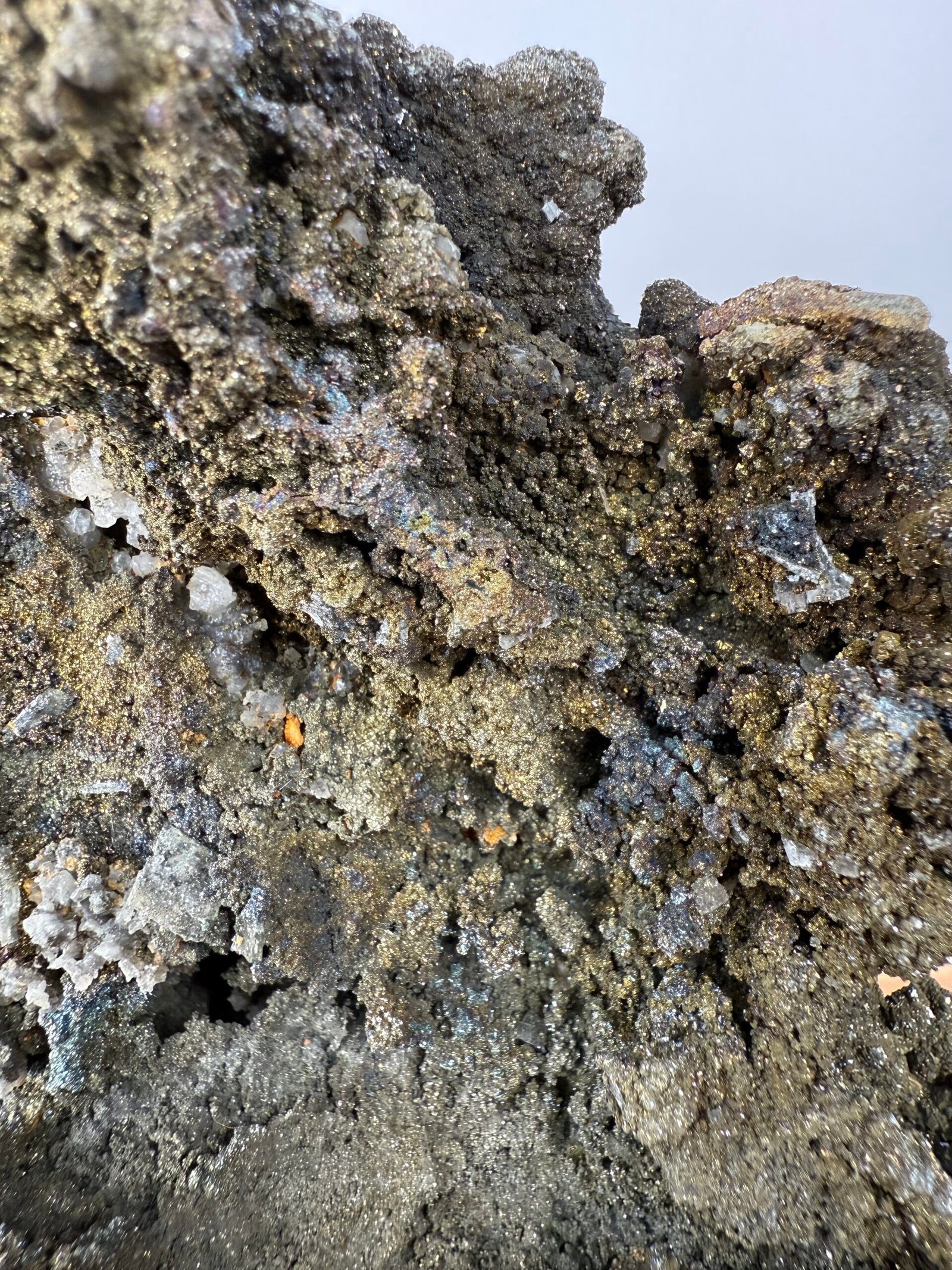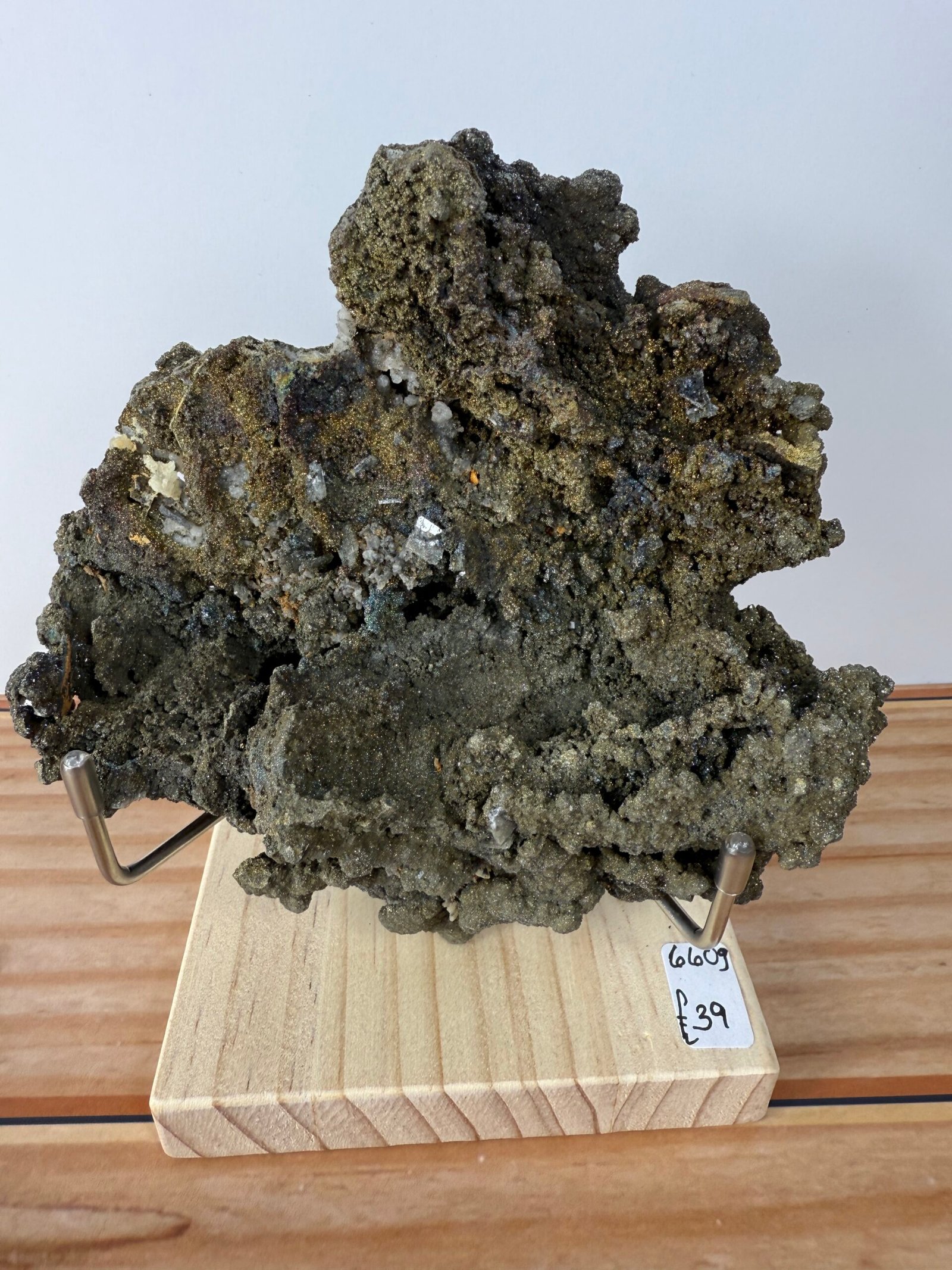 A beautiful and unusual specimen of Pyrite and Chalcopyrite on Calcite from China.