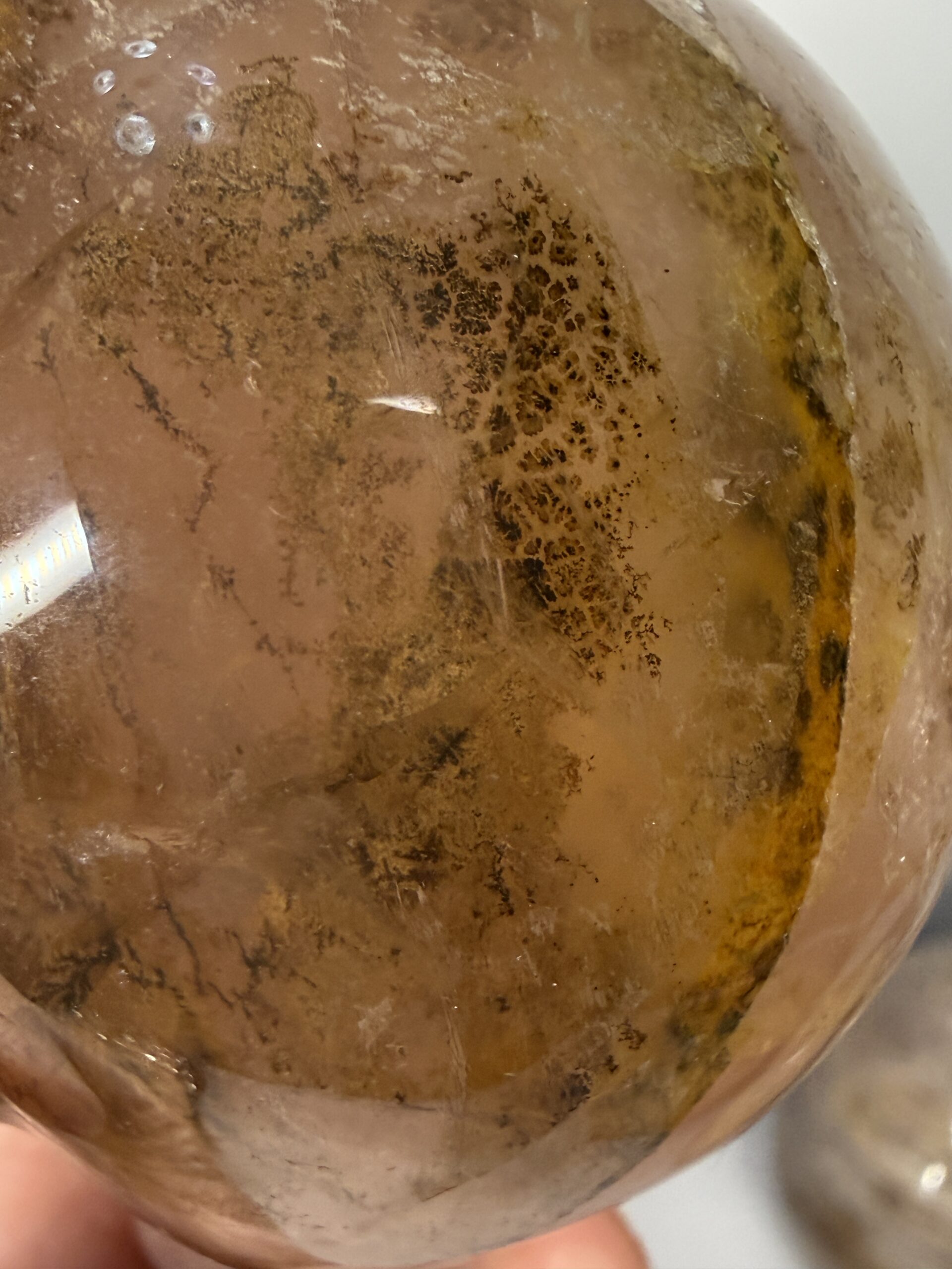Dendritic Golden Healer in Rose Quartz is a rare, beautiful crystal combining the heart-healing energies of Rose Quartz with the high-vibration, spiritual connection of Golden Healer Quartz, featuring black or brown fern-like dendrite-patterns (manganese/iron) for profound emotional balance, abundance, and divine connection, often found in Madagascar. This unique blend offers deep self-love and spiritual growth, appearing as light pink quartz with golden hues and dark dendritic inclusions