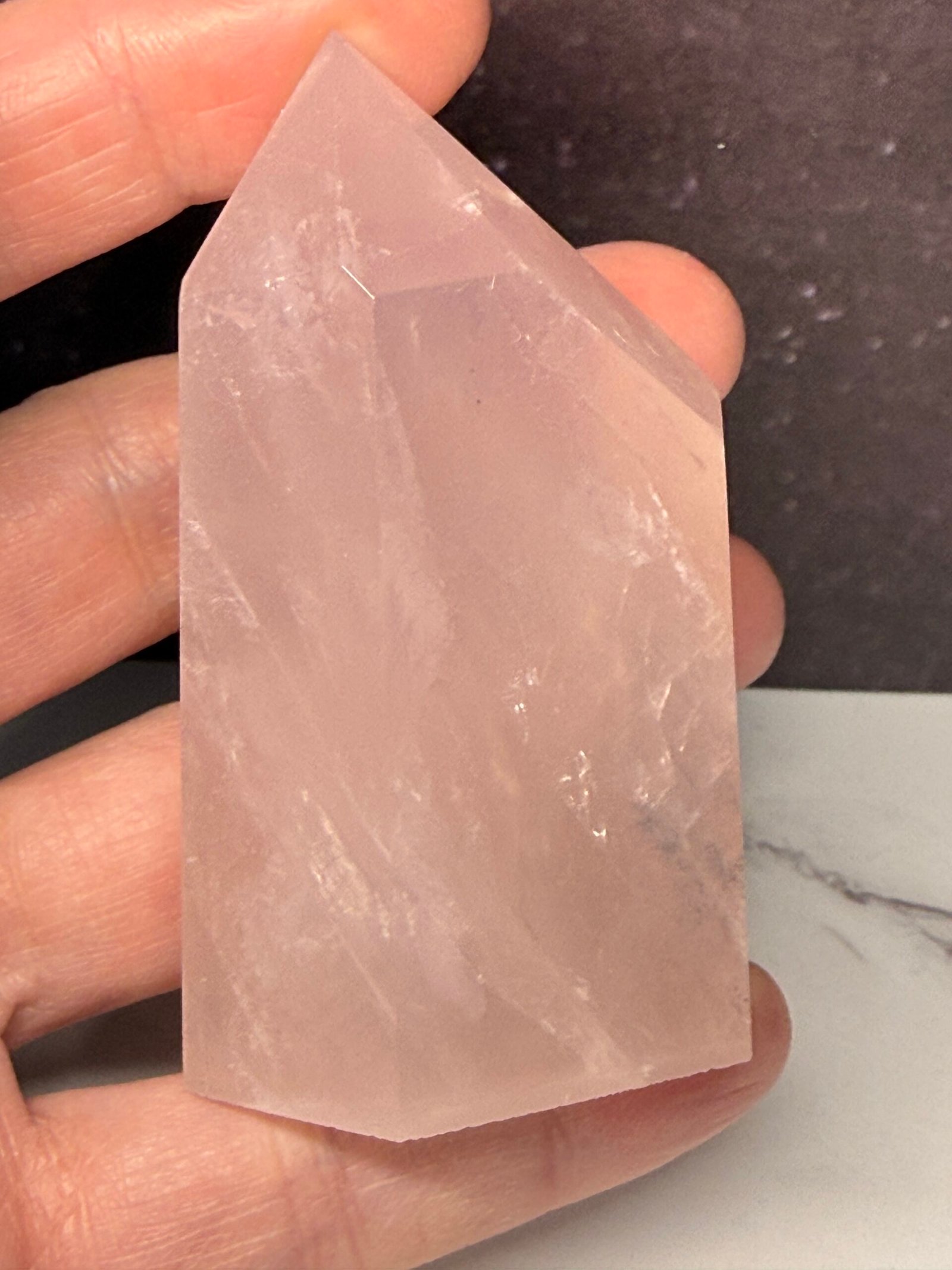 Rose Quartz is a stone of unconditional love that carries a soft, feminine energy. It opens and cleanses the heart chakra, allowing vibrations of love to flow freely and without fear. It promotes healthy and harmonious relationships of all kinds, and can be effective for attracting new love. It