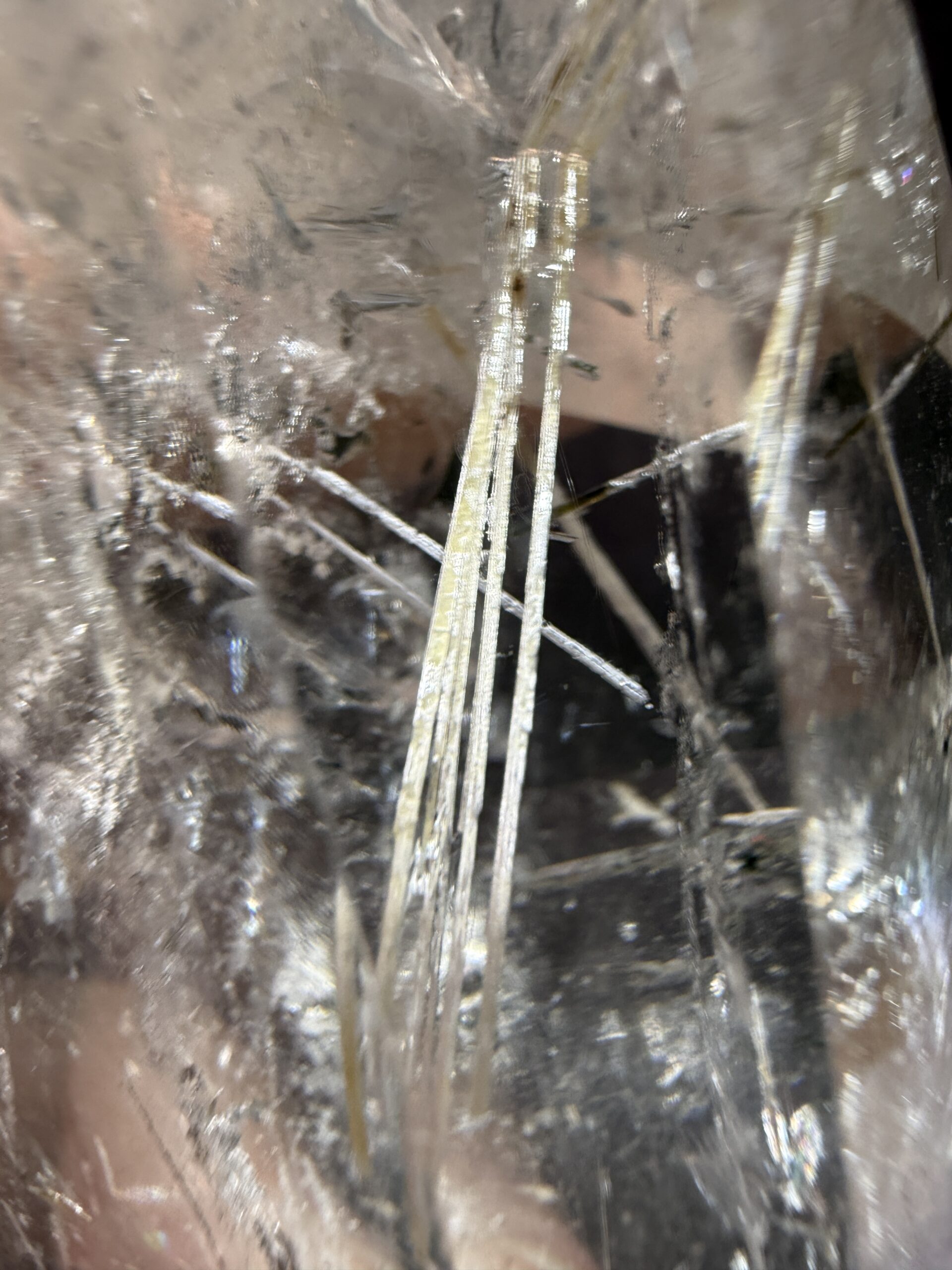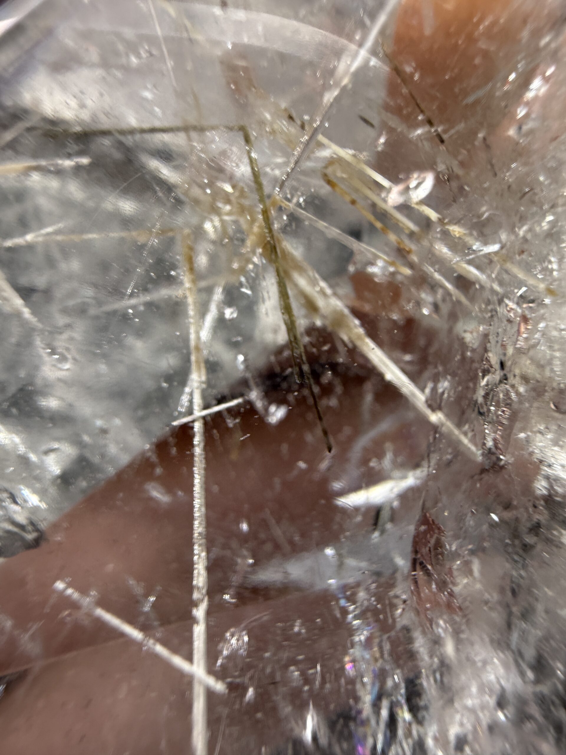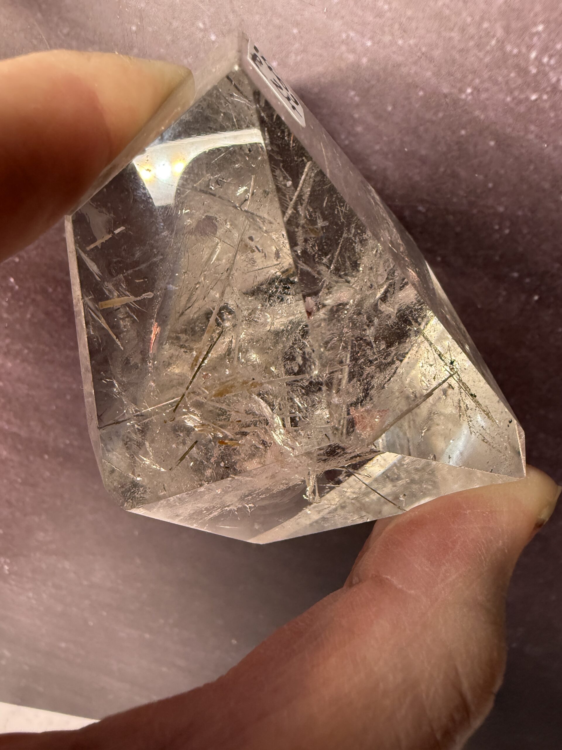 This beautifully clear Quartz Freeform has unusual white rutile inclusions.