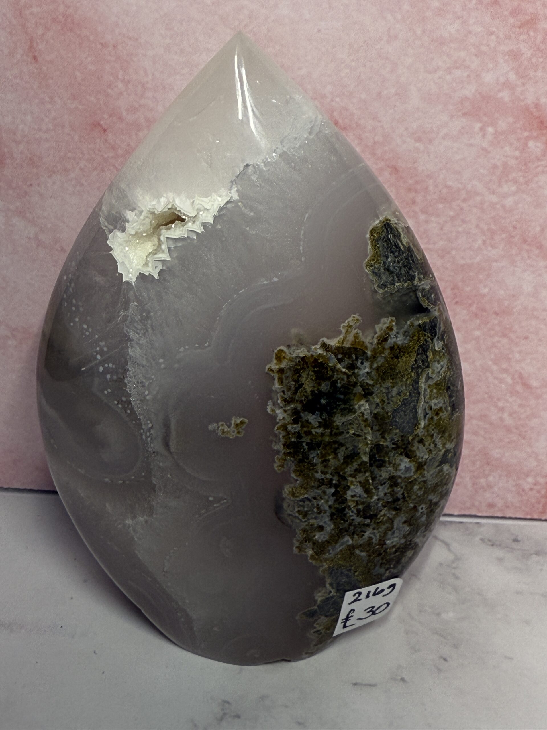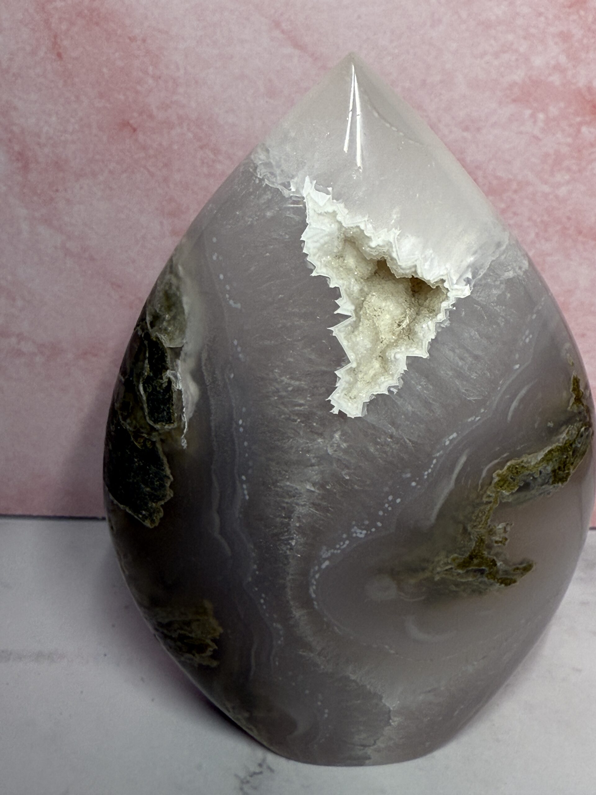 Moss Agate helps correct imbalances between the left and right side of