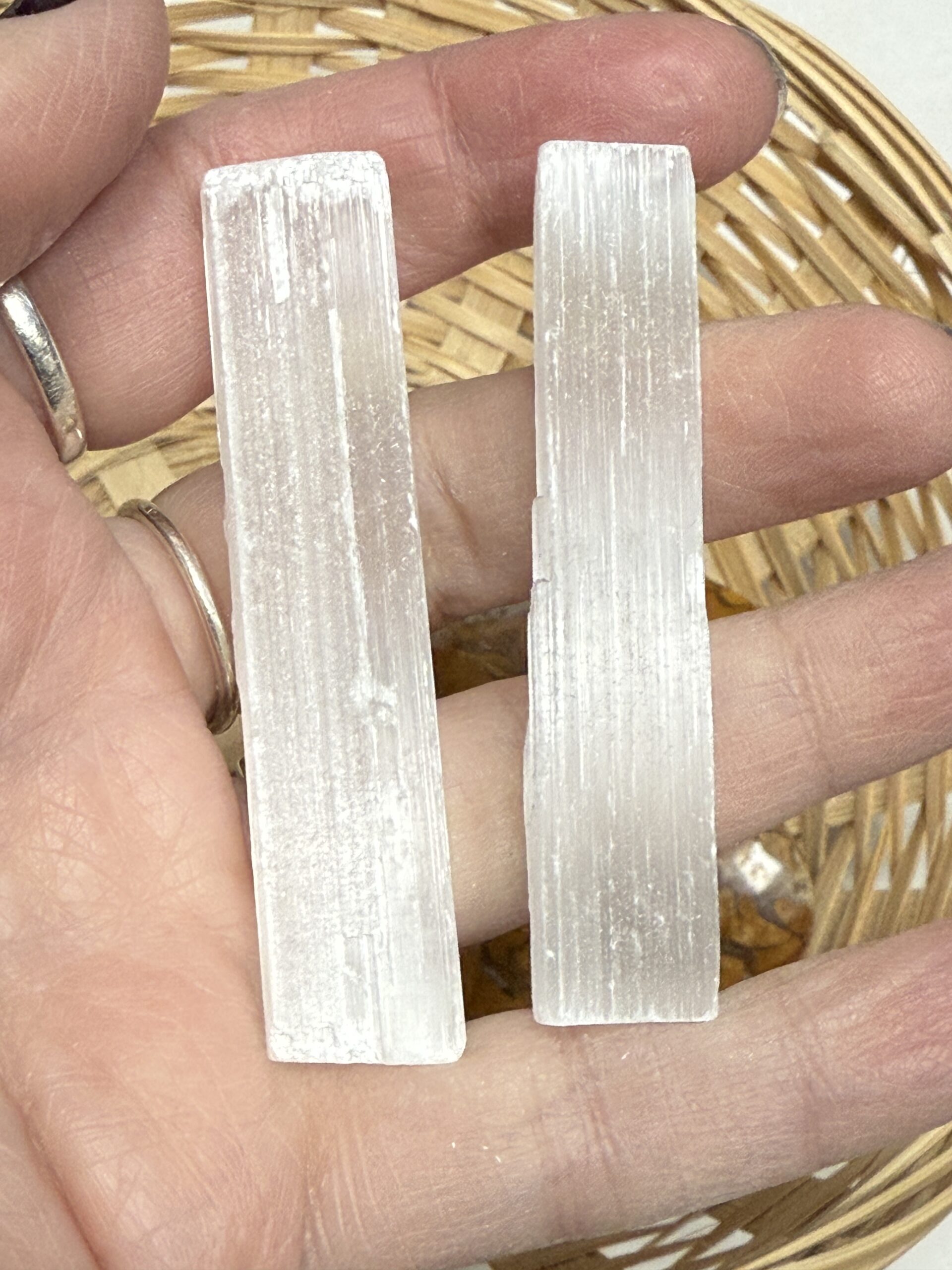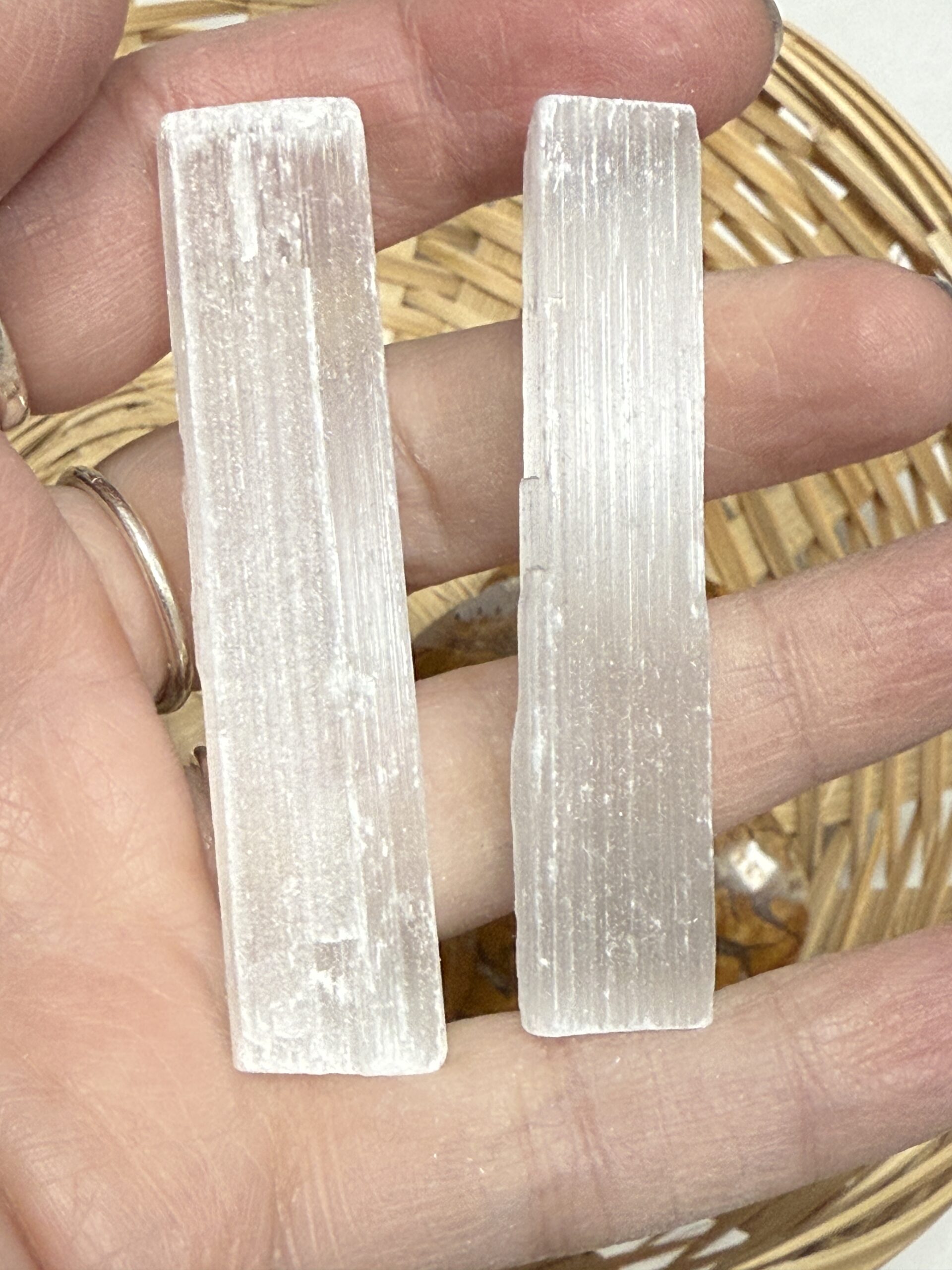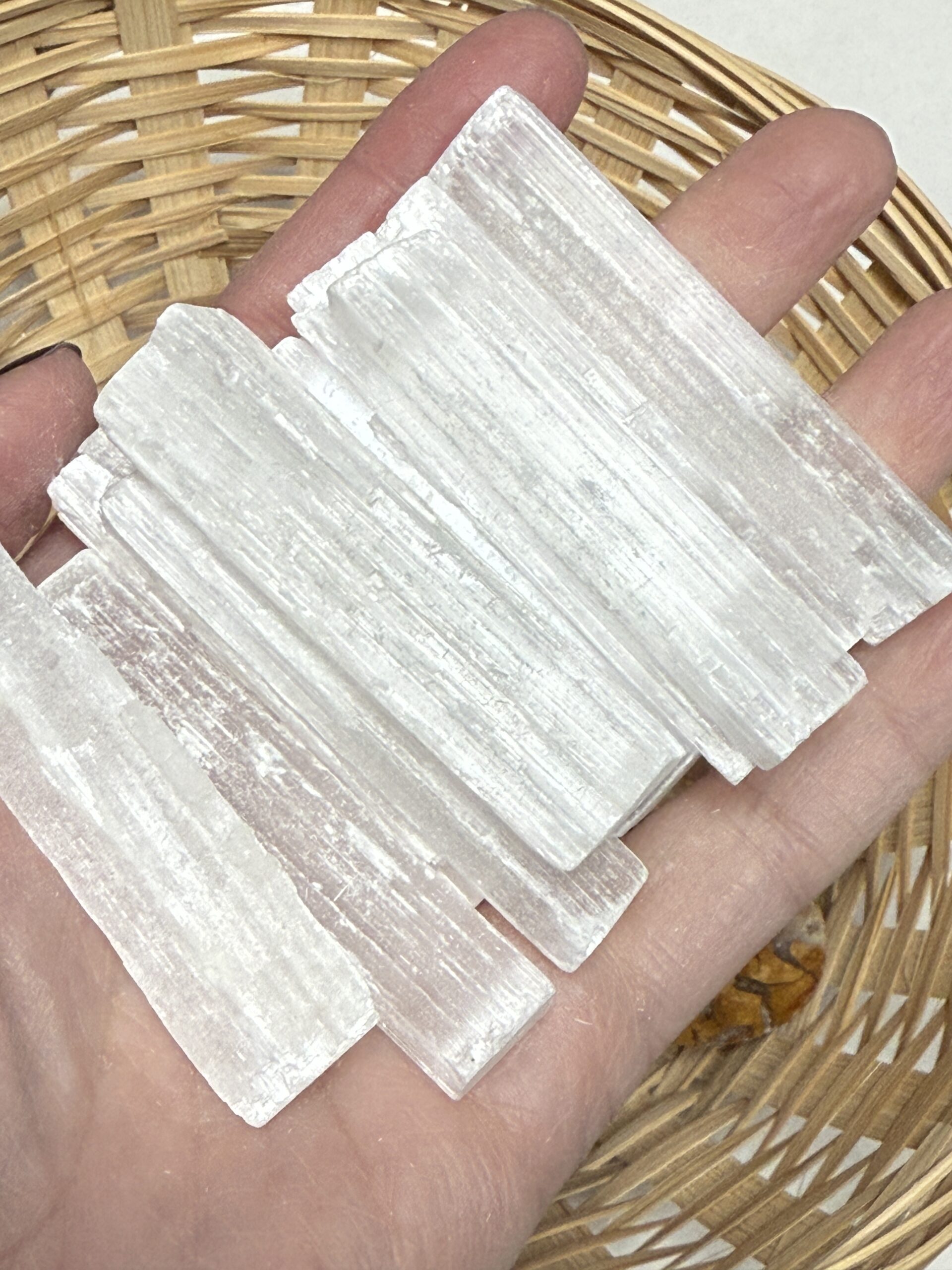 Selenite is a powerful stone with a very fine vibration. It purifies and cleanses the aura, and protects one from negative influences. It assists spiritual insight and aids one in seeing the deeper picture. It can be used