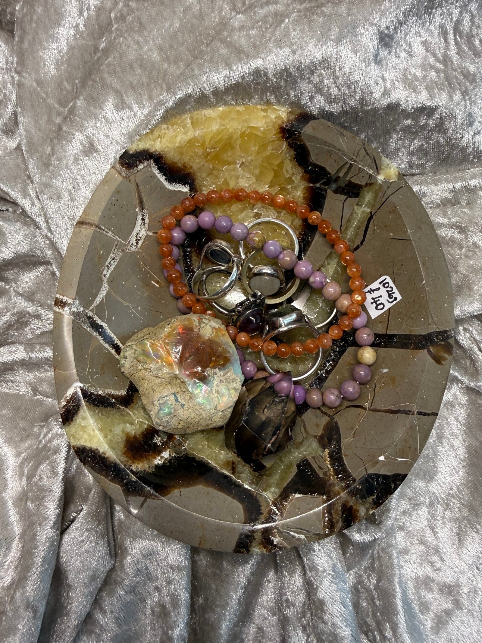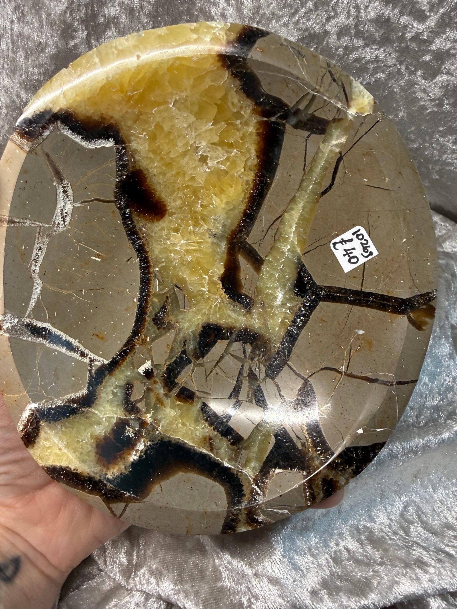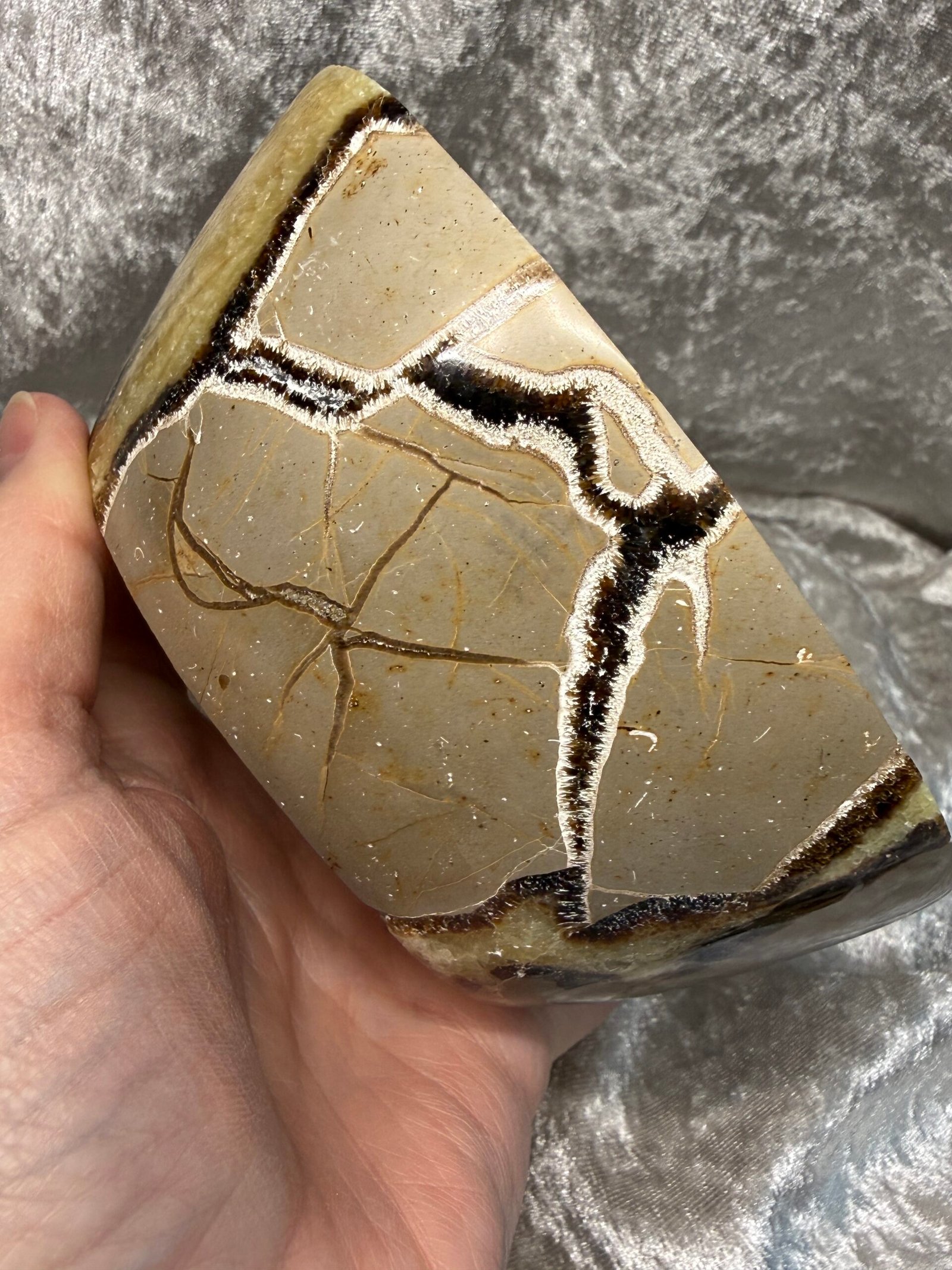 Septarian Nodule is a unique stone comprised of Aragonite, Calcite, and