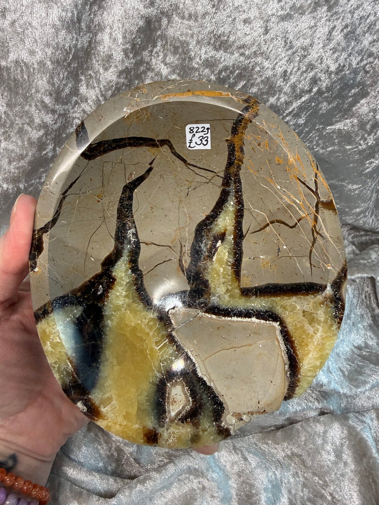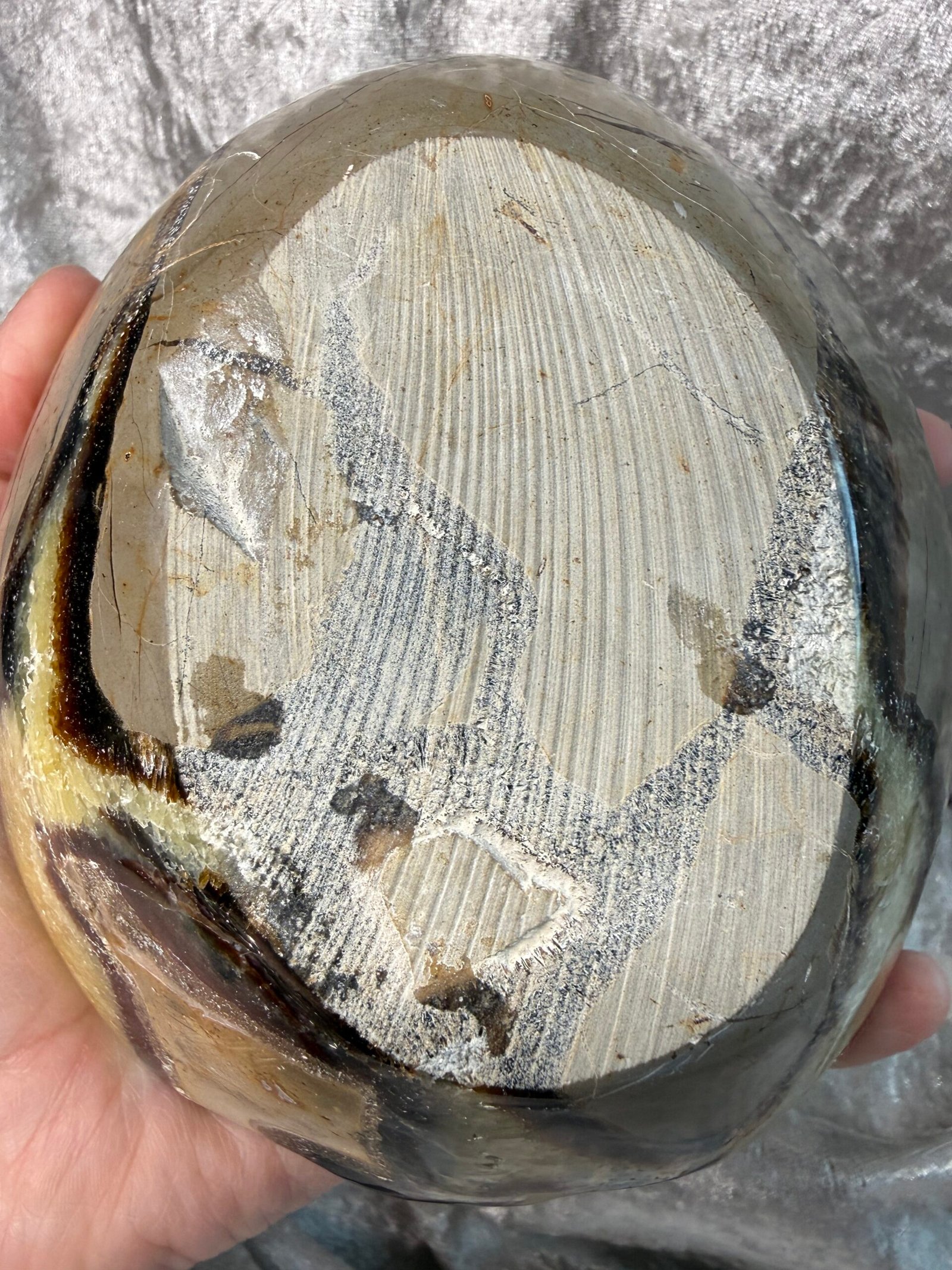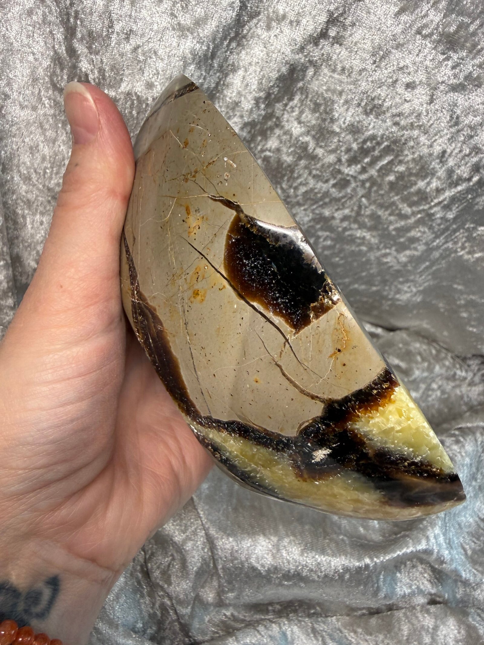 Septarian Nodule is a unique stone comprised of Aragonite, Calcite, and