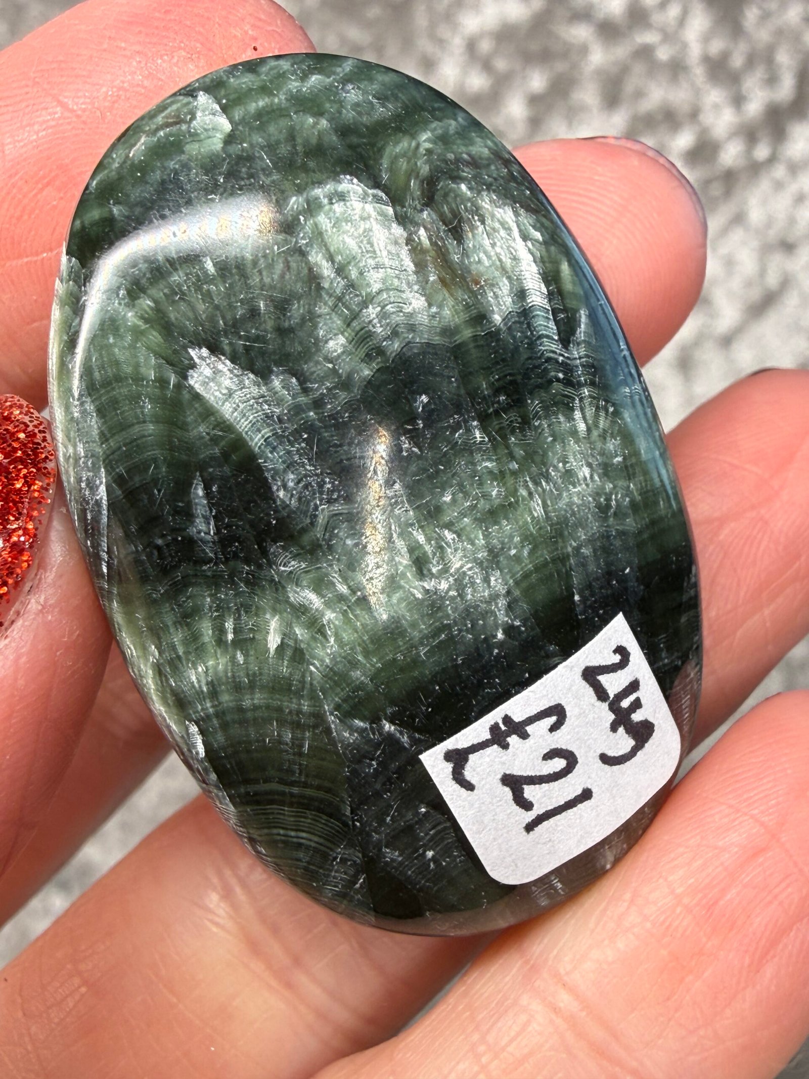 Seraphinite derives its name from Seraphim, the highest order of angels. Its unique white markings resemble angel wings. It holds a great deal of spiritual energy and facilitates contact with the angelic realm, the Divine Feminine, and nature spirits. It realigns the entire chakra system, clears blockages in the meridians, and promotes feelings of wholeness.