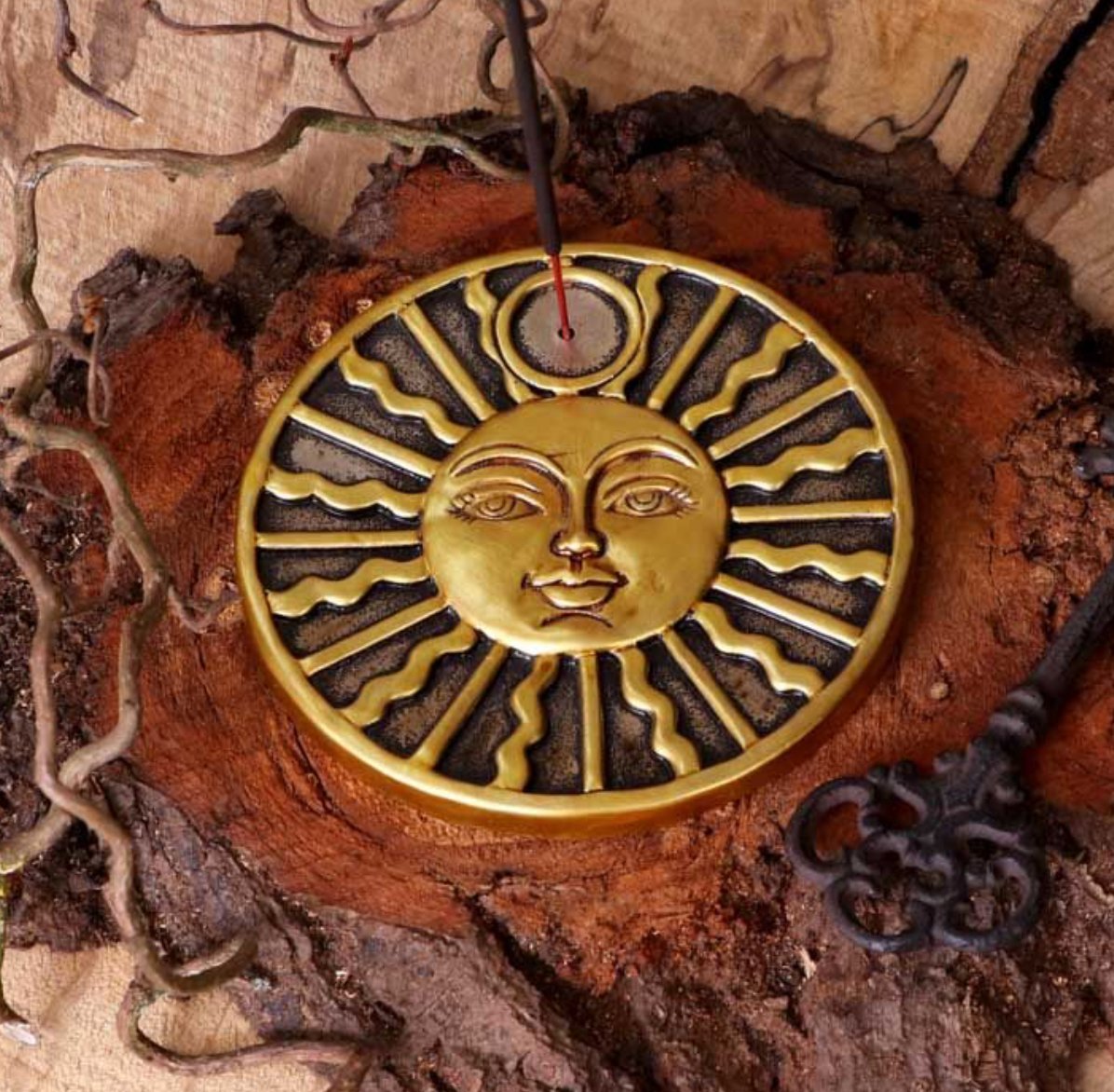 11cm Golden sun with central hole to hold your incense stick. Cast from the finest resin and hand painted.
