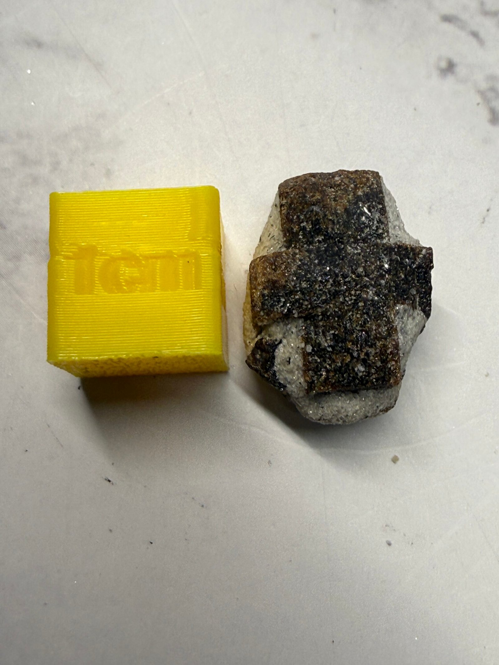 Staurolite, also known as Fairy stone or Fairy Cross, is a nesosilicate mineral that naturally occurs in cross shapes (cruciform). The minerals usually cross at a 60 or 90 degree angle, with some specimens representing a perfect perpendicular cross. Staurolite’s genetic makeup is very complex, containing aluminum, zinc, magnesium and iron.