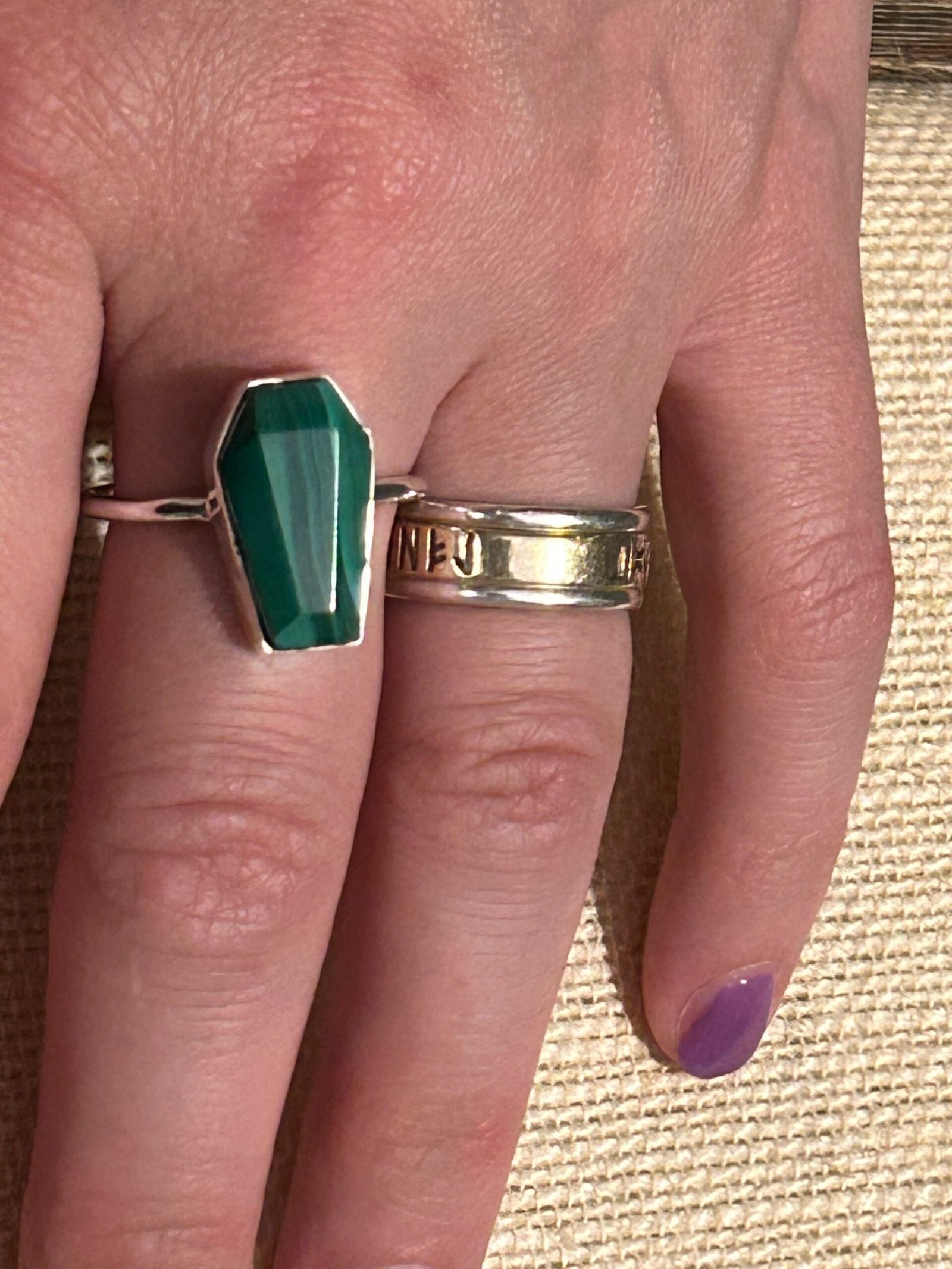 Sterling Silver Malachite Coffin Ring